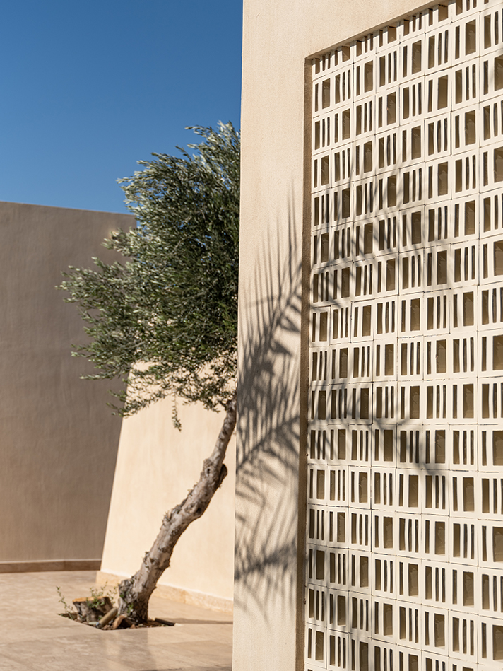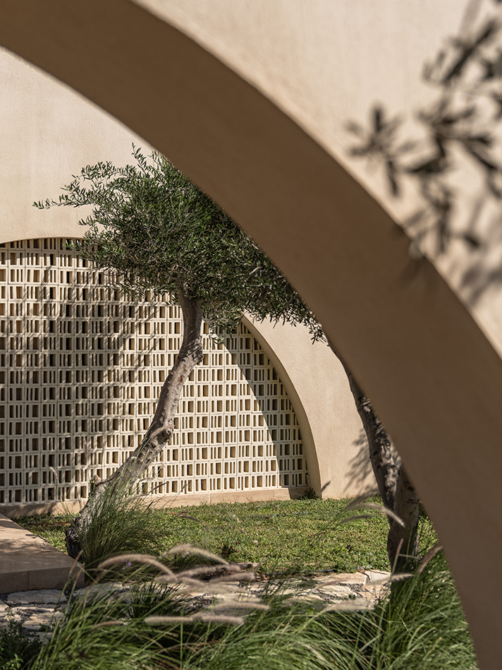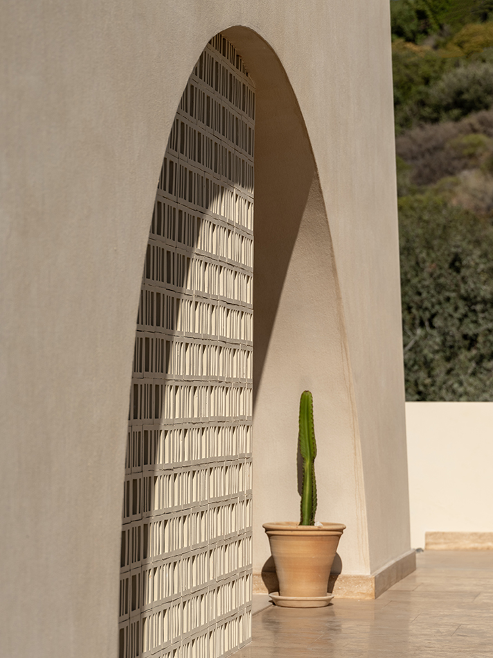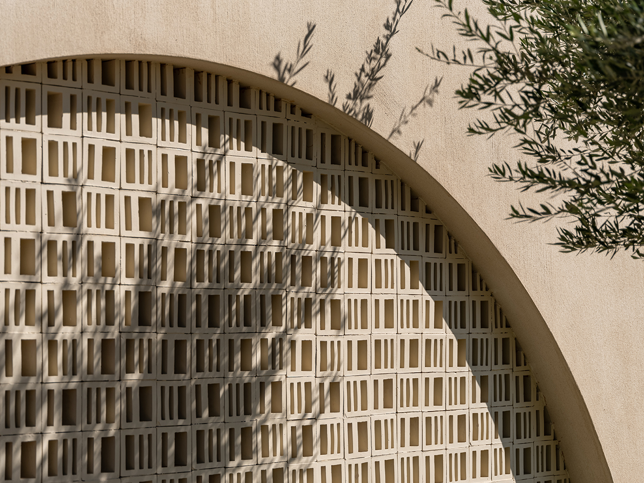 아치는 프로젝트를 규정하는 주요 요소로, 입면과 외부 구조, 내부 디테일을 하나로 연결하는 장치로 작동했다. 이 아치는 실내와 실외 사이의 부드러운 전환을 유도하며, 천공된 세라믹 벽돌과 결합해 필요한 곳에 프라이버시를 확보하거나 자연광의 강도를 조절한다. 이 요소의 반복은 입면에 깊이감과 실용성을 부여하며, 층위감 있는 건축 언어를 형성했다.