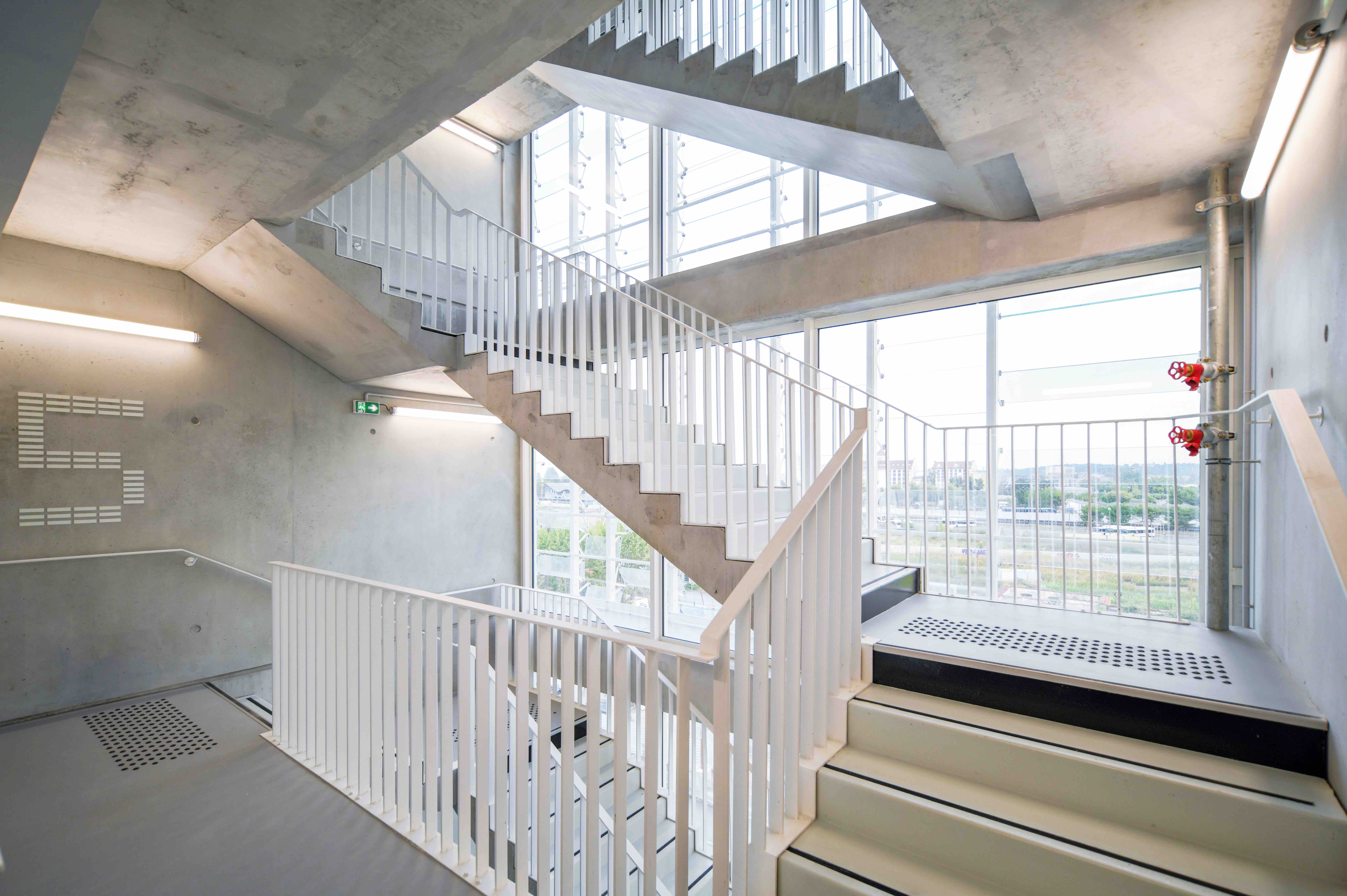 또한 이 건물은 시간이 지나도 기능적 변화를 수용할 수 있도록 기둥-보(Post & Beam) 구조와 경량 칸막이 시스템을 채택했다. 내부 공간은 용도에 따라 쉽게 재구성할 수 있으며, 내진 설계를 갖춘 동시에 HQE ‘Very Good’, BREEAM ‘Good’ 등급을 획득했다. 지붕에 통합된 태양광 패널은 전력 자가생산 기능을 수행한다.