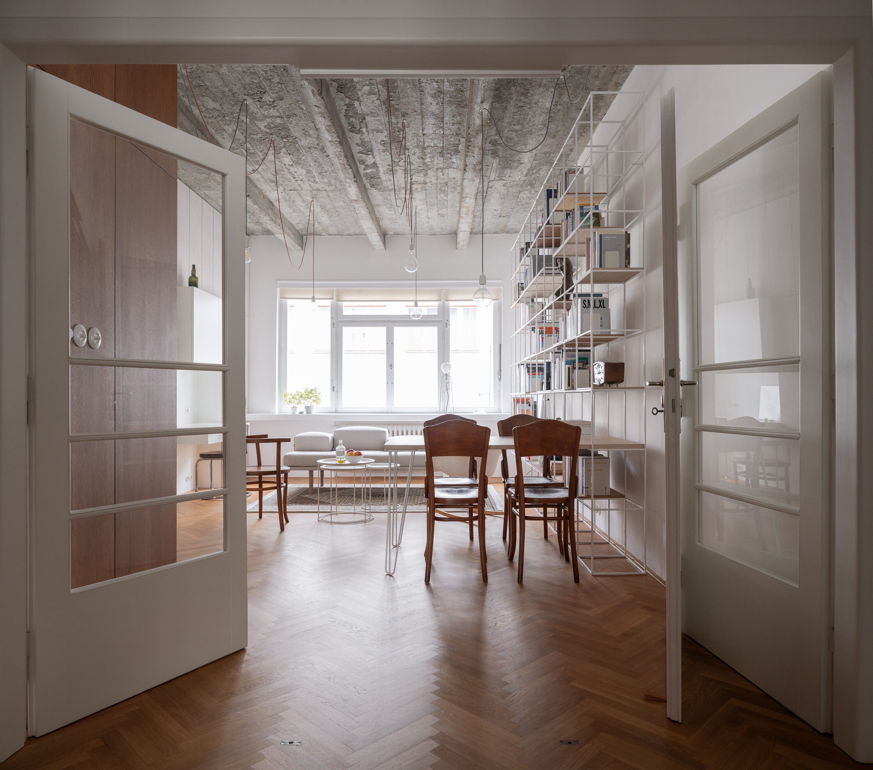 이 프로젝트는 기존 건물을 리노베이션한 건축가 자신의 집으로, 여러 제약 속에서 진행된 개인적인 실험이자 고백 같은 작업이다. 건축가 자신이 고객이 된다는 것은 역설적으로 가장 까다로운 과제다. 모든 결정을 스스로 감당해야 하며, 평소 클라이언트와 함께 토론하며 조율하던 위험들을 온전히 자신에게 떠안아야 한다. 이 아파트는 1930년대 후반에 지어진 프라하의 근대 건물로, 건축가 라디슬라프 시멕(Ladislav Šimek)이 설계하고 그의 형제 야로슬라프(Jaroslav)가 시공했다. 타일 외벽과 작은 유닛들로 구성된 전형적인 근대주의 임대주택으로, 솔직하고 정직한 시대의 건축을 보여준다.