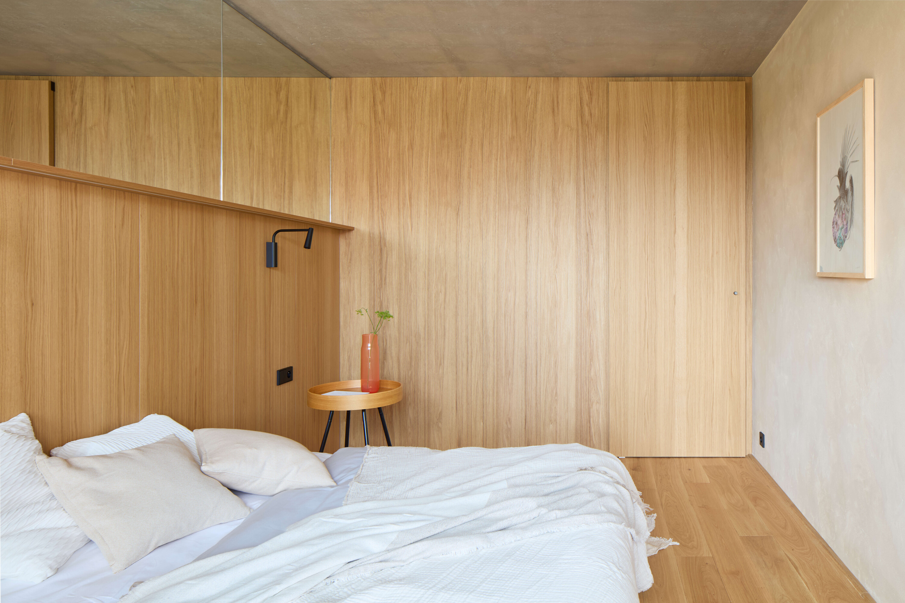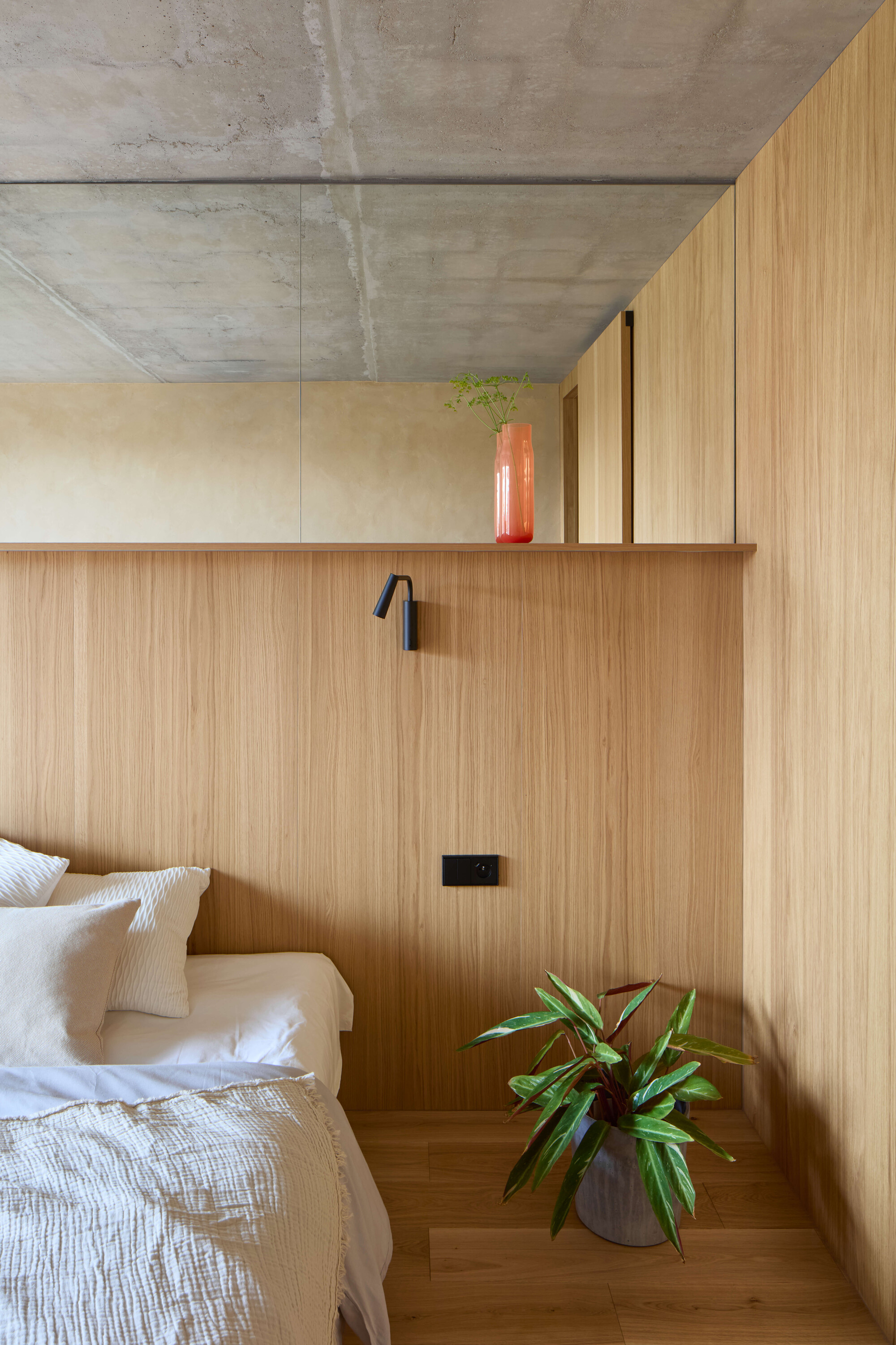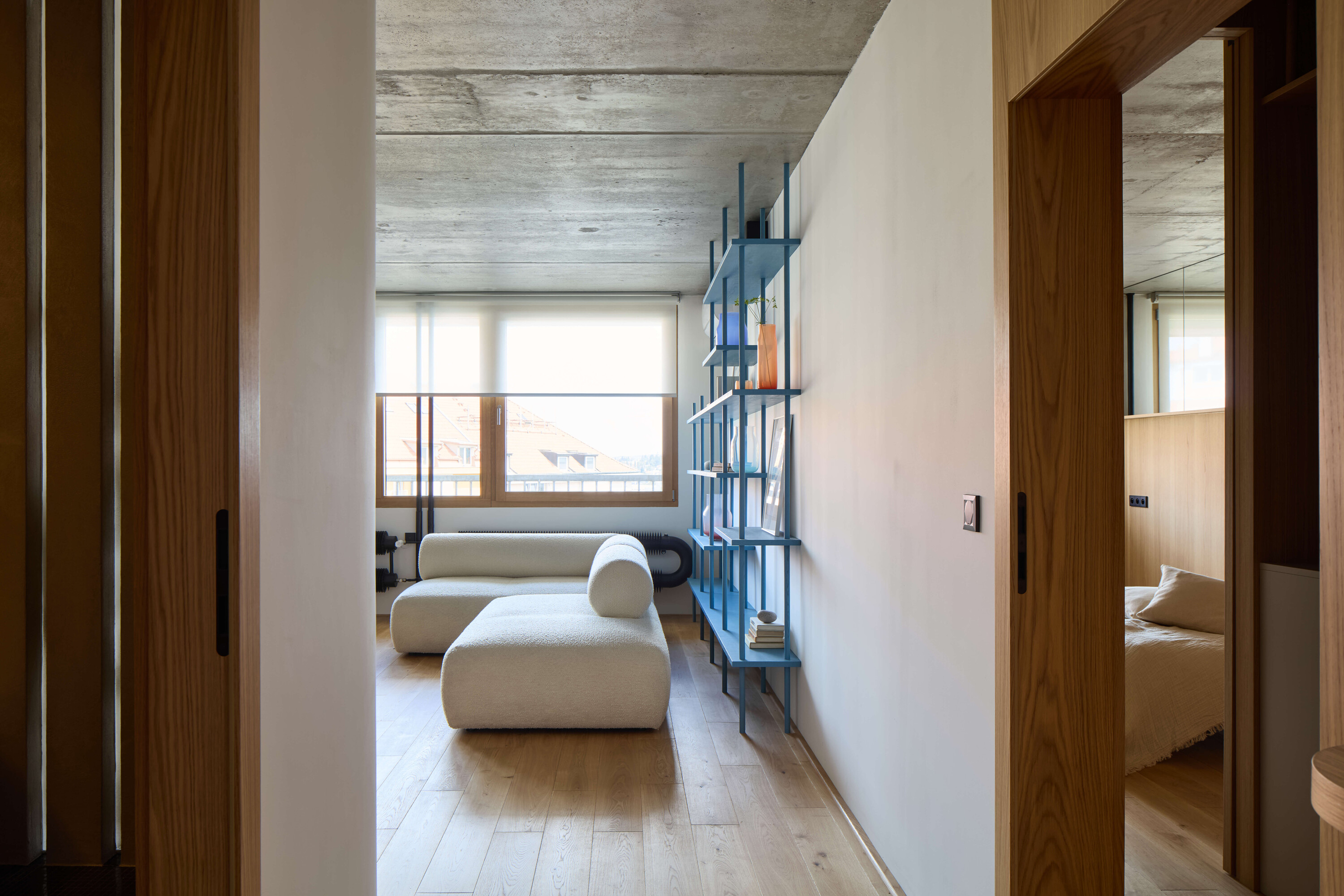 스마트홈 시스템과 보안 기능을 갖춘 이 아파트는 도심 속에서도 조용하고 안정된 생활 환경을 제공한다. 실내외 블라인드와 고성능 목재-알루미늄 삼중창은 도로 소음을 크게 줄여, 콘크리트 구조물 속에서도 부드럽고 평화로운 주거 경험을 가능하게 한다.