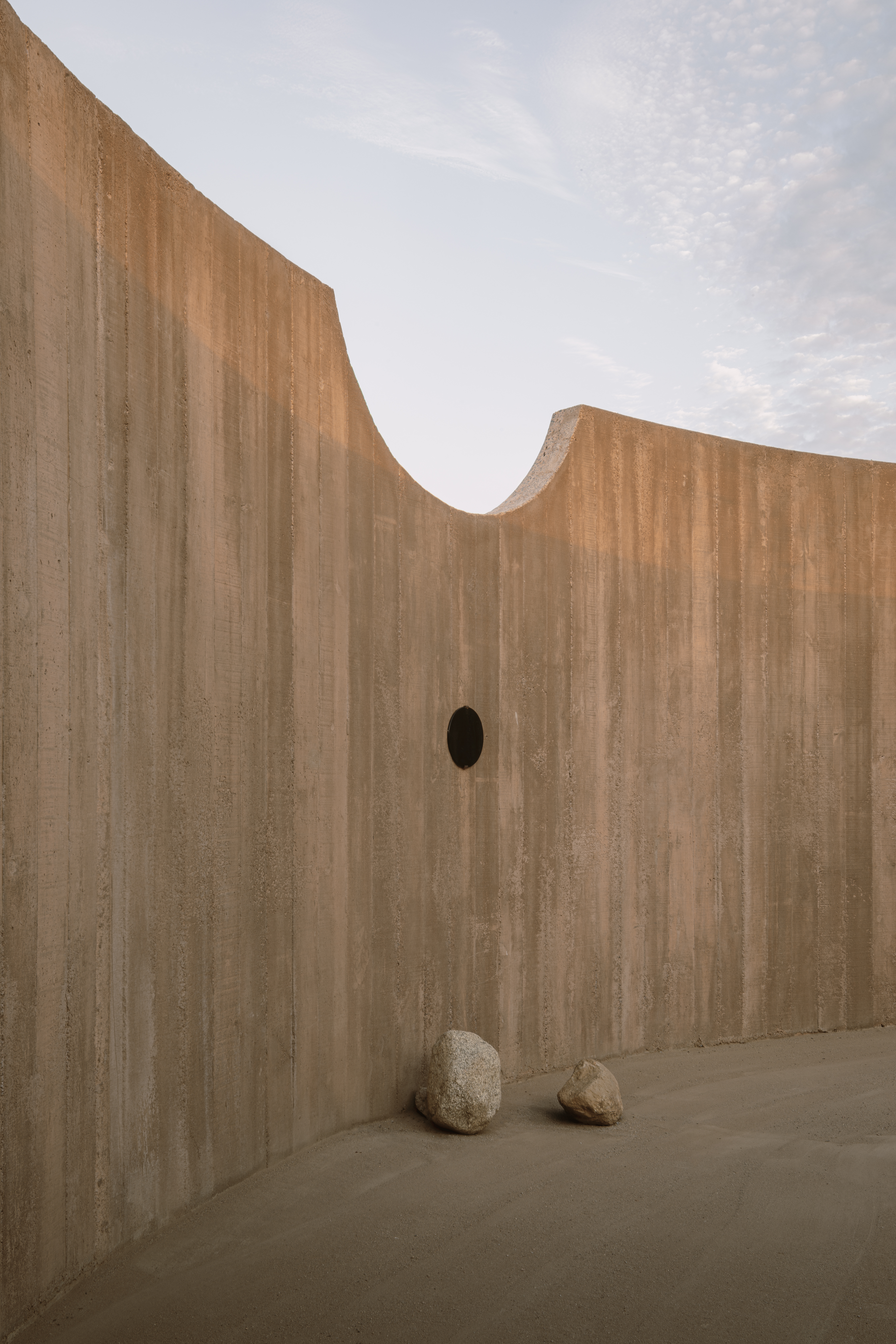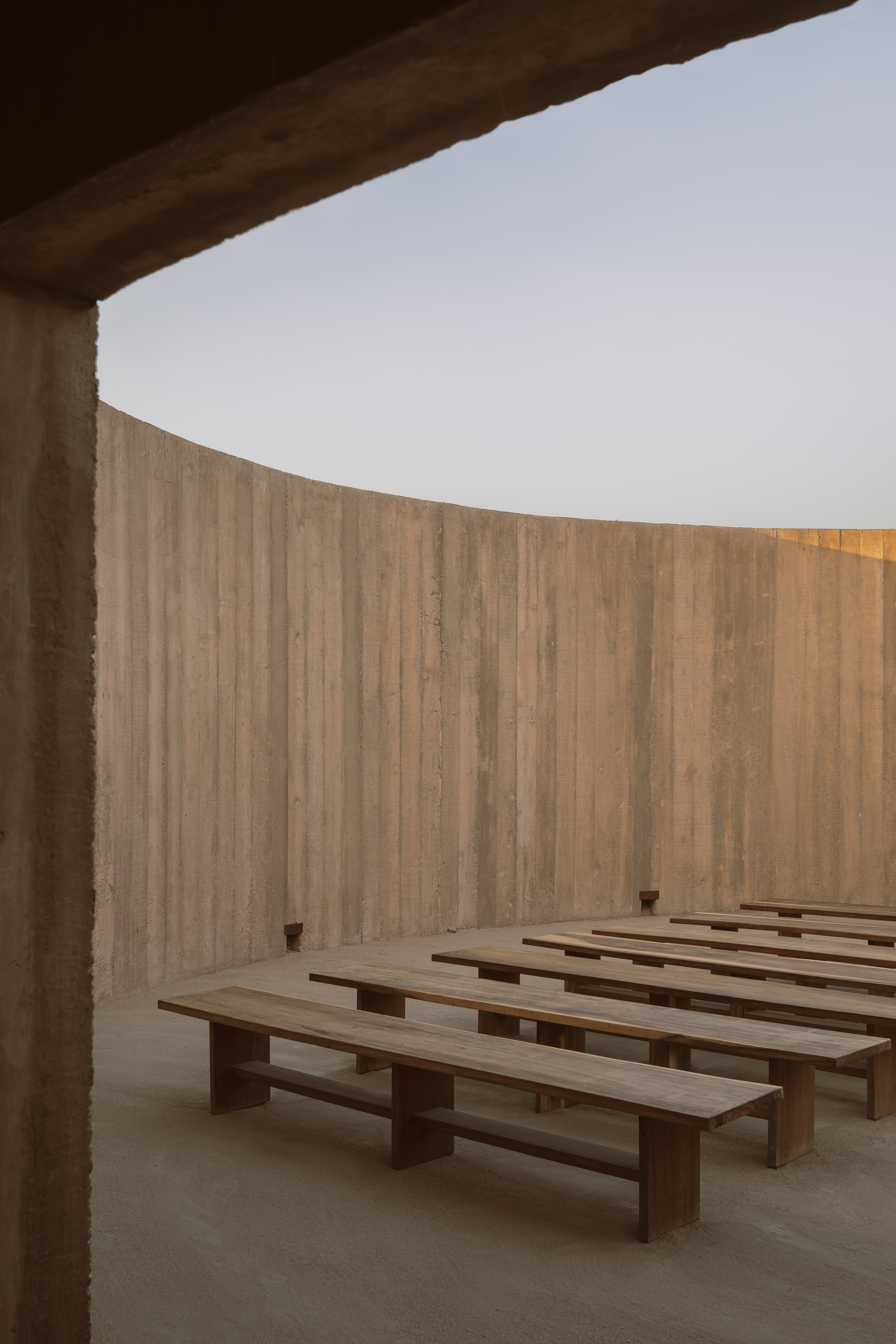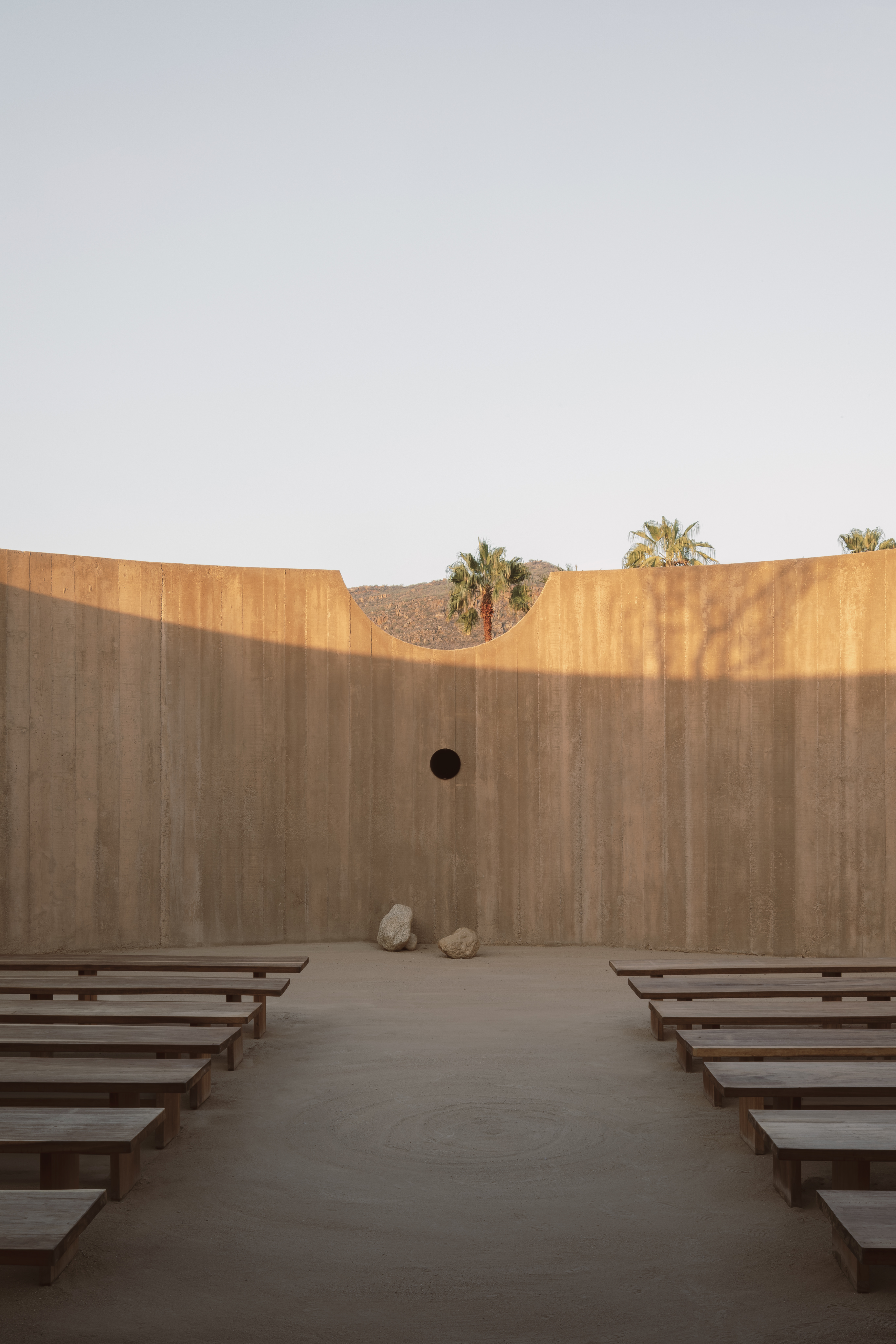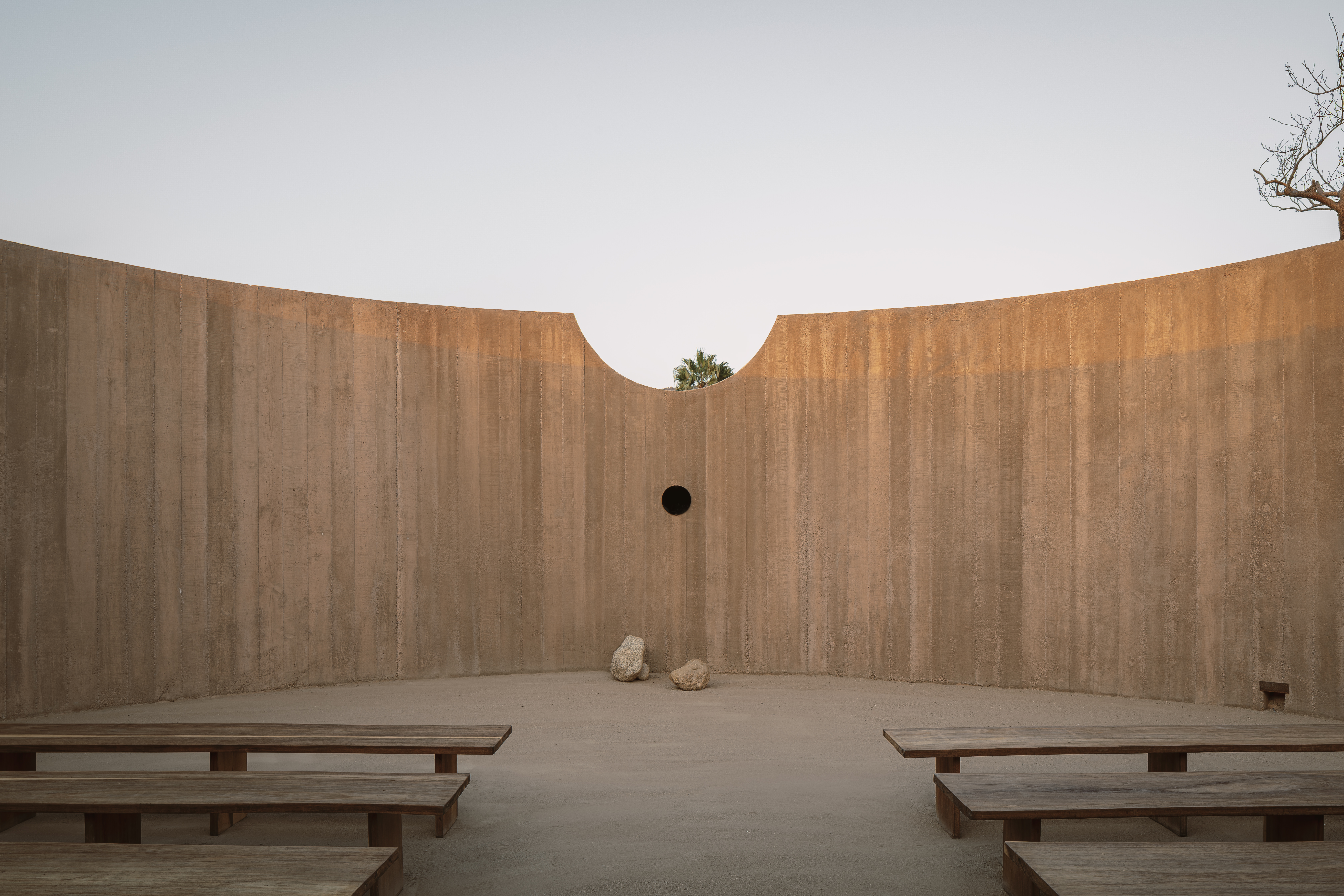 이 공간은 종교적 상징을 배제한 채, 멕시코 남부 바하칼리포르니아 사막의 풍경과 하늘과 깊이 대화하는 의식 공간이다.