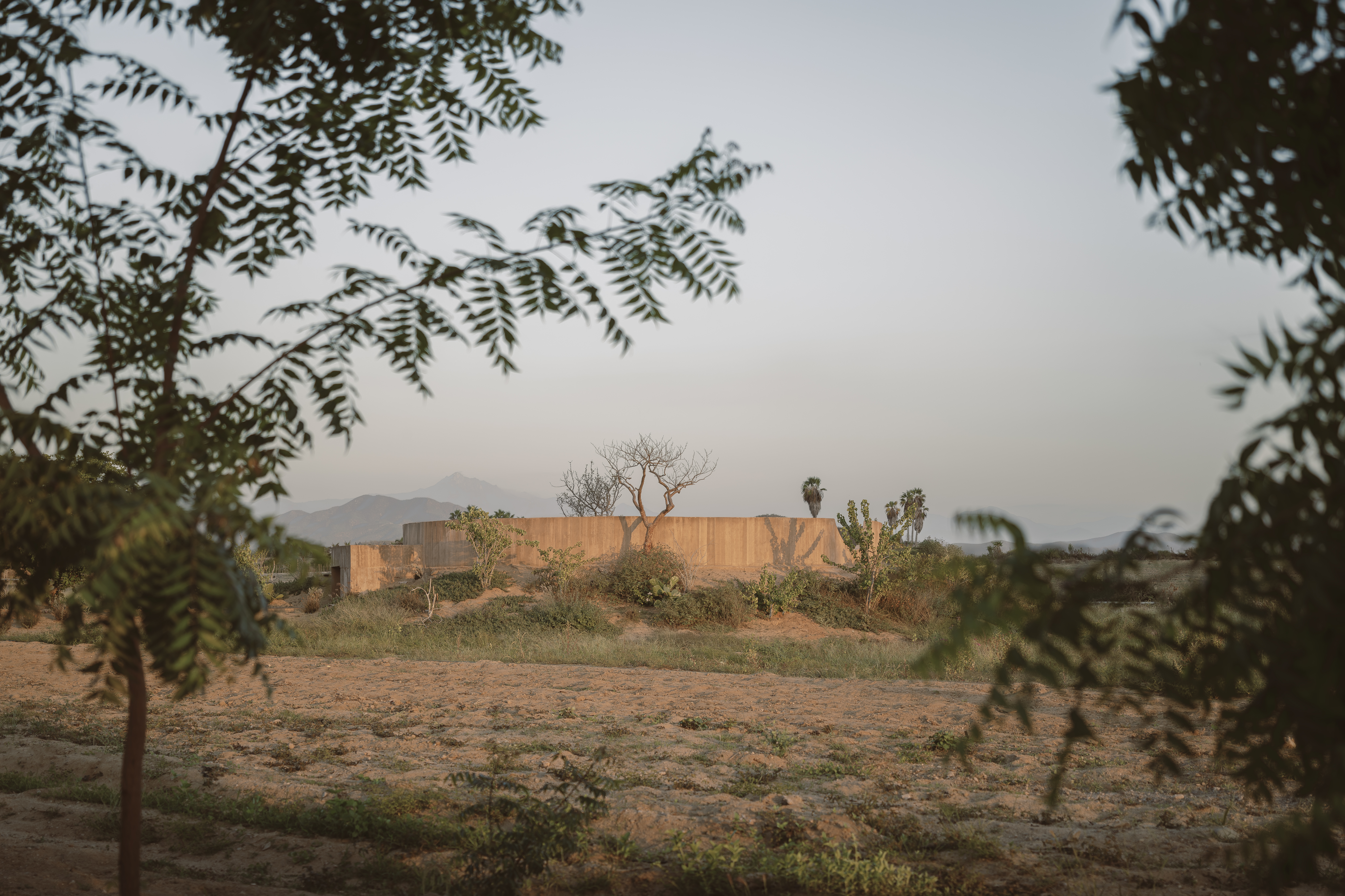 둥근 형태의 건축물은 사막 지형 속에 반쯤 묻혀 있으며, 이는 주변 대지와의 관계를 상징적으로 드러낸다. 바닥의 맨흙과 열린 천장은 이곳을 찾는 이들에게 땅과 우주를 연결하는 초월적 감각을 경험하게 한다.