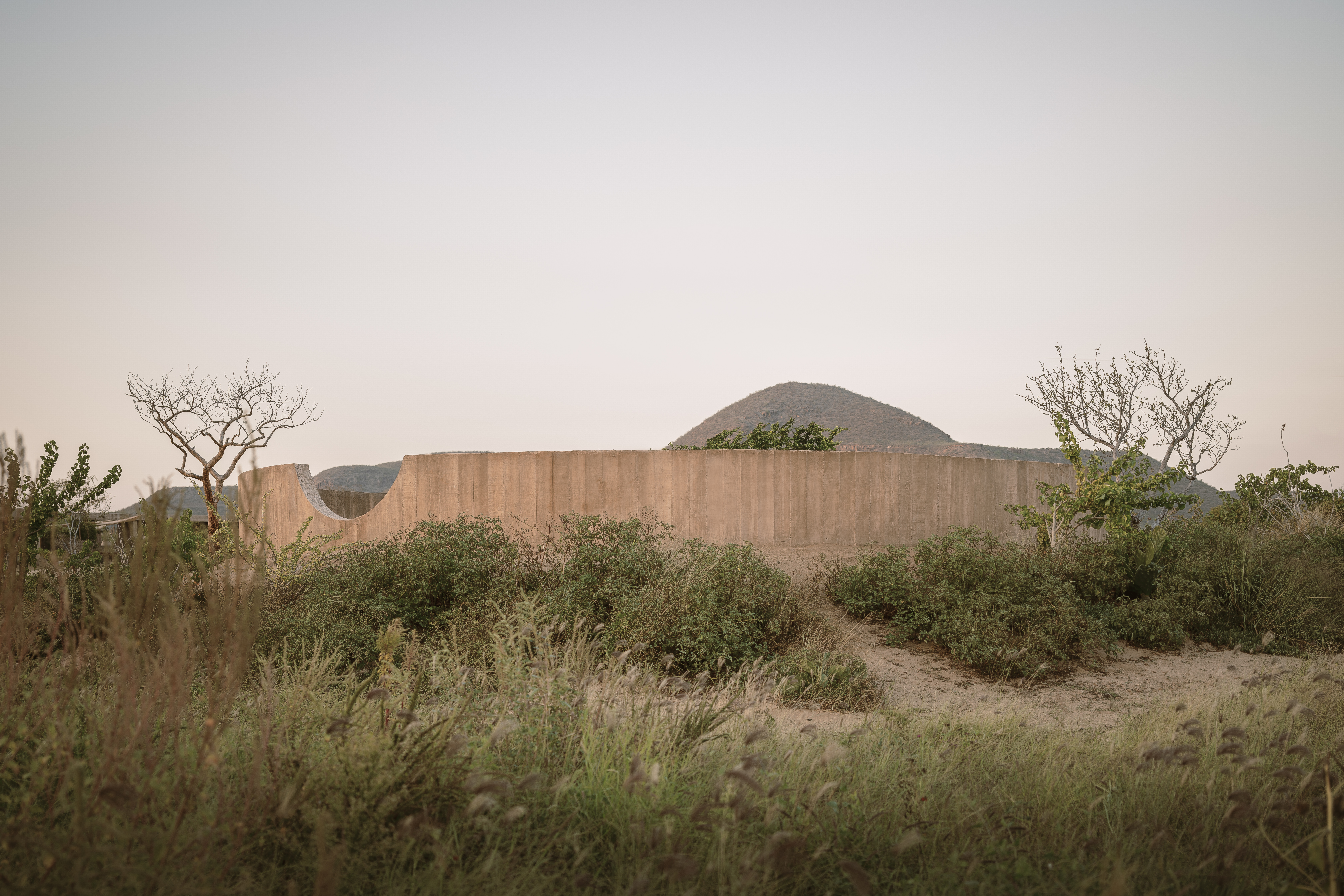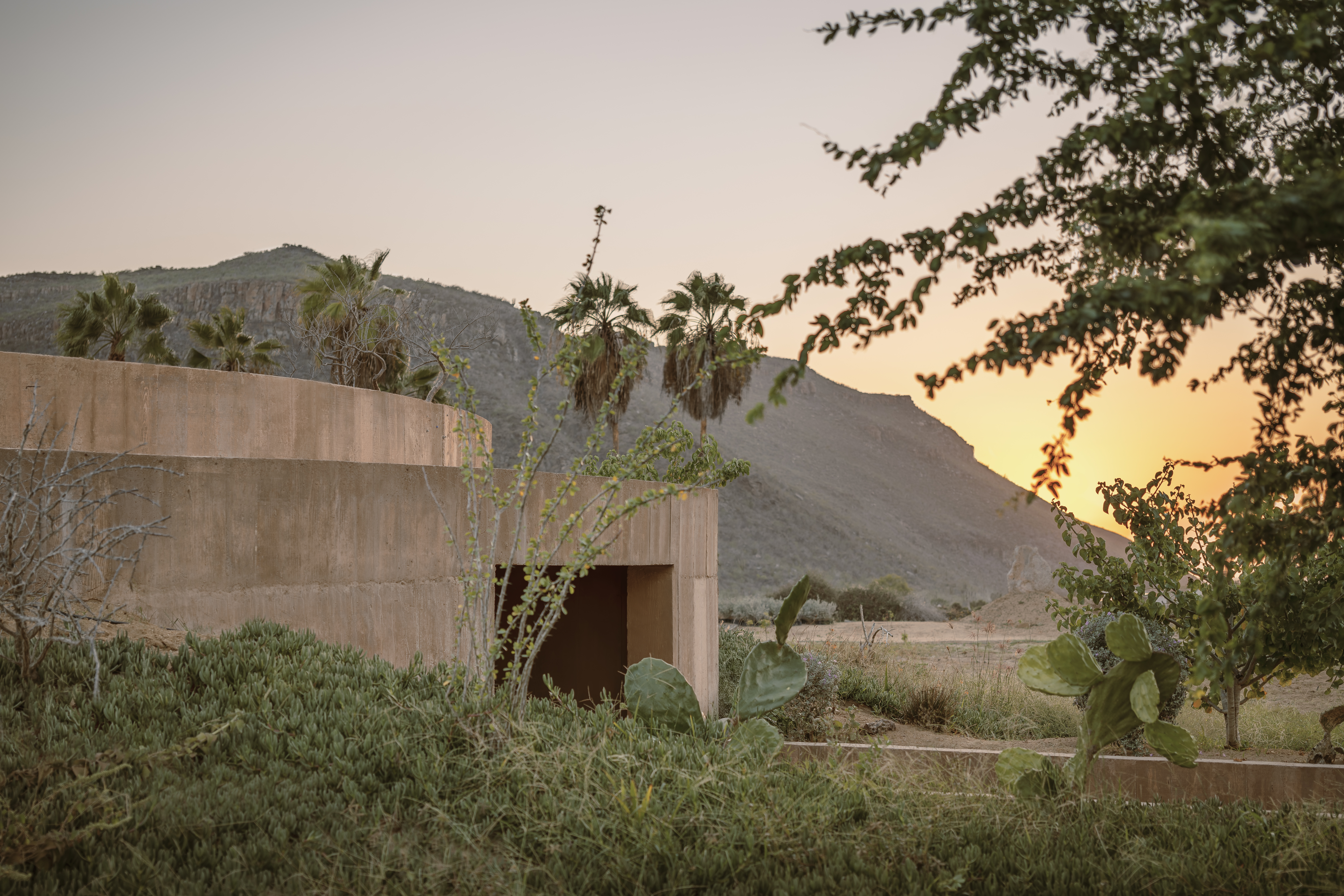 원형 구조는 주변의 산세와 하늘을 프레이밍하도록 세심하게 설계되었다. 반원형 개구부는 먼 산맥의 풍경을 시각적으로 끌어들이고, 벽으로 둘러싸인 상부의 원형 틈은 하늘의 변화를 담아낸다. 건물은 동서축을 따라 배치되어 태양의 움직임에 따라 시간의 흐름과 사막의 빛의 변주를 공간 안에서 느낄 수 있도록 했다.