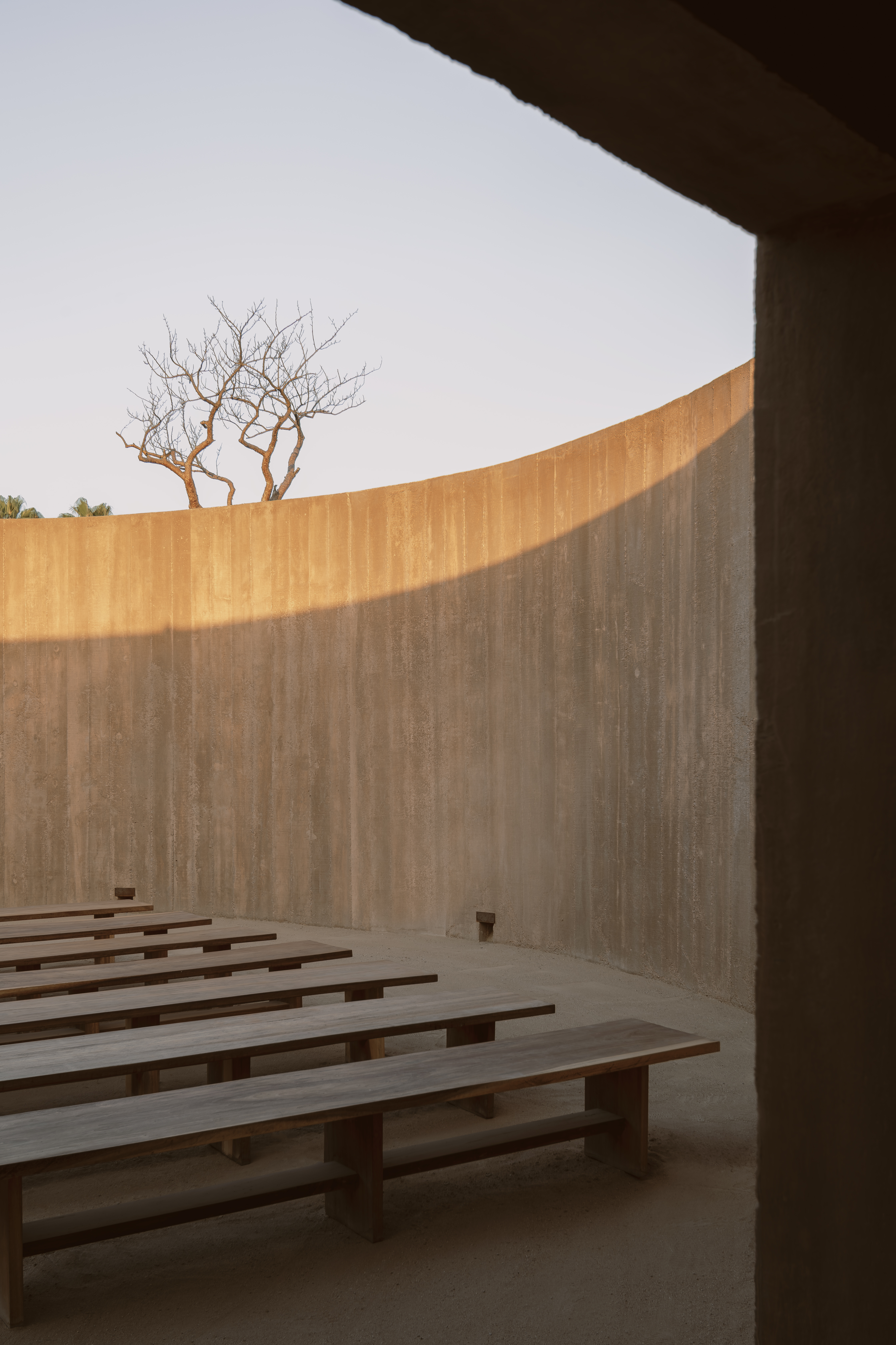 이 공간은 종교적 상징을 배제한 채, 멕시코 남부 바하칼리포르니아 사막의 풍경과 하늘과 깊이 대화하는 의식 공간이다.