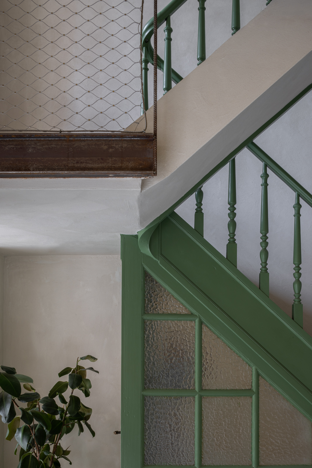 새로운 확장부의 높이와 리듬은 기존 계단의 흐름을 따르고 있다. 그 결과, 확장부 1층은 지상층 주방과 위층 거실 사이의 반층으로 구성되며, 큰 유리 벽과 오픈 계단이 있는 복층 높이의 보이드가 세 층을 시각적·공간적으로 연결한다.