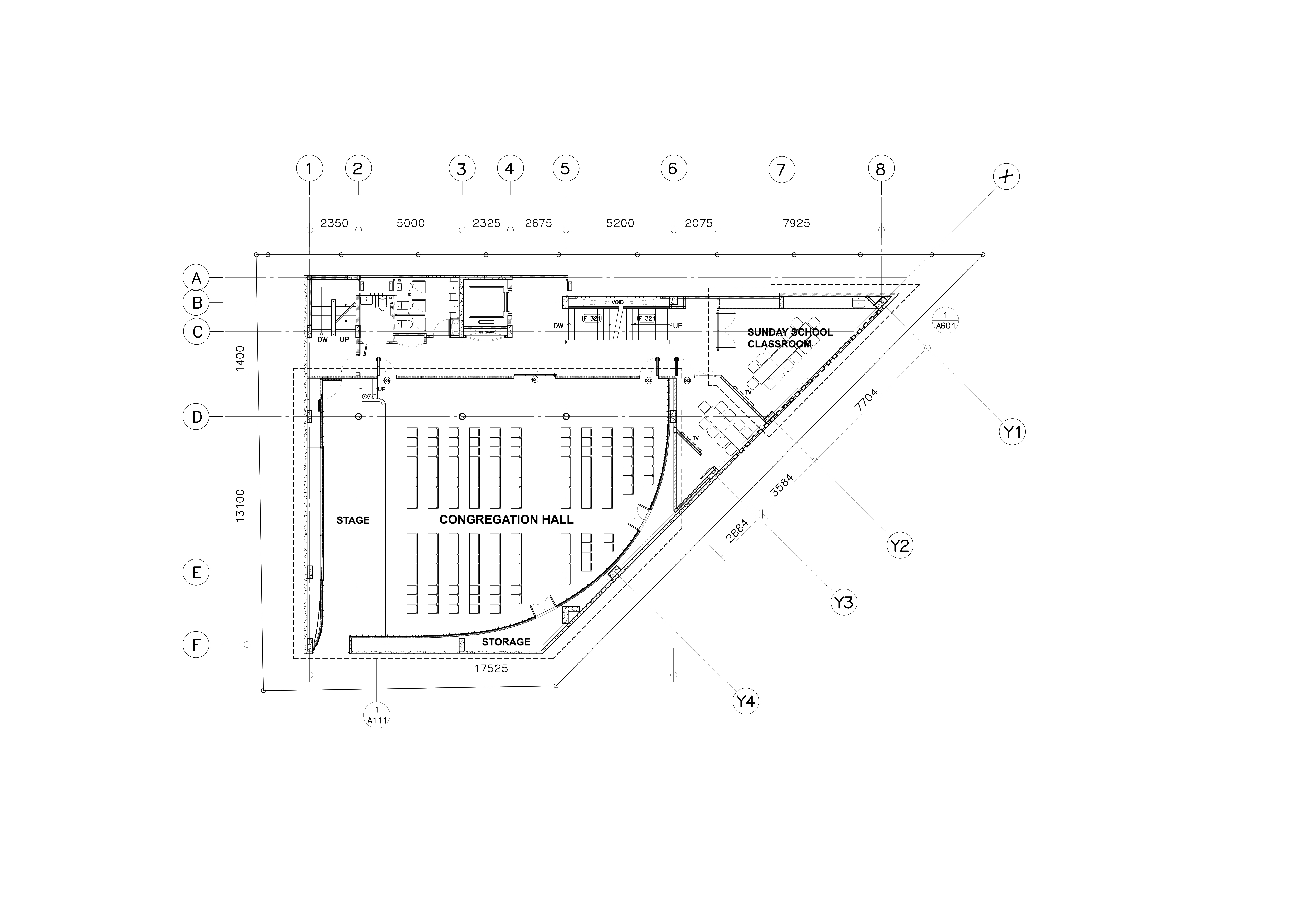 회중 홀은 예수의 겸손한 탄생을 연상시키는 짚 섬유 벽으로 음향학적 설계가 되어 있다. 홀 안에서는 햇빛이 비치는 주요 개구부가 '포옹의 십자가(Embracing Cross)'를 은은하게 감싸 안는다.