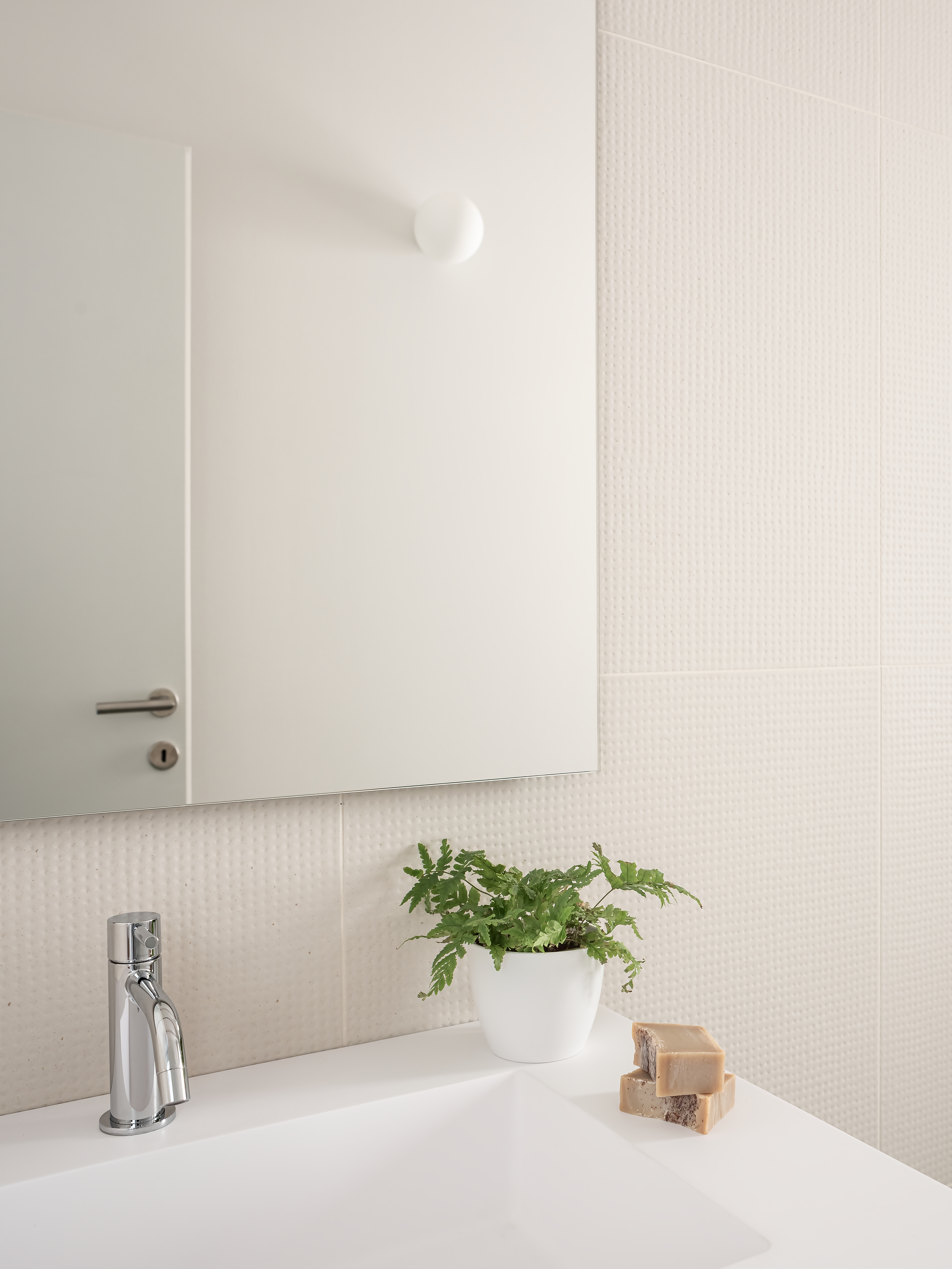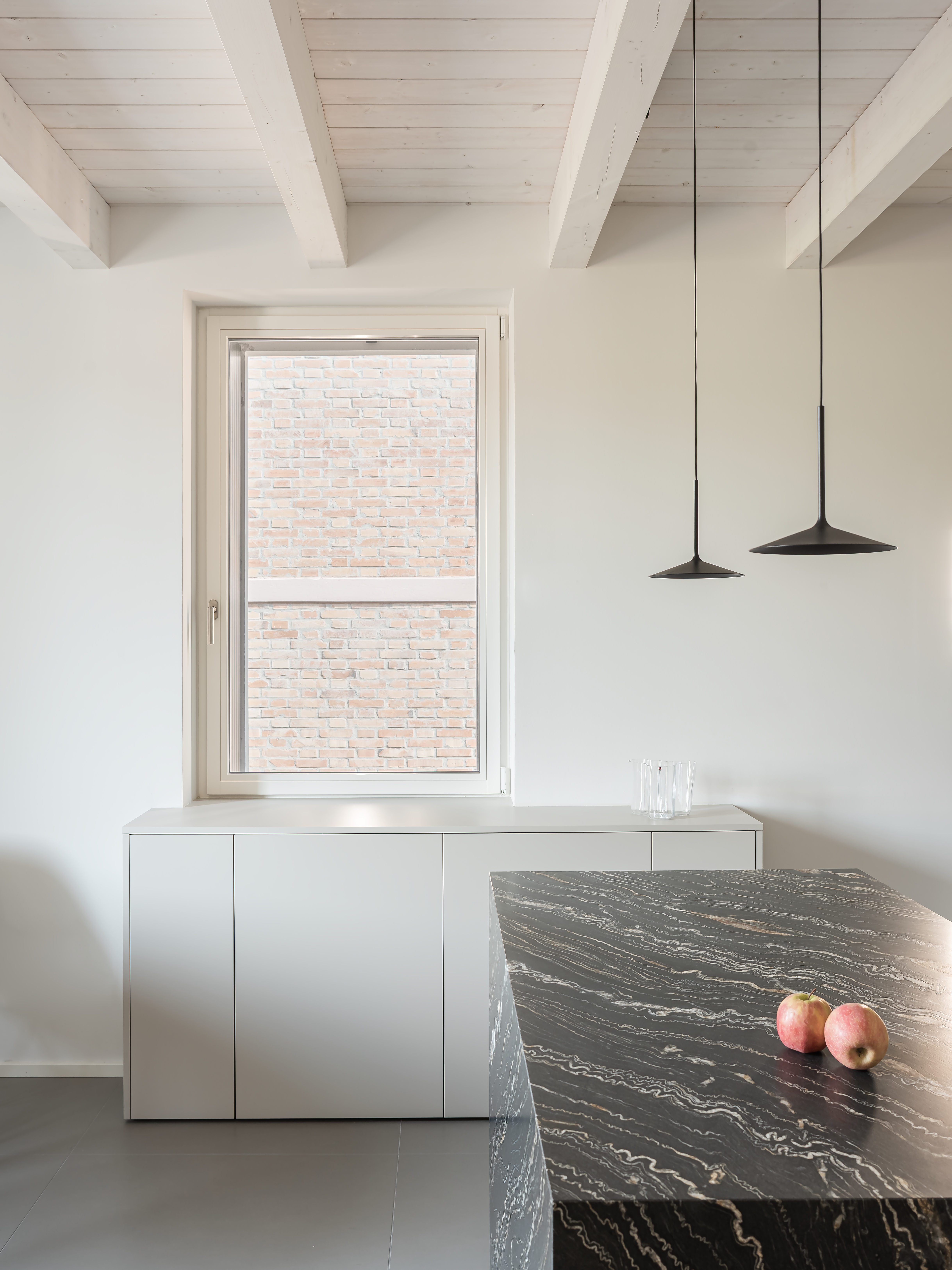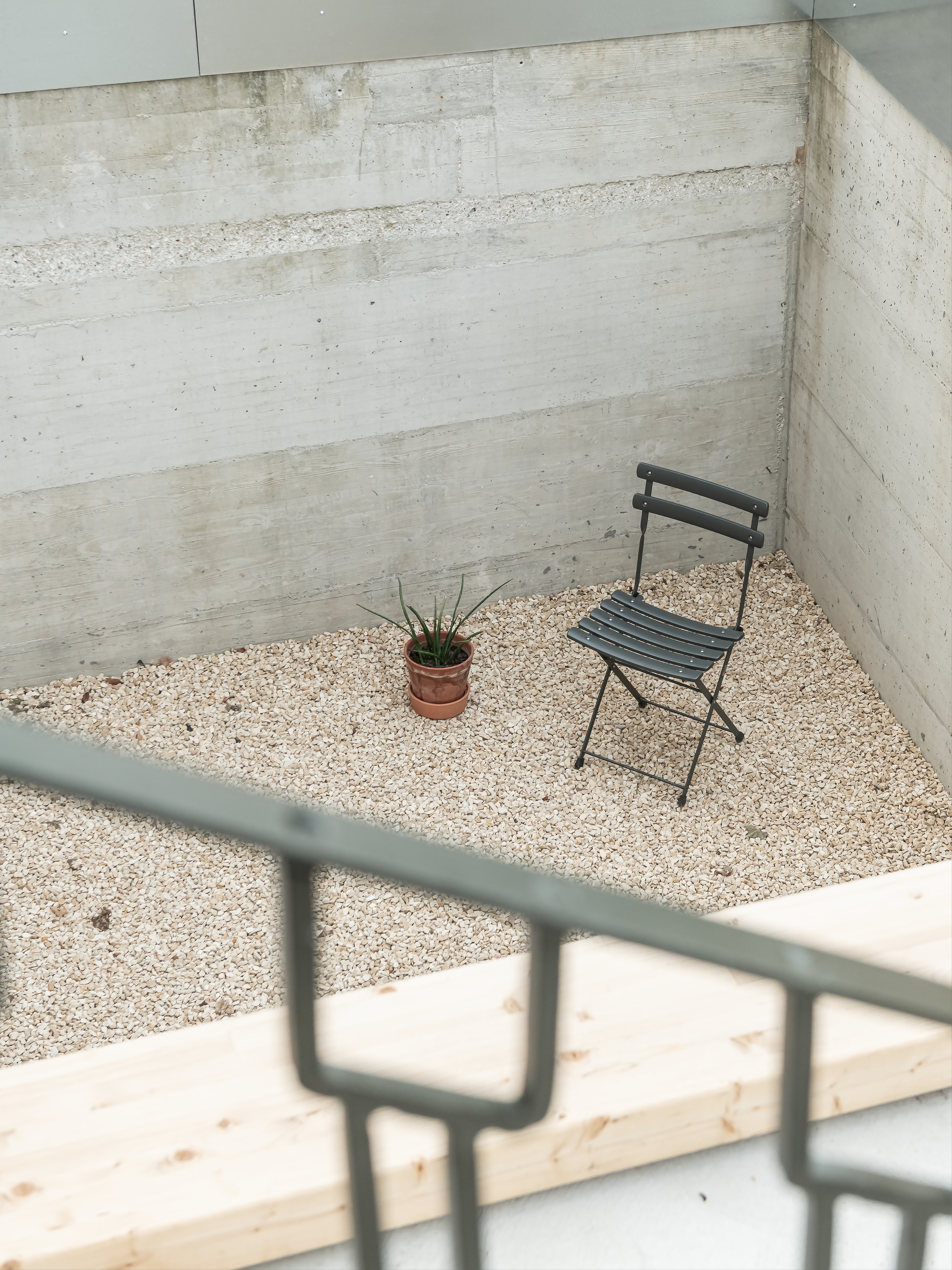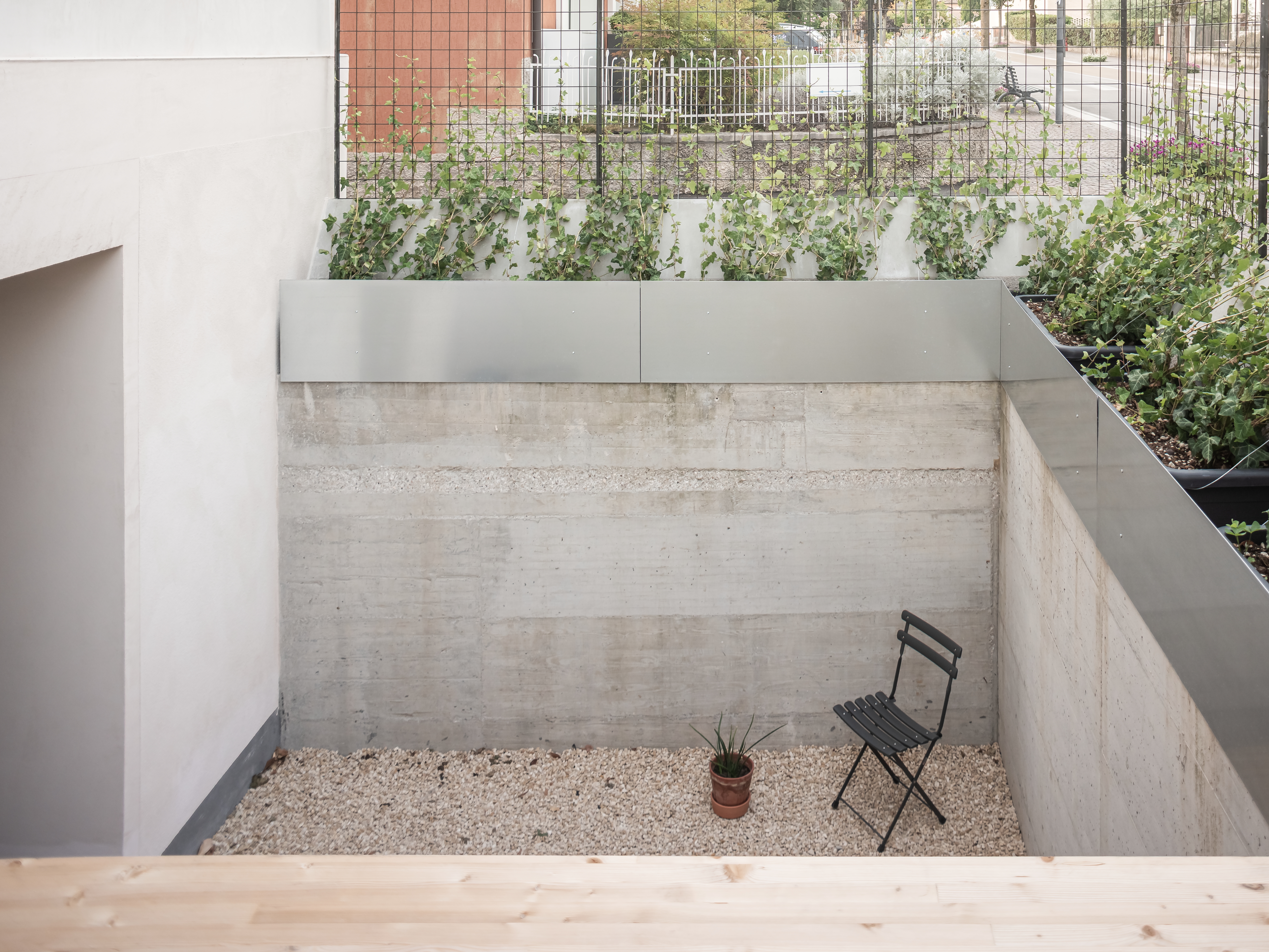 내부 평면은 구조적·공간적 합리화를 기반으로 정돈된 형태를 띠며, 방향성과 접근성이 명확한 동선을 갖추었다. 여기에 램프를 통합하여 수평 이동의 연속성을 강화했다. 외부는 기존 입면의 질서를 존중했으며, 단 한 가지 새로운 개입은 남서쪽에 조성된 낮은 중정이다. 이 중정은 지하층에 자연광을 들이고 사적인 조망을 제공하도록 설계되었다.