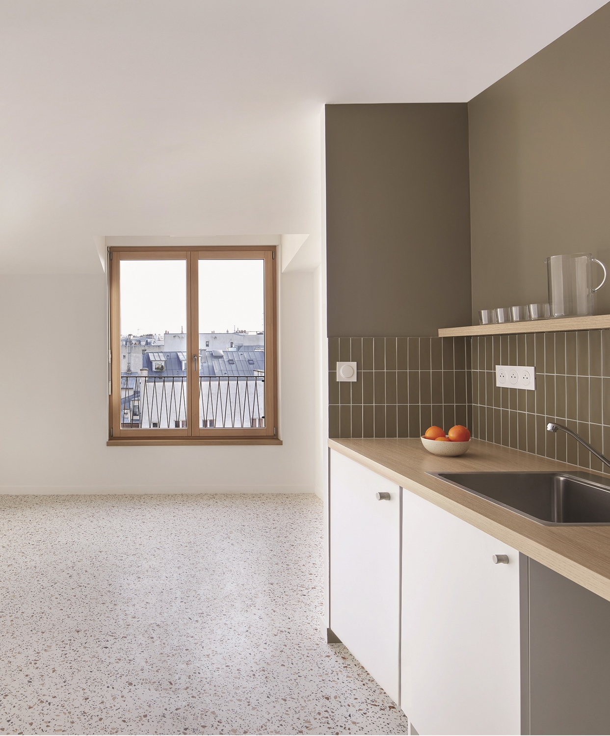 파리 도심에 위치한 이 레지던스는 폭력 피해 여성들을 위한 보호 주거 시설이다. 협회 FIT “Une Femme, Un Toit(한 여성, 한 집)”과 오로르(Aurore)가 공동 운영하며, 입주자들이 새로운 삶을 준비하기 전 존엄과 안정감을 되찾을 수 있도록 돕는 임시 거주 공간의 역할을 한다.