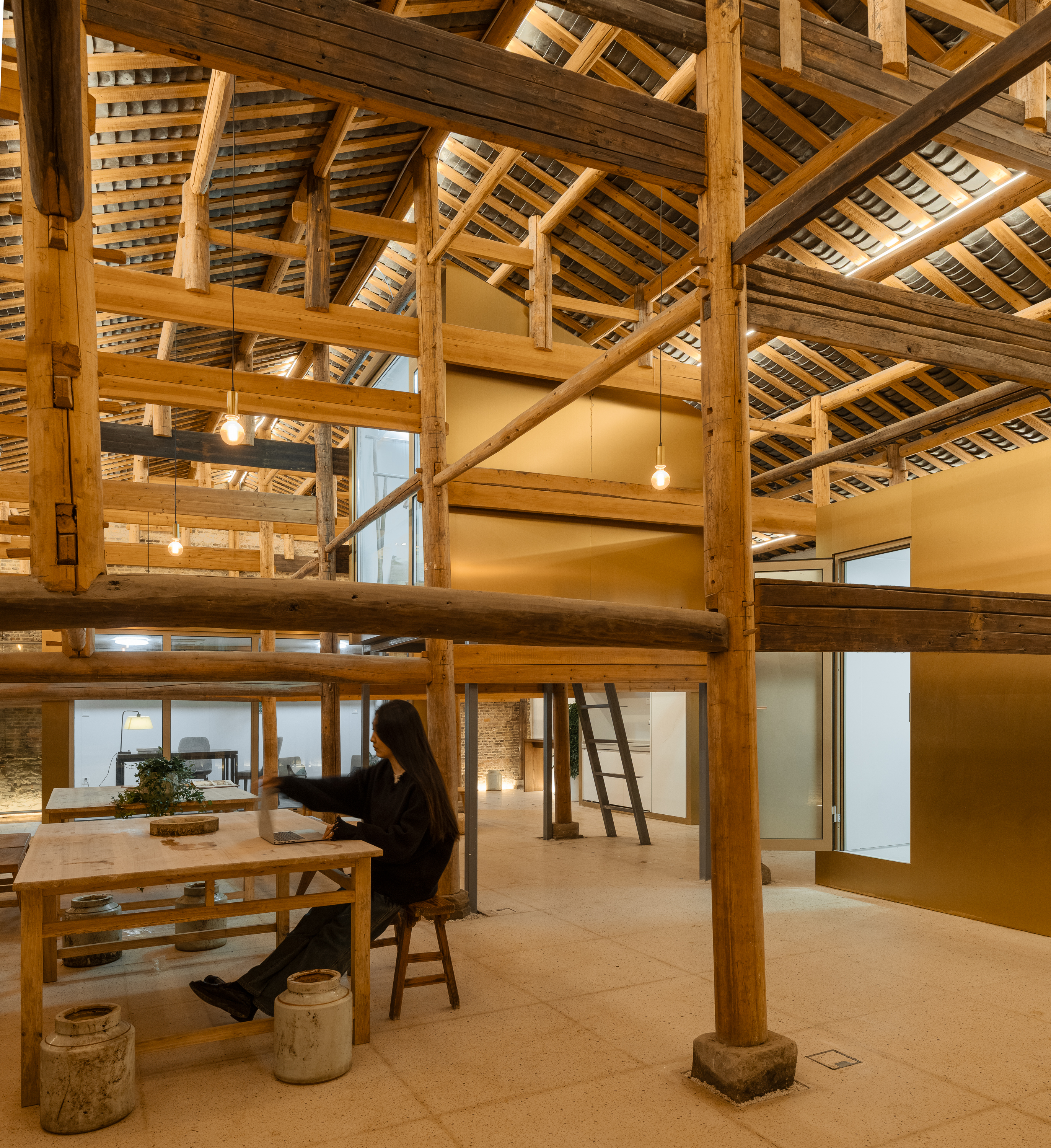 류커청디자인스튜디오와 협업한 이번 프로젝트는 ‘플러그인 아키텍처’의 방법론을 확장하여, 기능적 모듈(거주, 작업, 요리, 교류)을 오래된 건축 내부에 삽입한다. 프리패브 플러그인 유닛은 기존 바닥 위에 직접 설치되며, 원구조를 손대지 않는다. 단열·환기·조명을 자체 내장한 경량 독립형 구조체로, 사계절 쾌적한 환경을 제공하면서도 건물의 원래 질감을 보존한다.