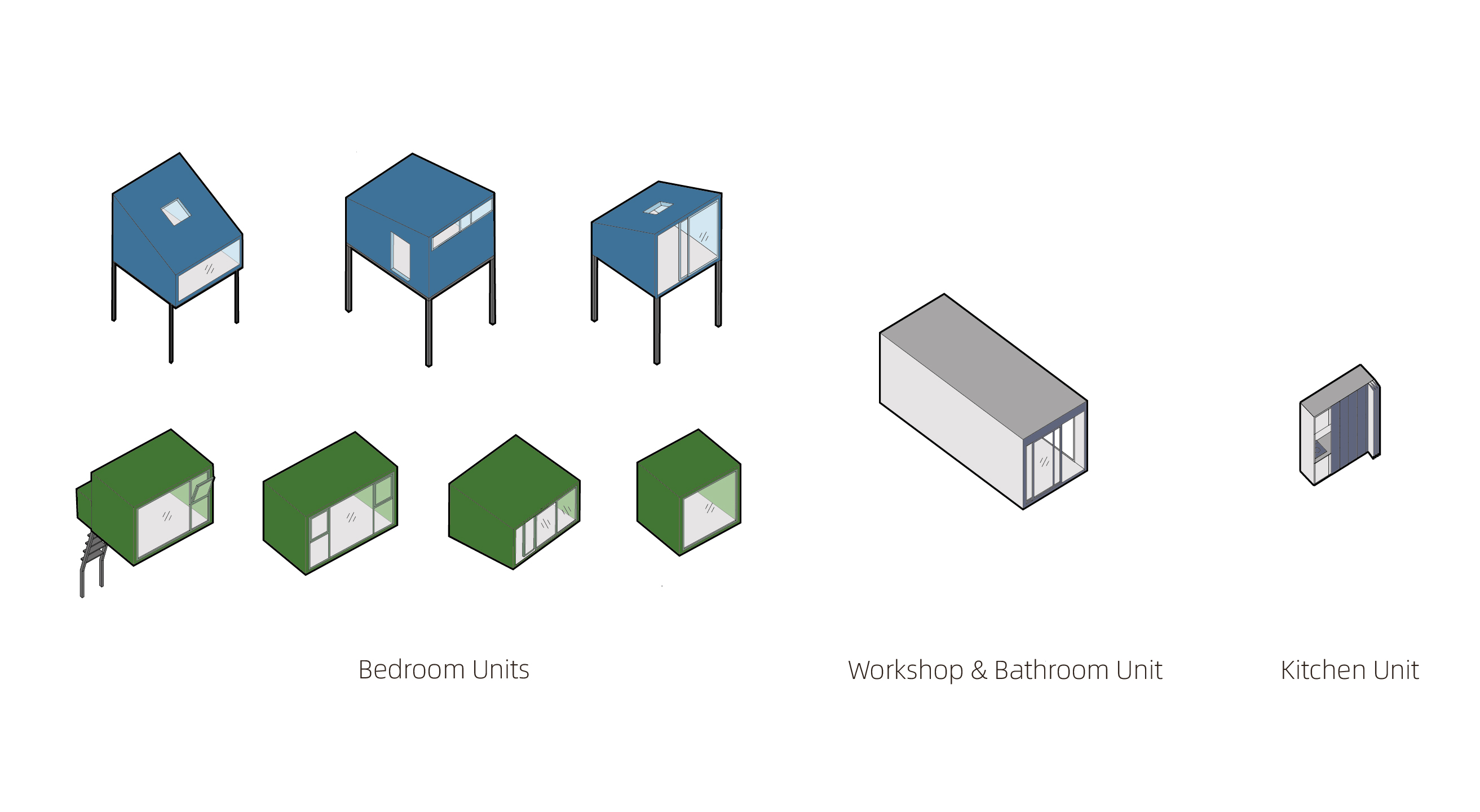 모든 장소에서 플러그인 시스템은 각기 다른 공간 조건에 적응하면서도 일관된 건축 언어를 유지한다. 모듈화된 패널 시스템은 규모, 재료, 디테일에 유연하게 대응하며, 불규칙한 형태와 변화하는 프로그램 요구에 맞춘다. 그 결과, 각 개입은 서로 다른 맥락 속에서도 하나의 체계적 전략으로 연결된 ‘건축적 군(群)’을 형성한다.