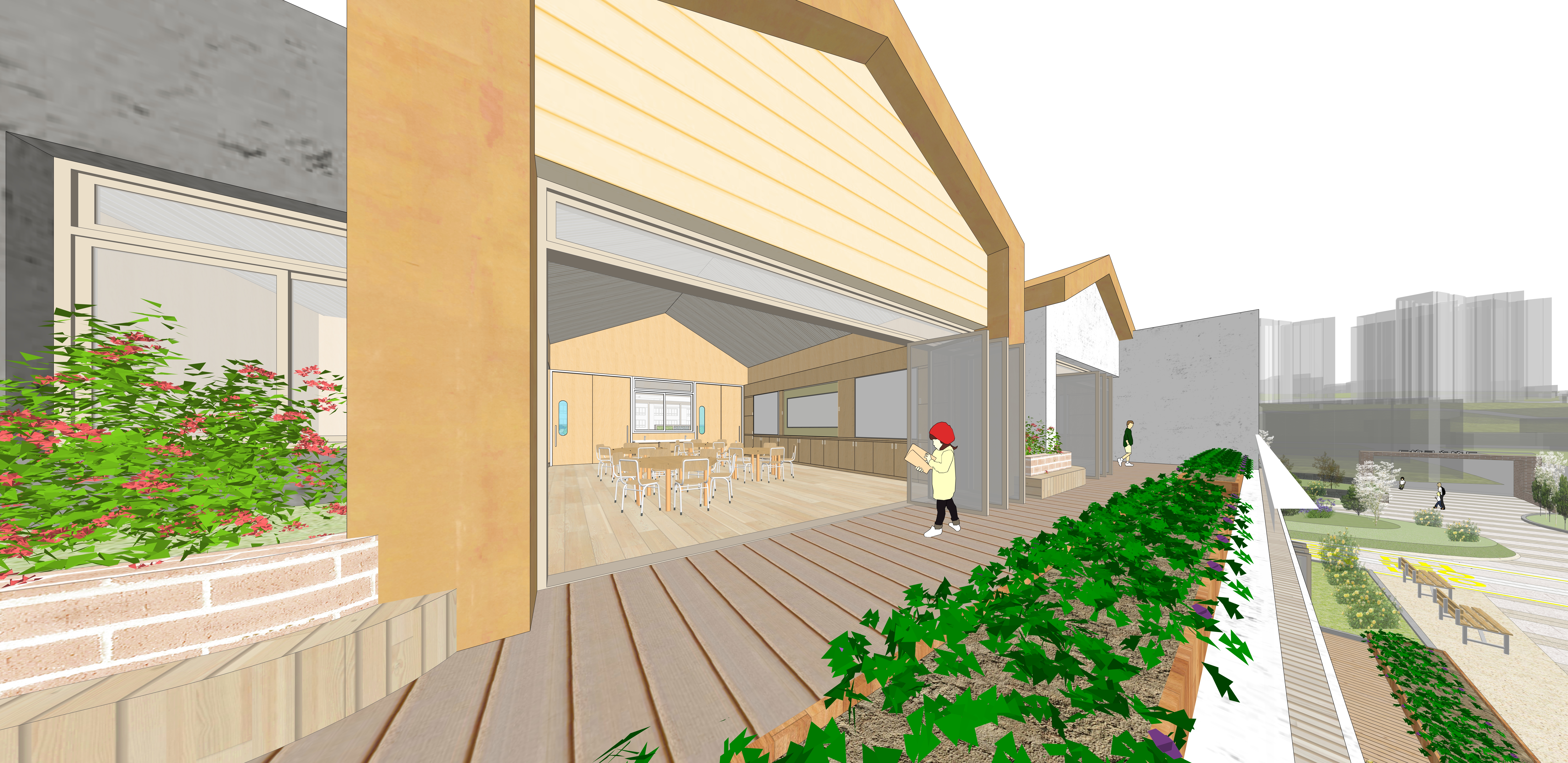 기존의 교실 중심 학습이 외부 공간까지 확장되도록 설계하였습니다. 교실은 생활과 학습이 융합되는 학생 중심의 미래학습공간으로 재정립됩니다.