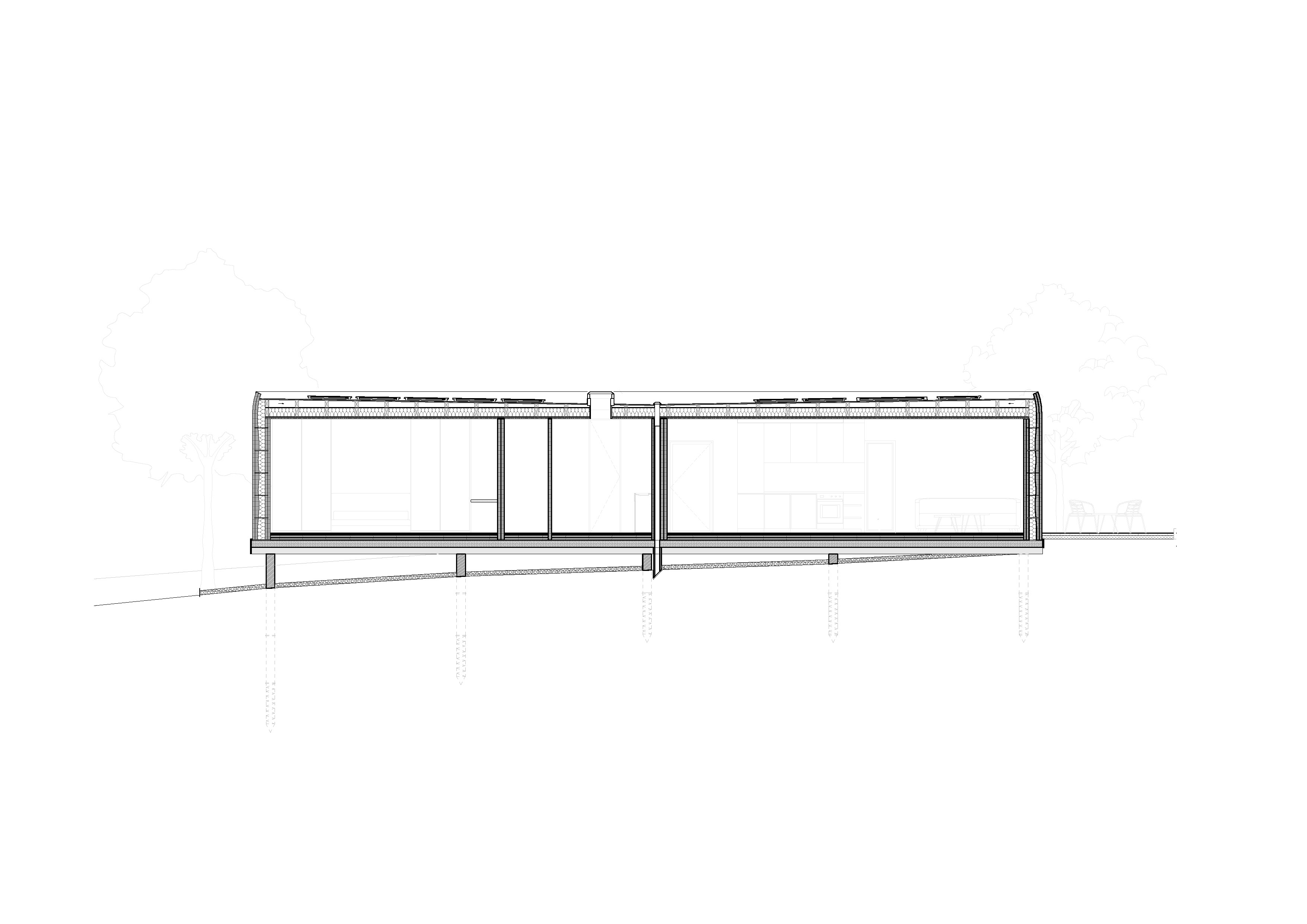 첫 번째 파일럿 주택은 폭 3.5m, 깊이 17.7m의 협소한 부지(실면적 약 47㎡)에 세워졌다. 양쪽 벽면에는 가구와 수납, 서비스 공간을 배치하고, 중앙에는 시각적으로 열린 축을 두어 실내가 실제보다 넓고 차분하게 느껴지도록 했다. 이 주택은 룩셈부르크 최초로 현지 골재를 사용한 3D 프린트 주택이자, 콘크리트 기초 대신 목재 바닥 플랫폼과 스크루 파일 기초를 적용한 사례다. 이를 통해 중량을 줄이고, 시공 및 해체 과정에서도 환경적 부담을 최소화했다.