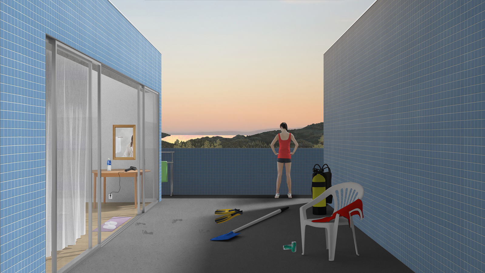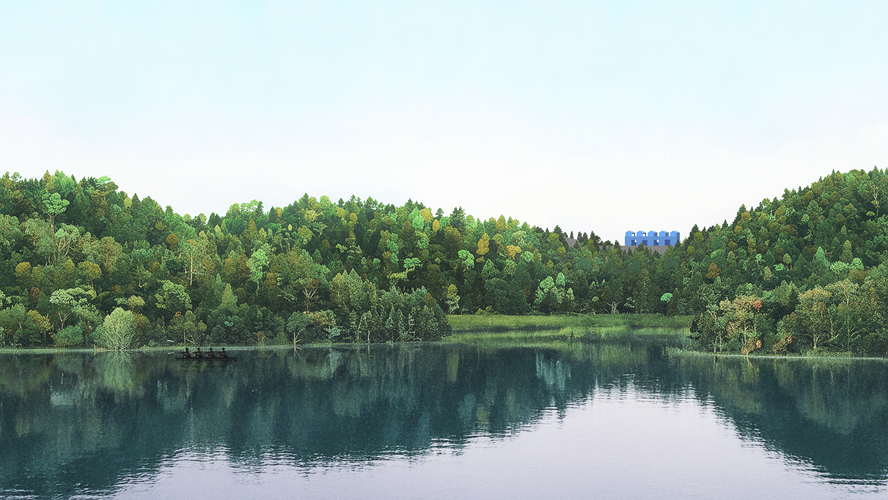 쪾진양호공원 산자락에 자리한 조정훈련장은 서쪽으로 진양호, 동쪽으로 진주시를 바라봅니다. 이곳은 오랜 시간 진주시민들의 추억이 쌓여온 관광 명소로, 저희가 제안하는 시민과 선수들을 위한 새로운 조정훈련장은 동화 속 푸른 숲속 요새처럼 신비롭게 자리합니다. 호수와 하늘의 빛을 담은 푸른색 타일로 마감된 외관은 시간과 계절 에 따라 다양한 빛을 반사하며, 숲의 풍경과 자연스럽게 어우러집니다.