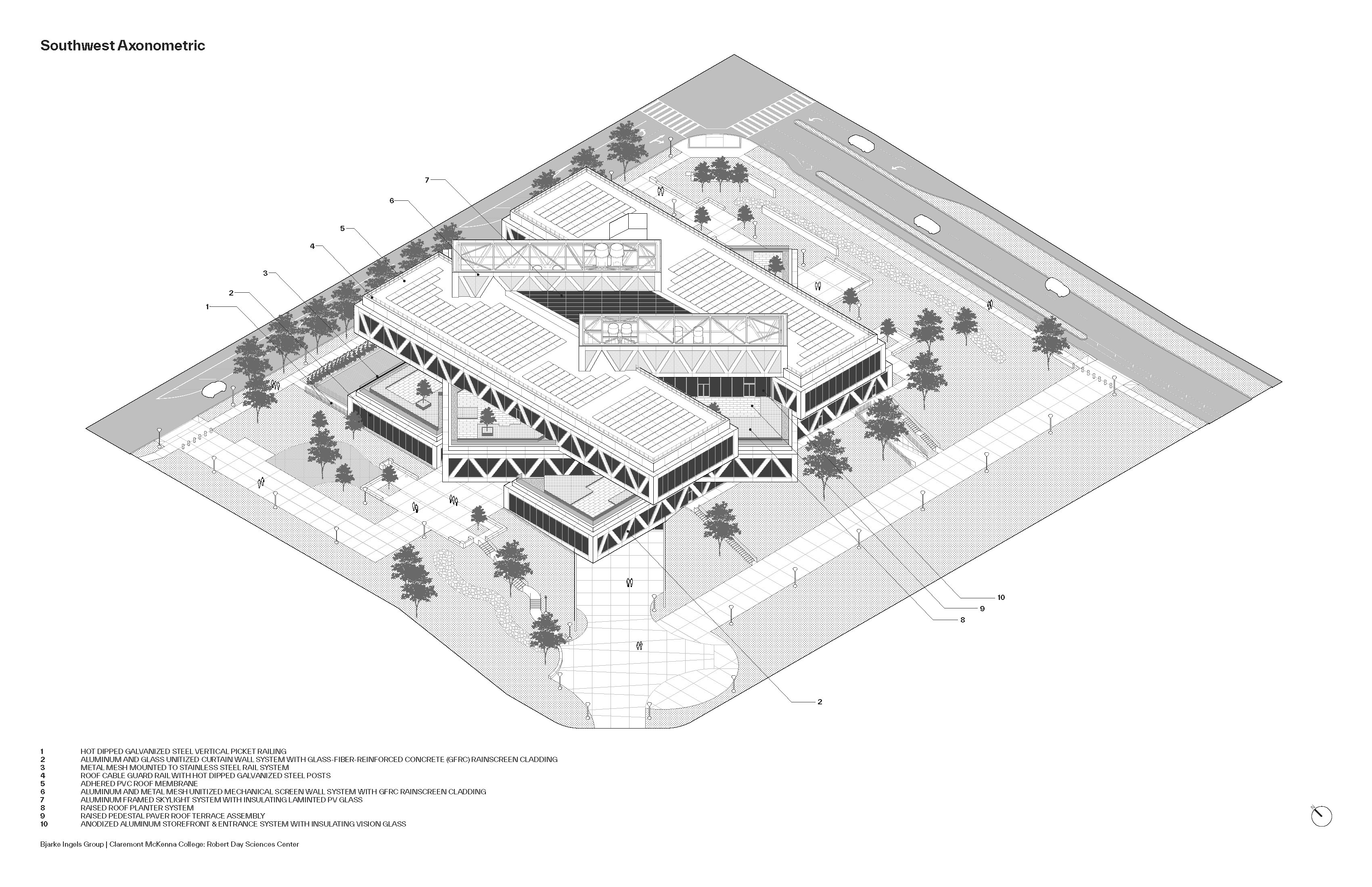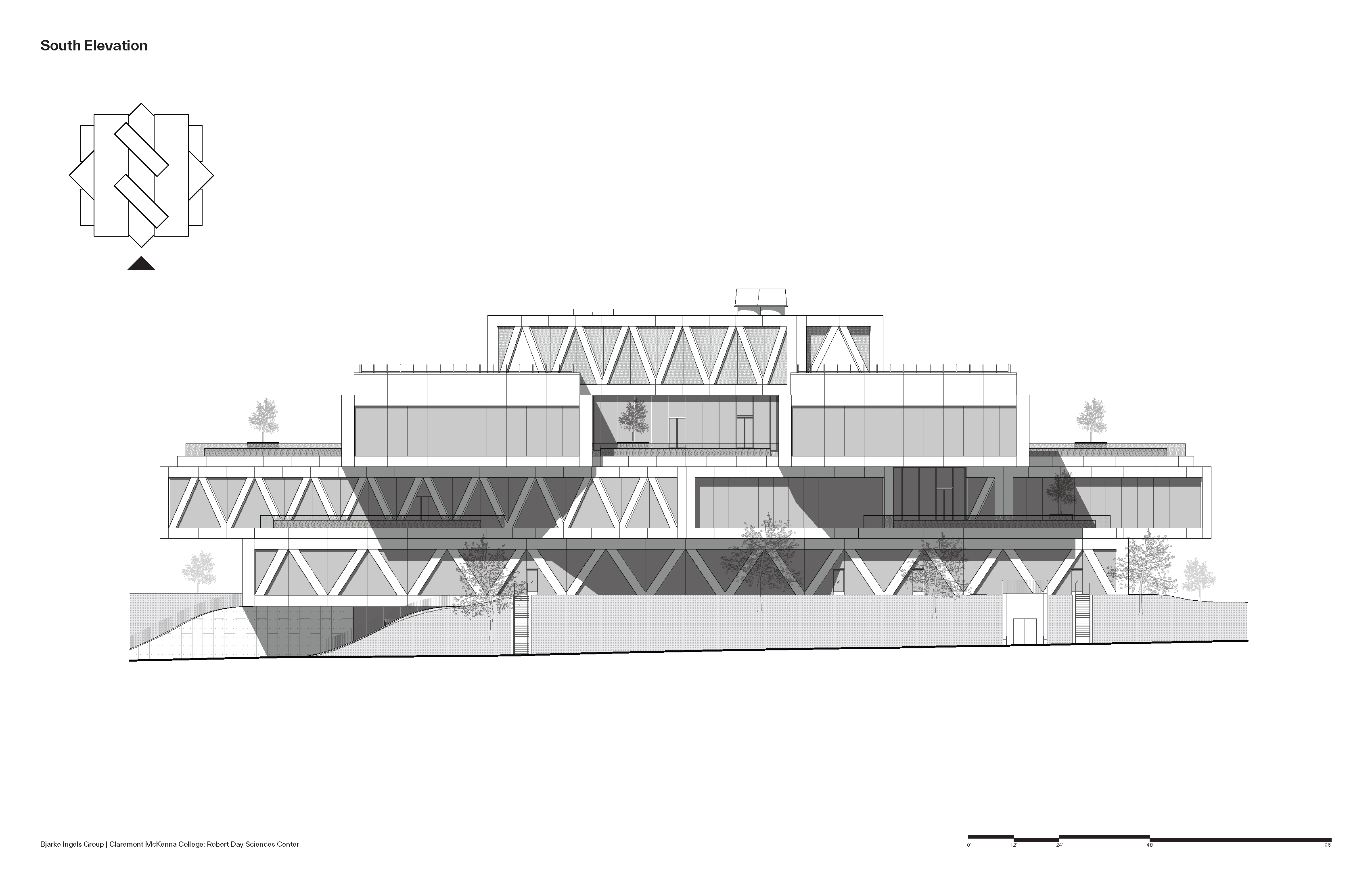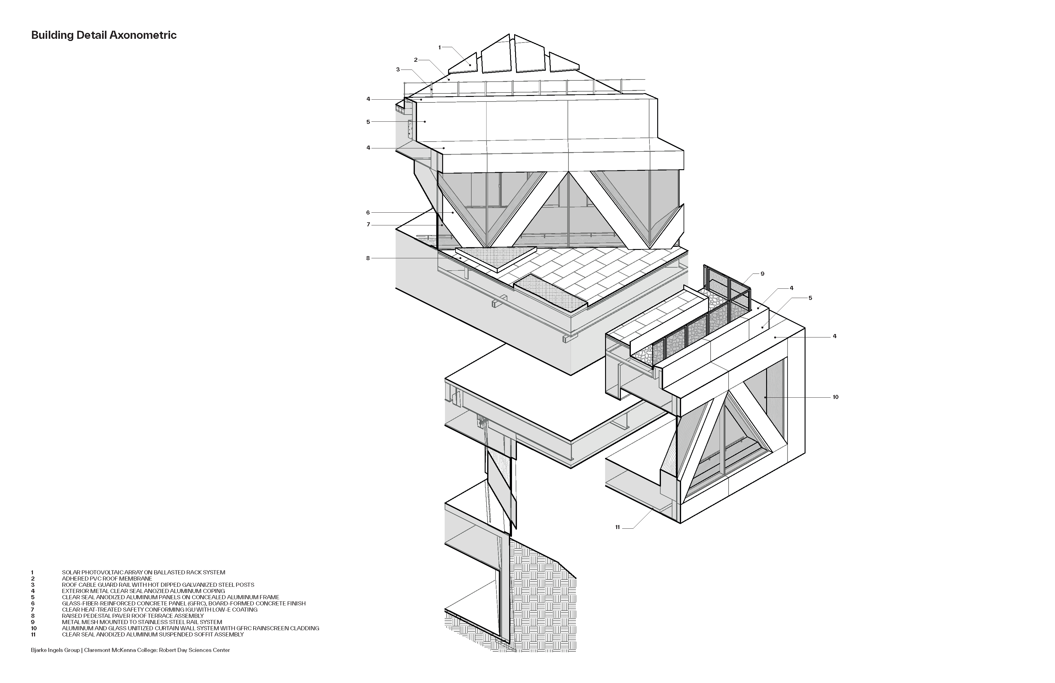 클레어몬트 맥케나 칼리지(Claremont McKenna College)의 새 과학관 로버트 데이 사이언스 센터(Robert Day Sciences Center)는 학문 간 통합과 교류를 극대화하는 방식으로 설계되었다. 12,500㎡ 규모의 이 건물은 각 층이 서로 다른 방향으로 회전한 형태로 쌓여 있어, 연구실·강의실·캠퍼스 외부를 오가는 동선과 시선이 입체적으로 교차한다. 2020년에 시작된 본 프로젝트는 약 1,400명의 학생을 위한 새로운 과학 교육의 허브로, BIG(비야르케 잉엘스 그룹)이 로스앤젤레스에서 완공한 첫 작품이자, CMC의 로버츠 캠퍼스 마스터플랜 가운데 가장 먼저 실현된 건축물이다.