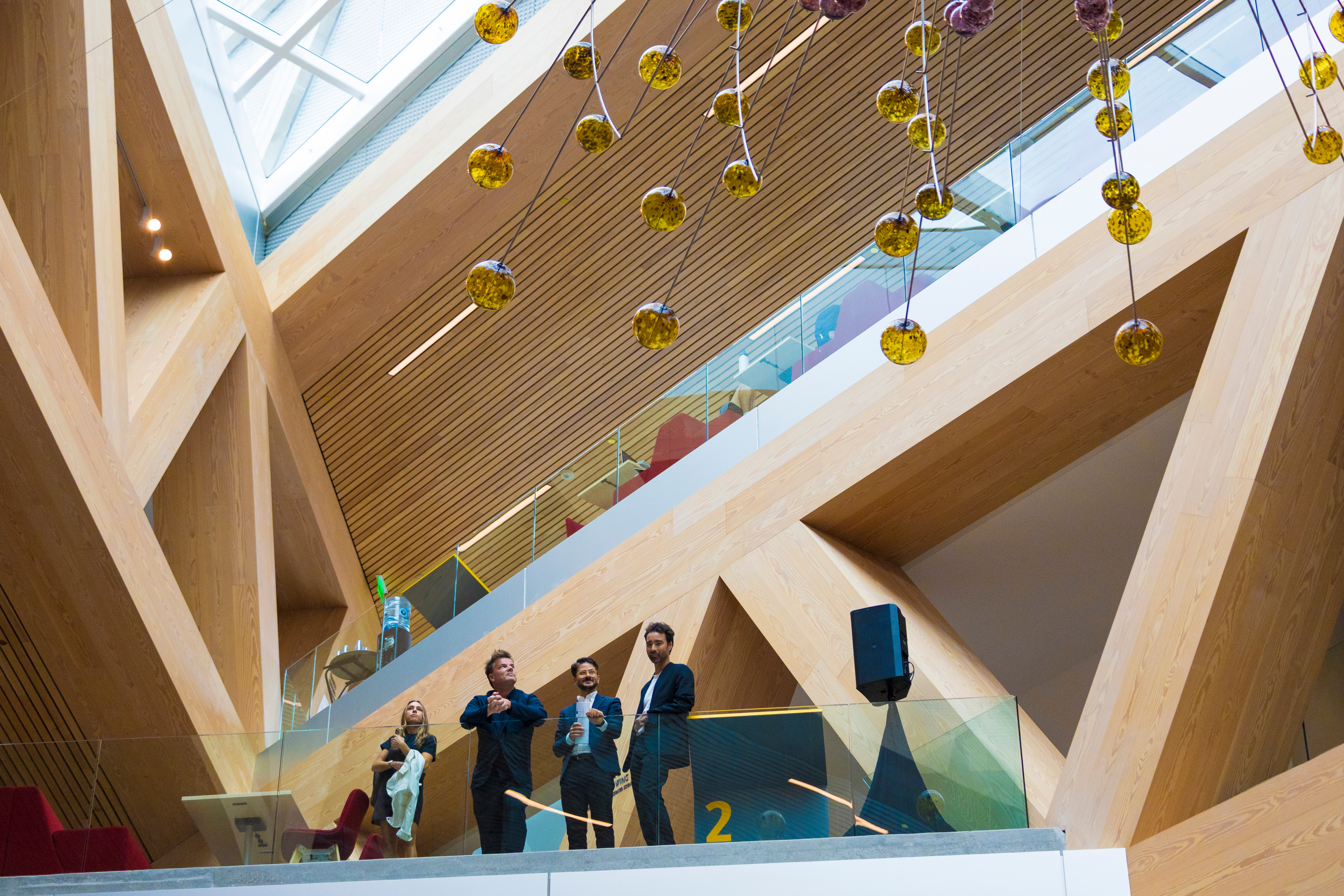 아트리움 중심부에는 커뮤니티 계단과 카페가 배치되어 자연스러운 만남과 휴식을 유도한다. 이 공간 위로는 다미안 오르테가의 작품 〈Magnetic Field〉가 9m 상공에 떠 있는 듯 설치되어 실내에 강렬한 조형적 장면을 더한다.