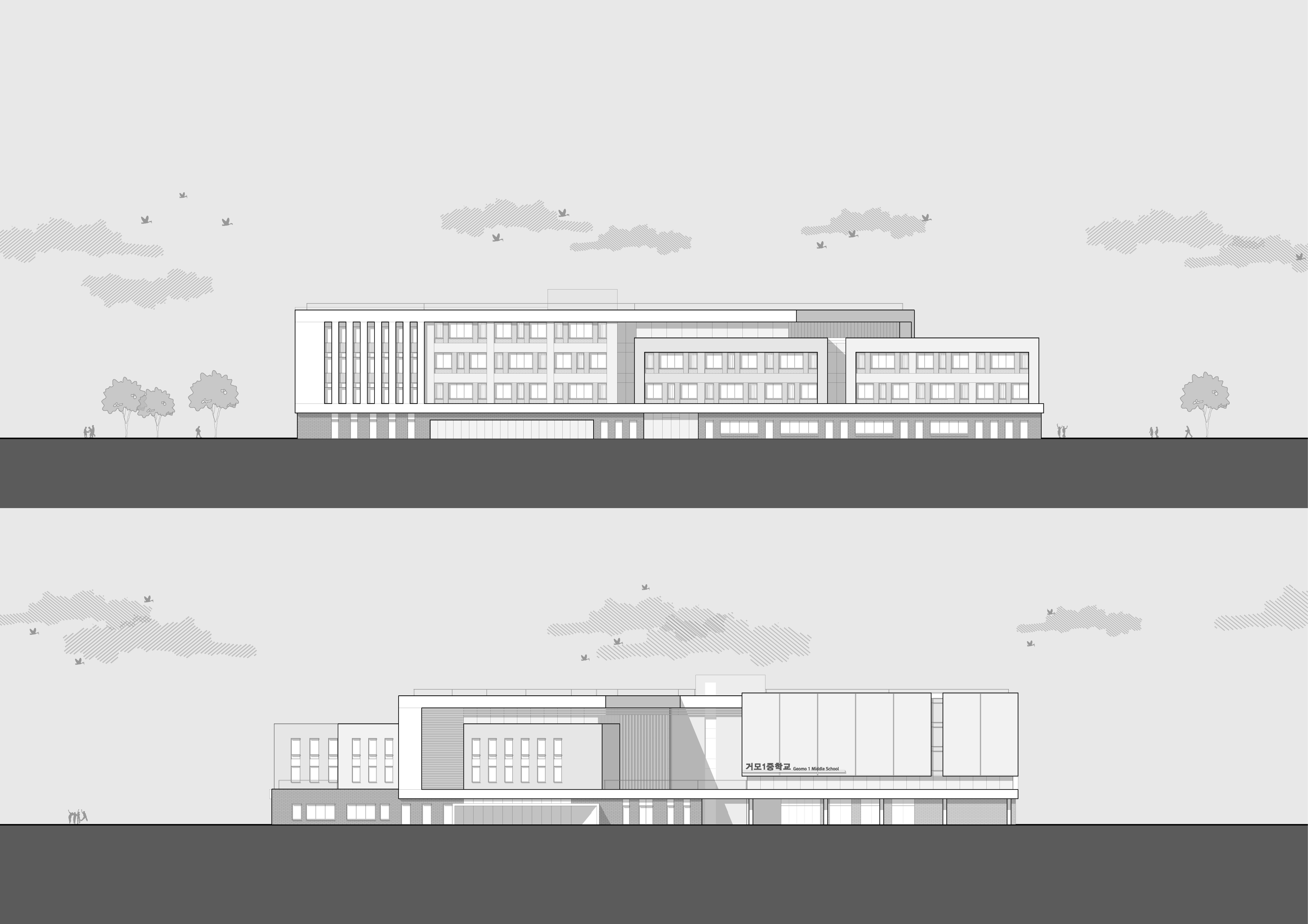 새롭게 개발되는 시흥거모 공공주택지구 내에 위치하는 거모1중학교는 남측과 동측에 공원으로 둘러싸여있다. 대상지의 형상을 반영한 매스는 공원을 향해 양방향 열려있어 어디서나 공원조망이 가능한 교육공간을 계획하였다. 도시의 맥락을 따라 열린 주민개방시설은 학교숲과 연계하여 다채로운 커뮤니티 환경을 제공하고 자연과 함께하는 실내광장을 통해 학생들이 건강한 꿈을 키울 수 있는 자연친화적인 학교 “EDU-GARDEN”을 계획하였다.
