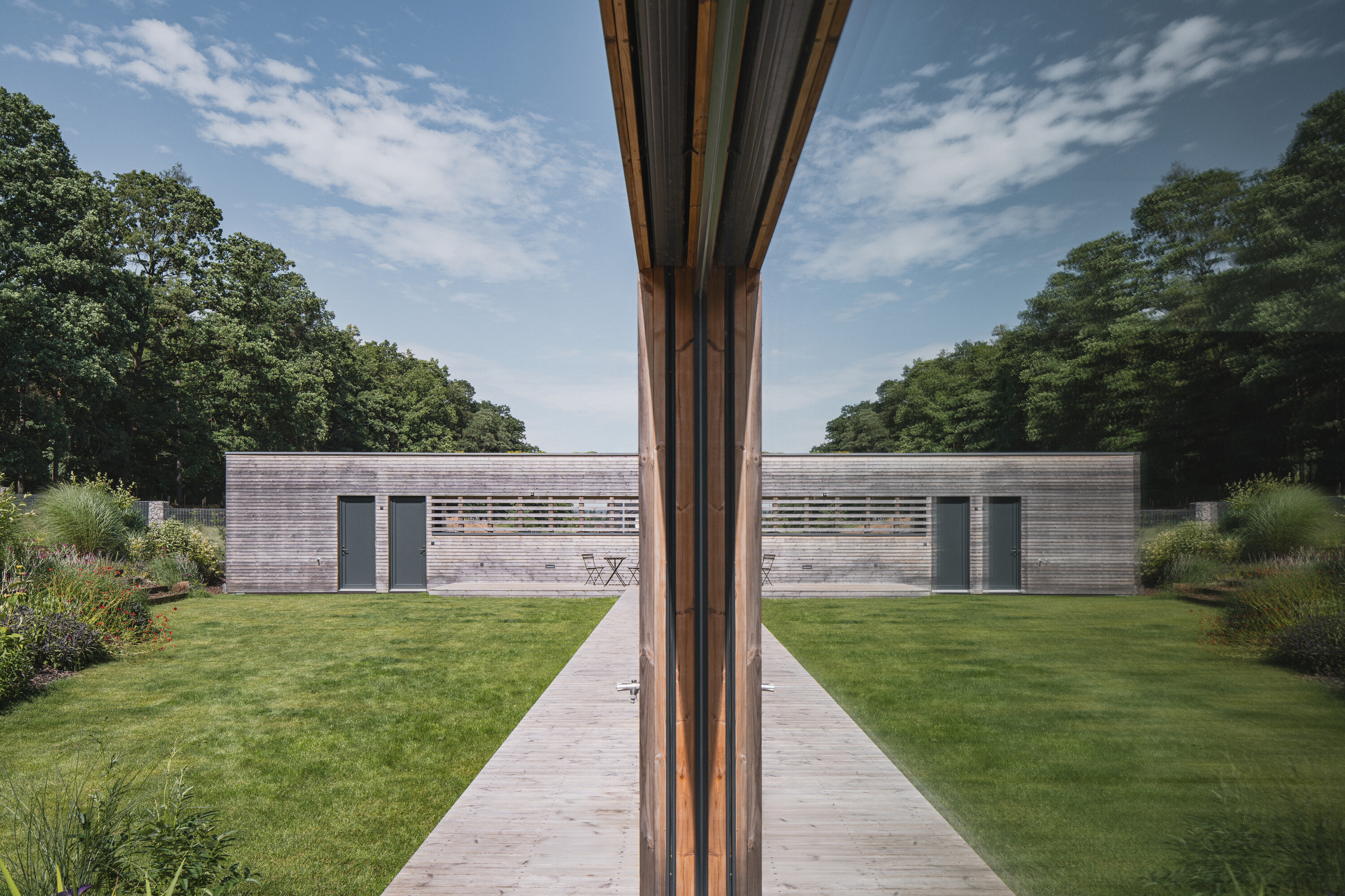 작은 마을 가장자리에 자리한 이 단독주택은, 시간이 지나며 변할 풍경을 미리 읽어낸 설계 전략에서 출발한다. 설계 당시 대지는 야생화가 자라는 초지로 둘러싸여 있었지만, 건축가는 머지않아 이 풍경이 개발될 것이라 판단했다. 이에 집의 주요 시선을 외부 경관이 아닌 정원과 숲을 향하도록 계획해, 시간이 흘러도 변하지 않을 ‘자기만의 세계’를 지켜내는 구조를 만들었다.