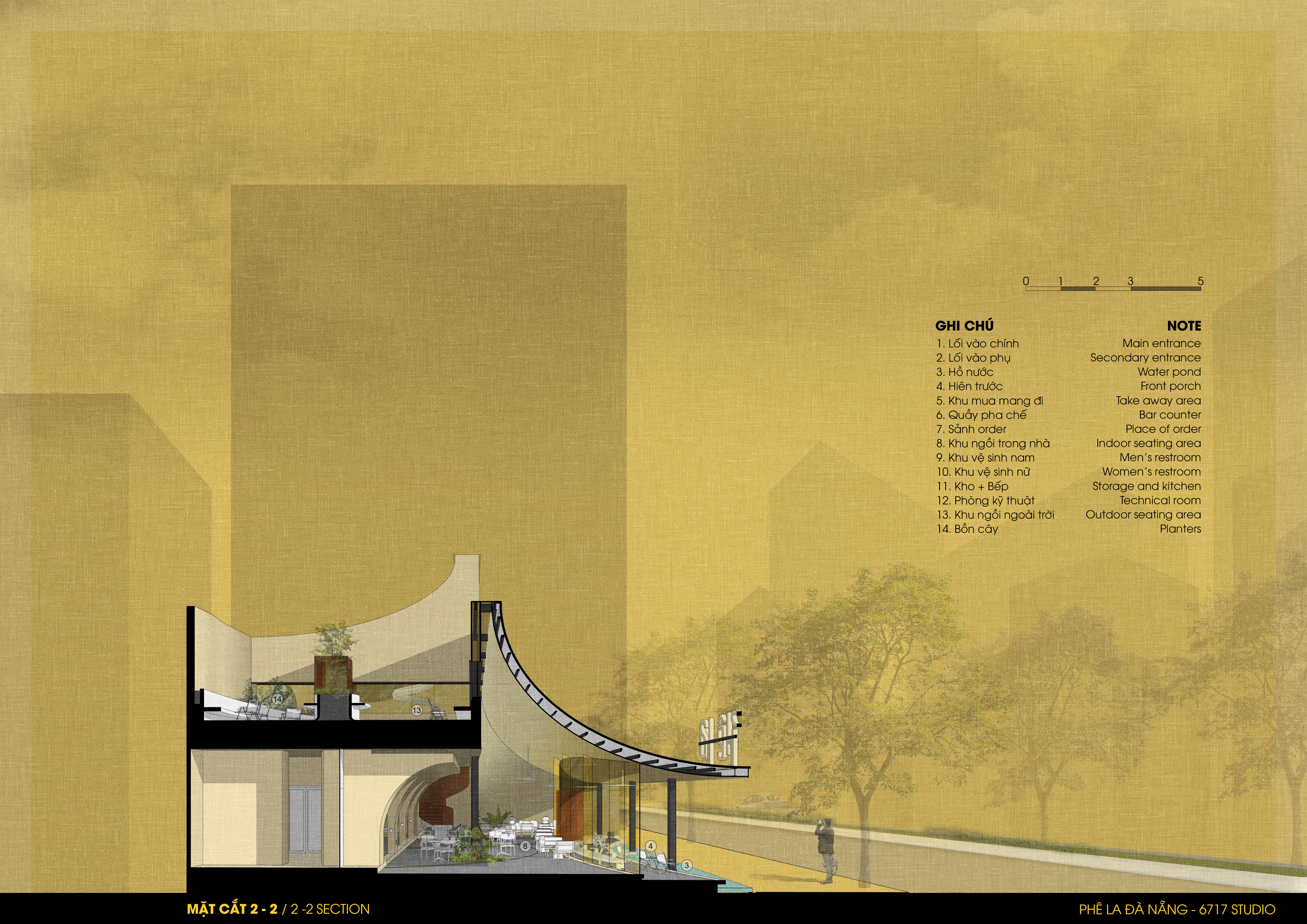 현대성과 지역성이 자연스럽게 맞닿는 곳, ‘페라 다낭’은 응우옌반린 거리의 강한 흐름 속에서도 고요한 리듬을 만들어내는 공간이다. 건축가는 이곳을 단순한 티하우스가 아닌, 자연의 질서와 시간이 머무는 장소로 상정하며 설계를 시작했다.