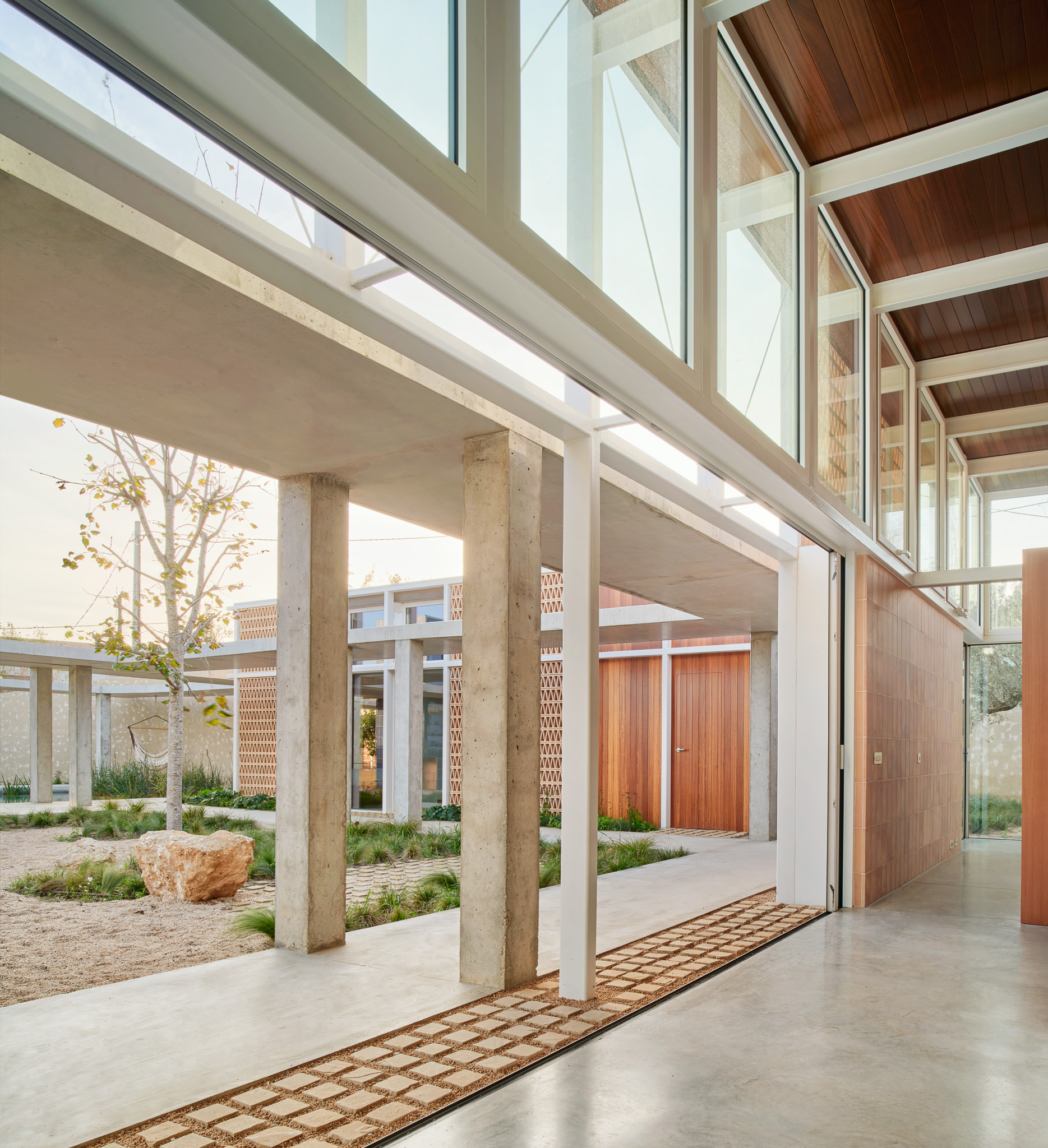 프로젝트는 두 가지 뚜렷한 레퍼런스에서 출발했다. 하나는 캘리포니아의 케이스 스터디 하우스(Case Study Houses)가 보여준 실험적 주거 방식, 또 하나는 인근 엠푸리에스(Empúries)의 그리스·로마 유적이 보여주는 ‘자리를 남기는 건축’의 태도다.