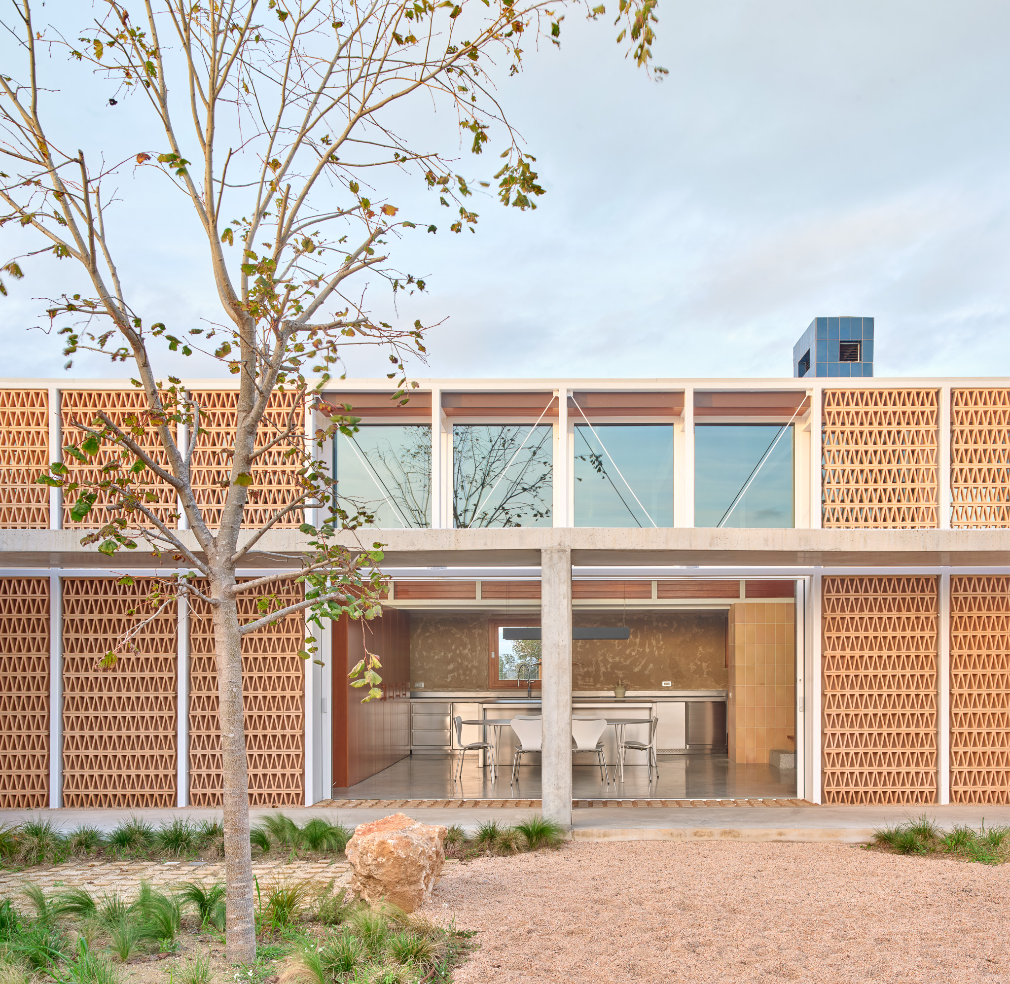 건축가는 에스파냐 엠포르다(Empordà)의 평원 위, 세 개의 중정을 중심으로 구성된 파빌리온형 주택 Casa Tres Patis를 설계했다. 이 집은 서로 다른 성격의 중정들이 일상의 중심이 되는 구조로, 건축·빛·바람·물·신체의 움직임이 조응하도록 계획됐다.