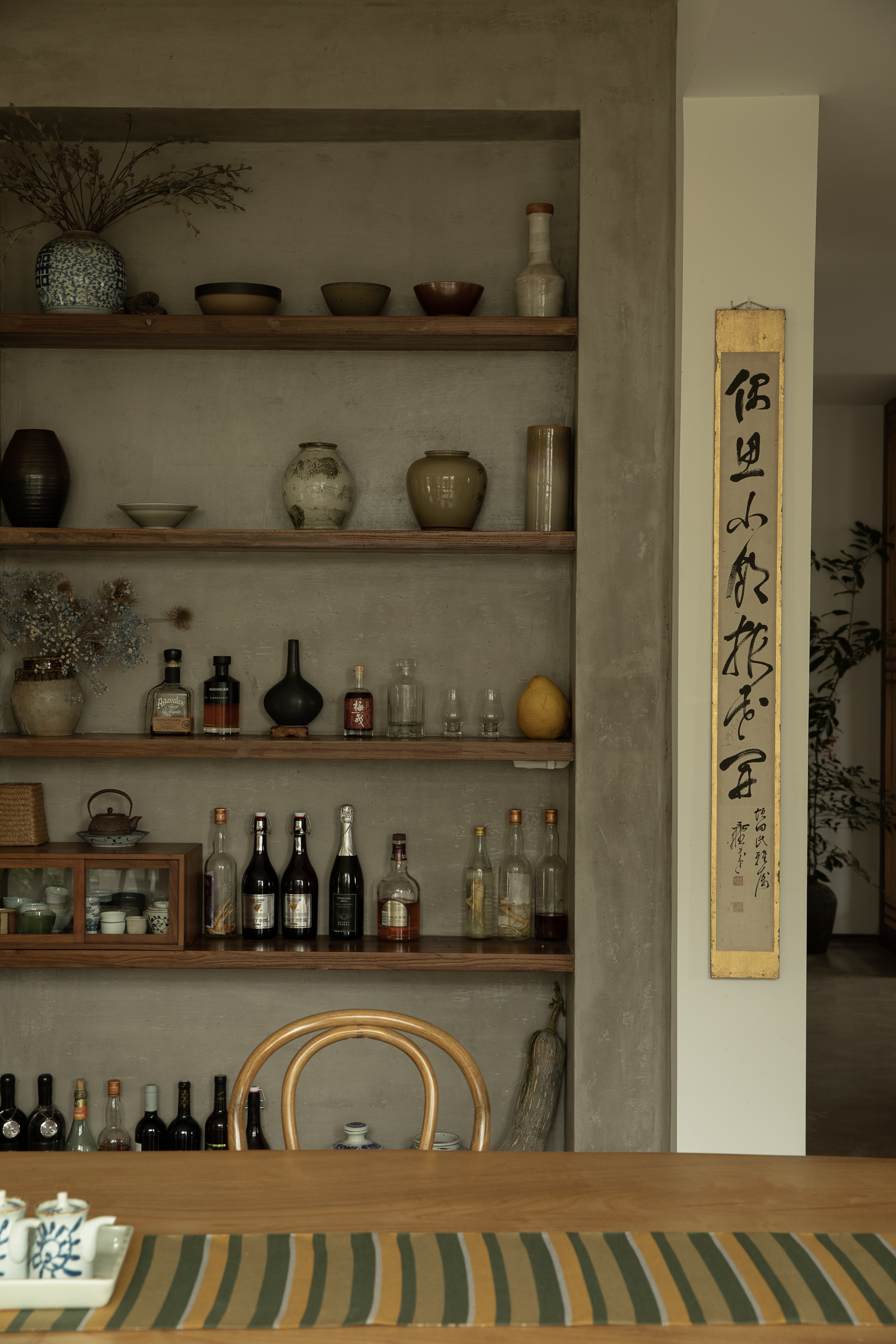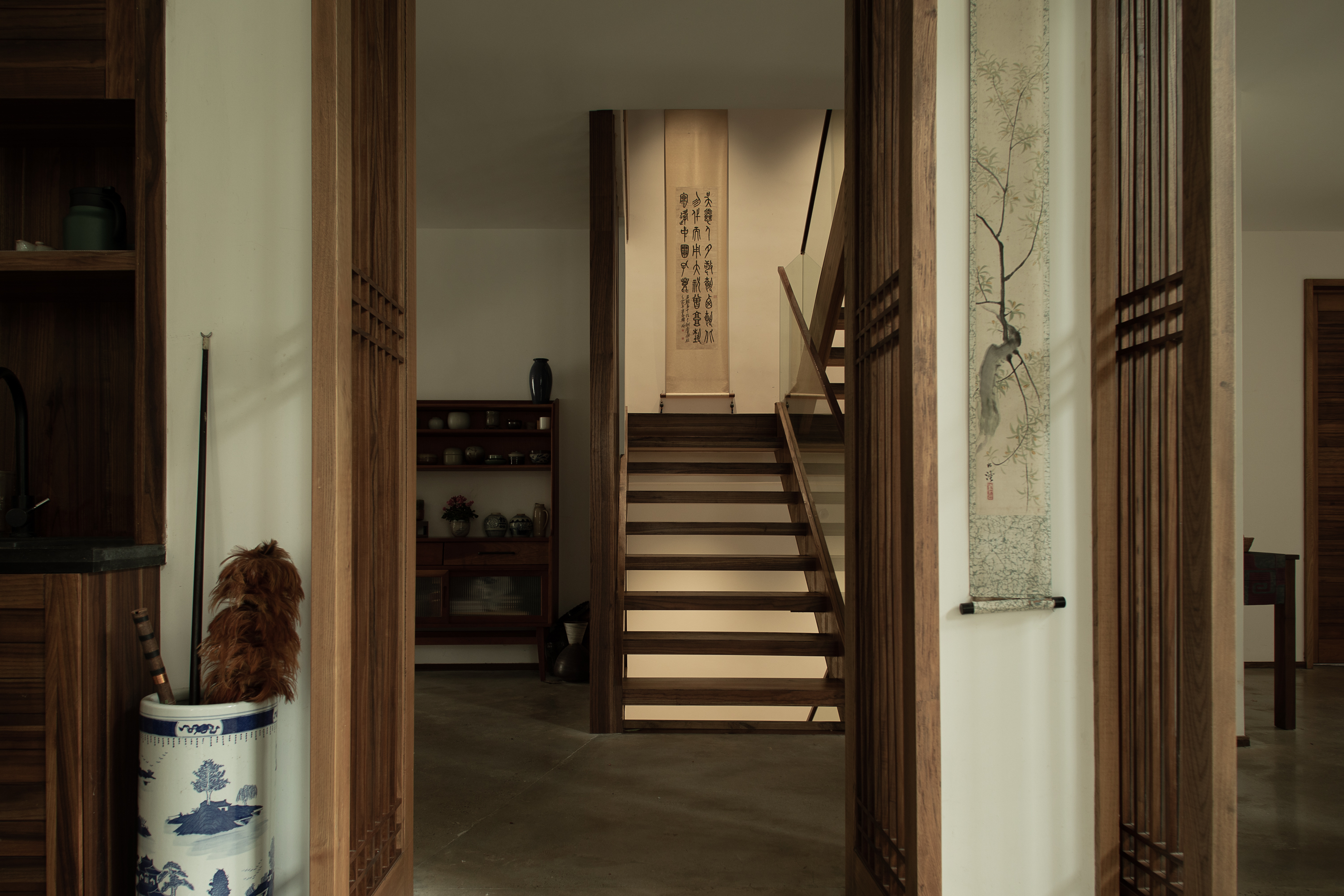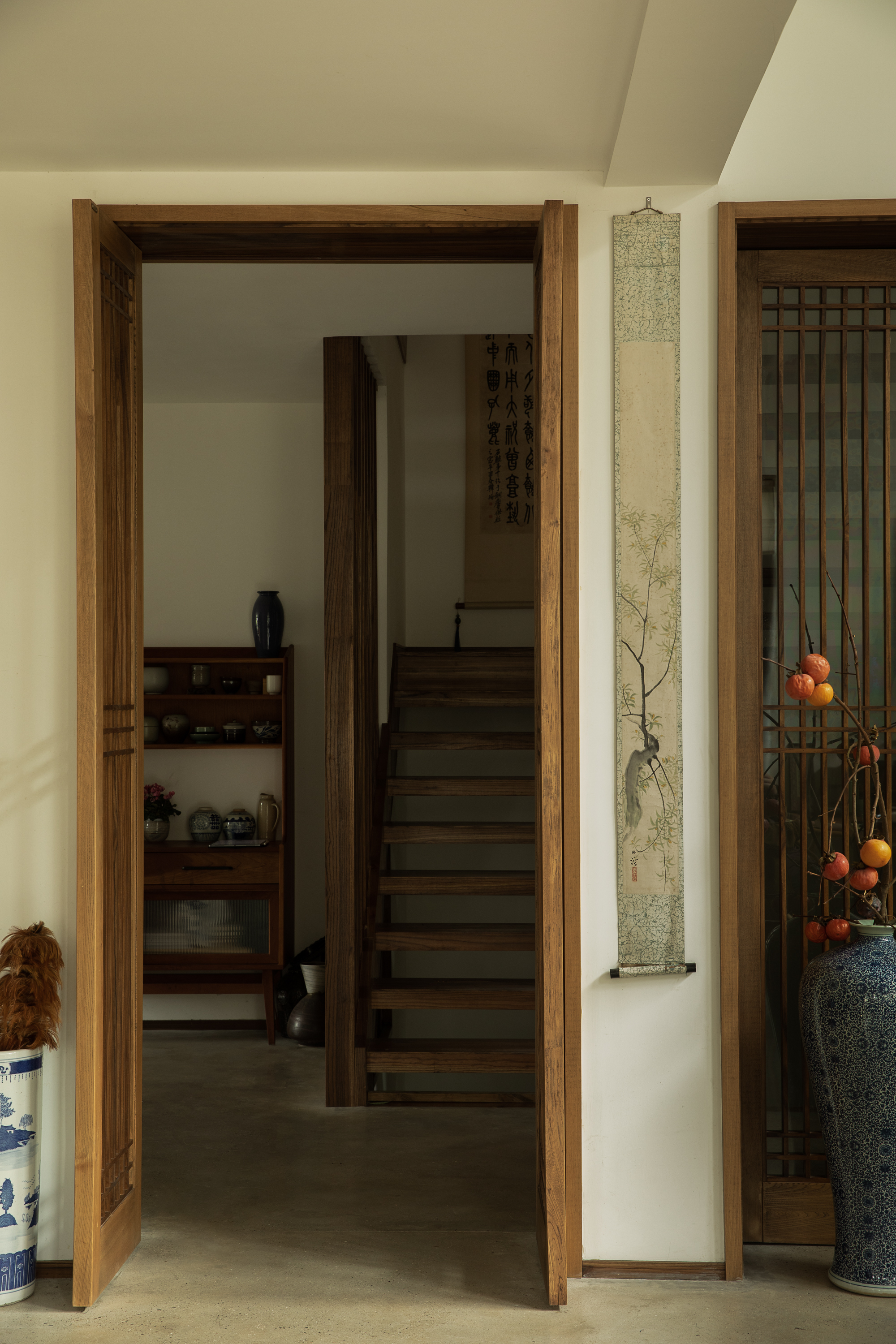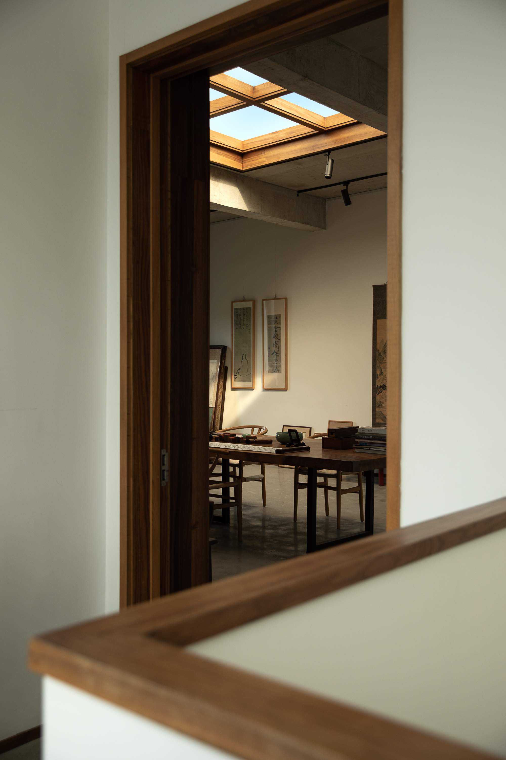 거주자가 오랫동안 수집한 서화, 도자기, 공예 오브제 등은 건축가가 직접 공간의 비례와 시선에 맞춰 배치했다. 전통적 예술과 일상의 오브제가 자연스럽게 어우러지며, 집이라는 구조 안에 문화적·정서적 층위를 더하는 장치로 작동한다.