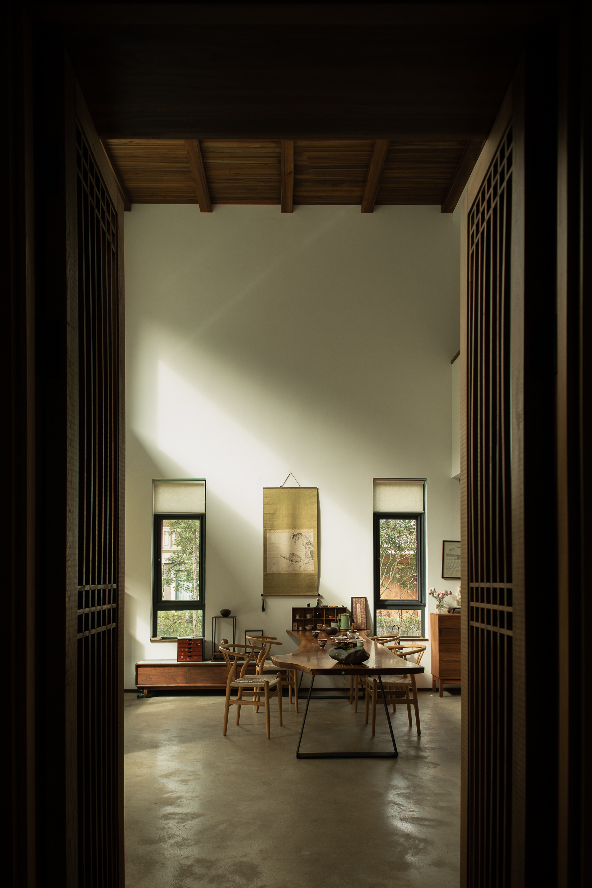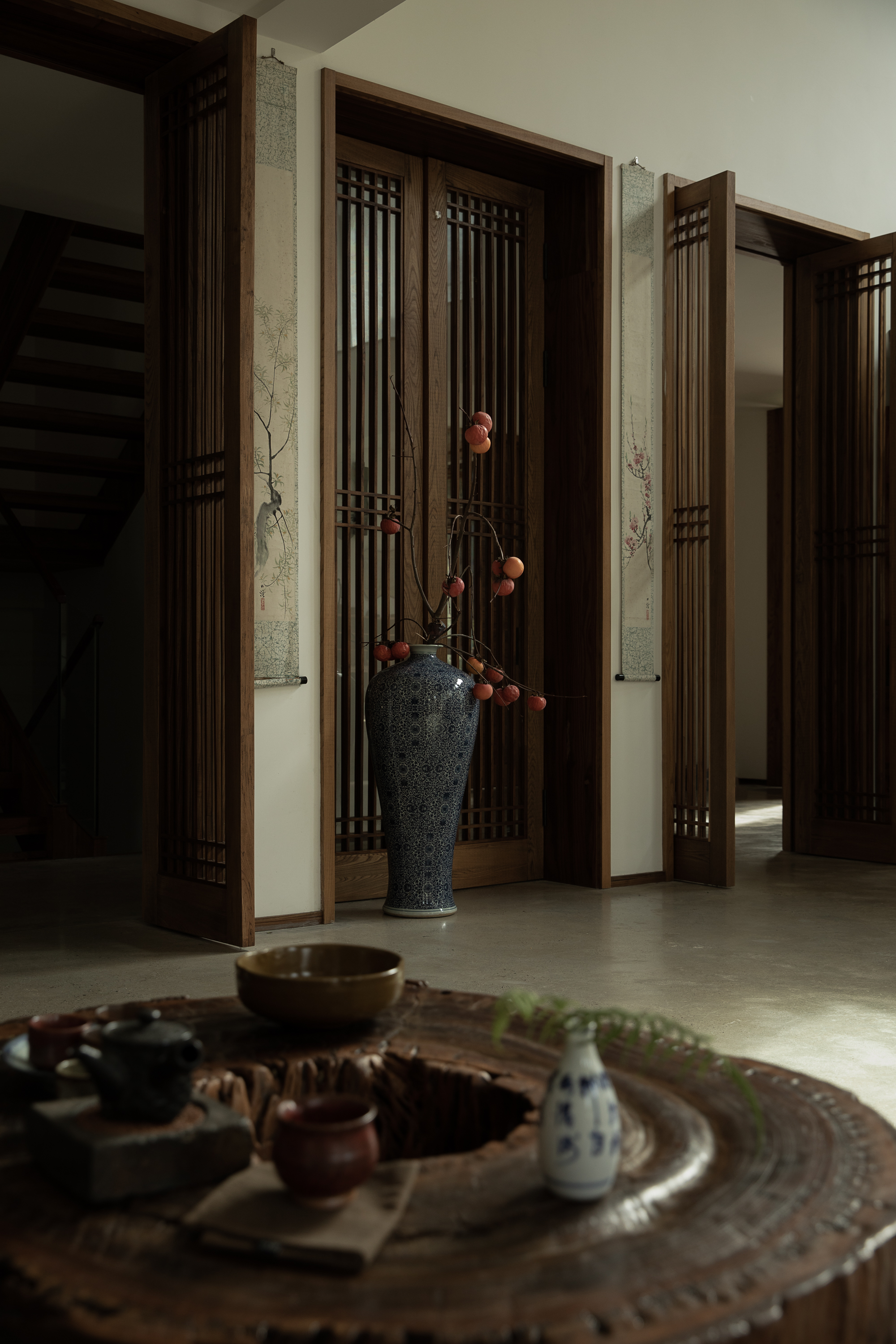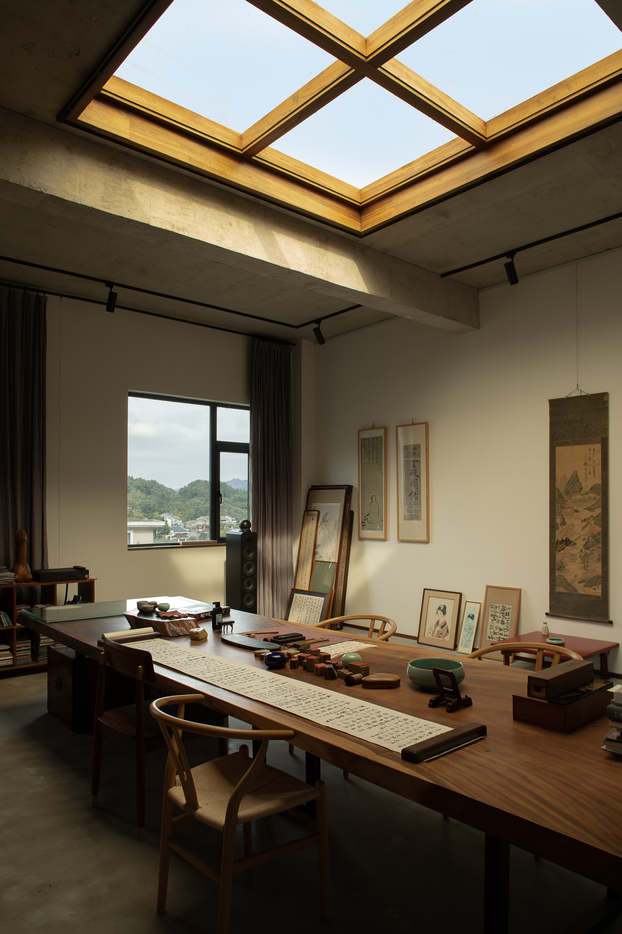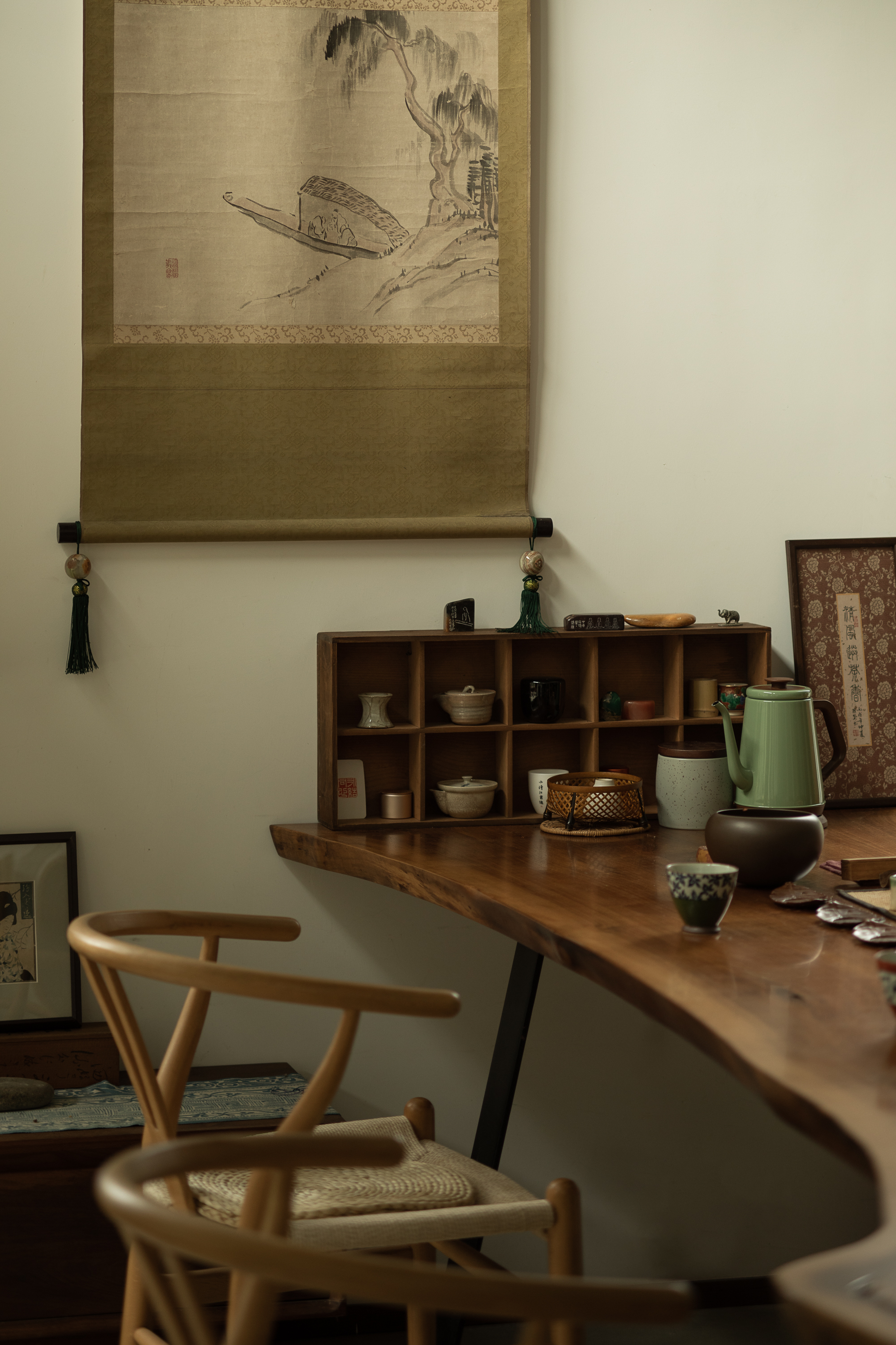 거주자가 오랫동안 수집한 서화, 도자기, 공예 오브제 등은 건축가가 직접 공간의 비례와 시선에 맞춰 배치했다. 전통적 예술과 일상의 오브제가 자연스럽게 어우러지며, 집이라는 구조 안에 문화적·정서적 층위를 더하는 장치로 작동한다.
