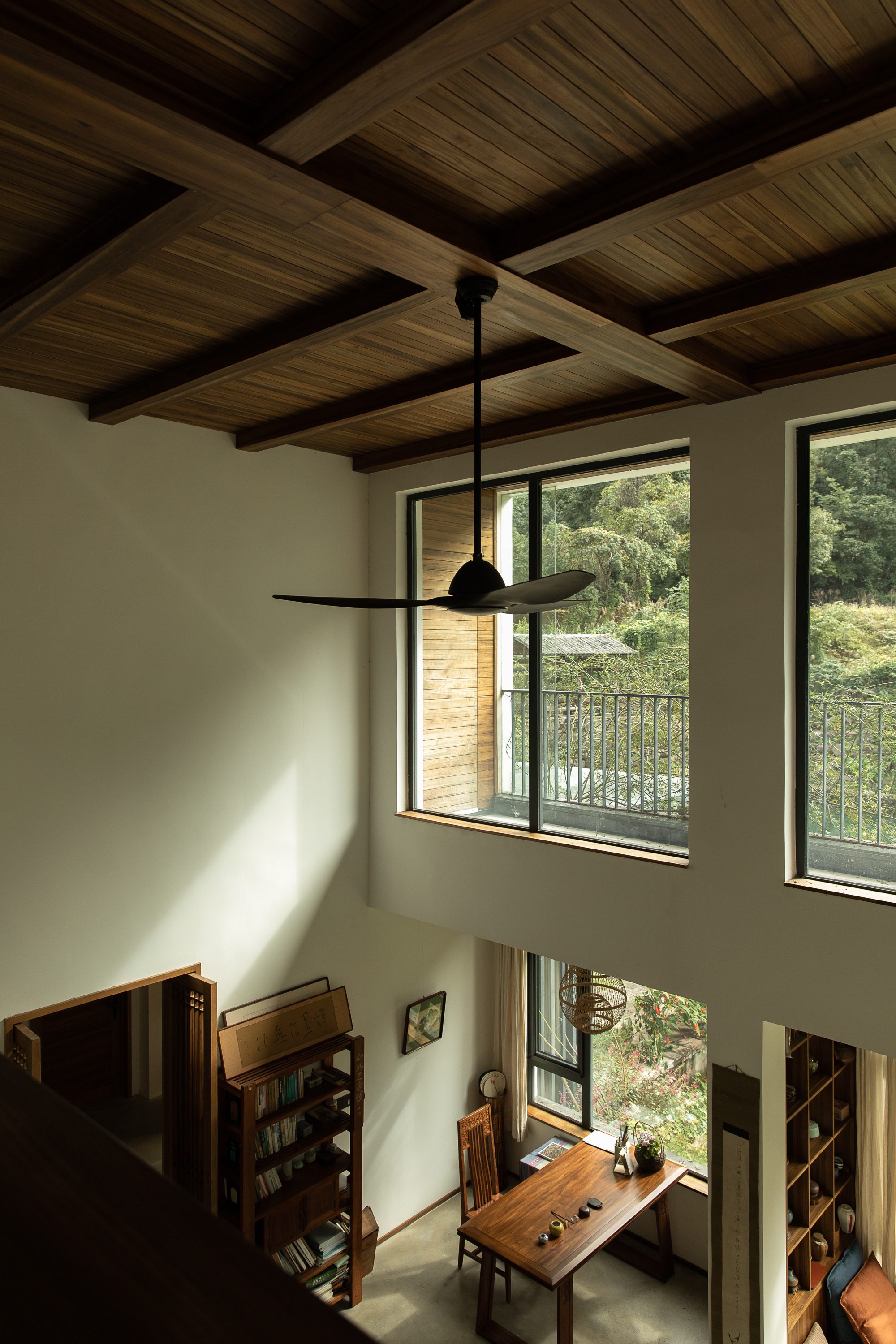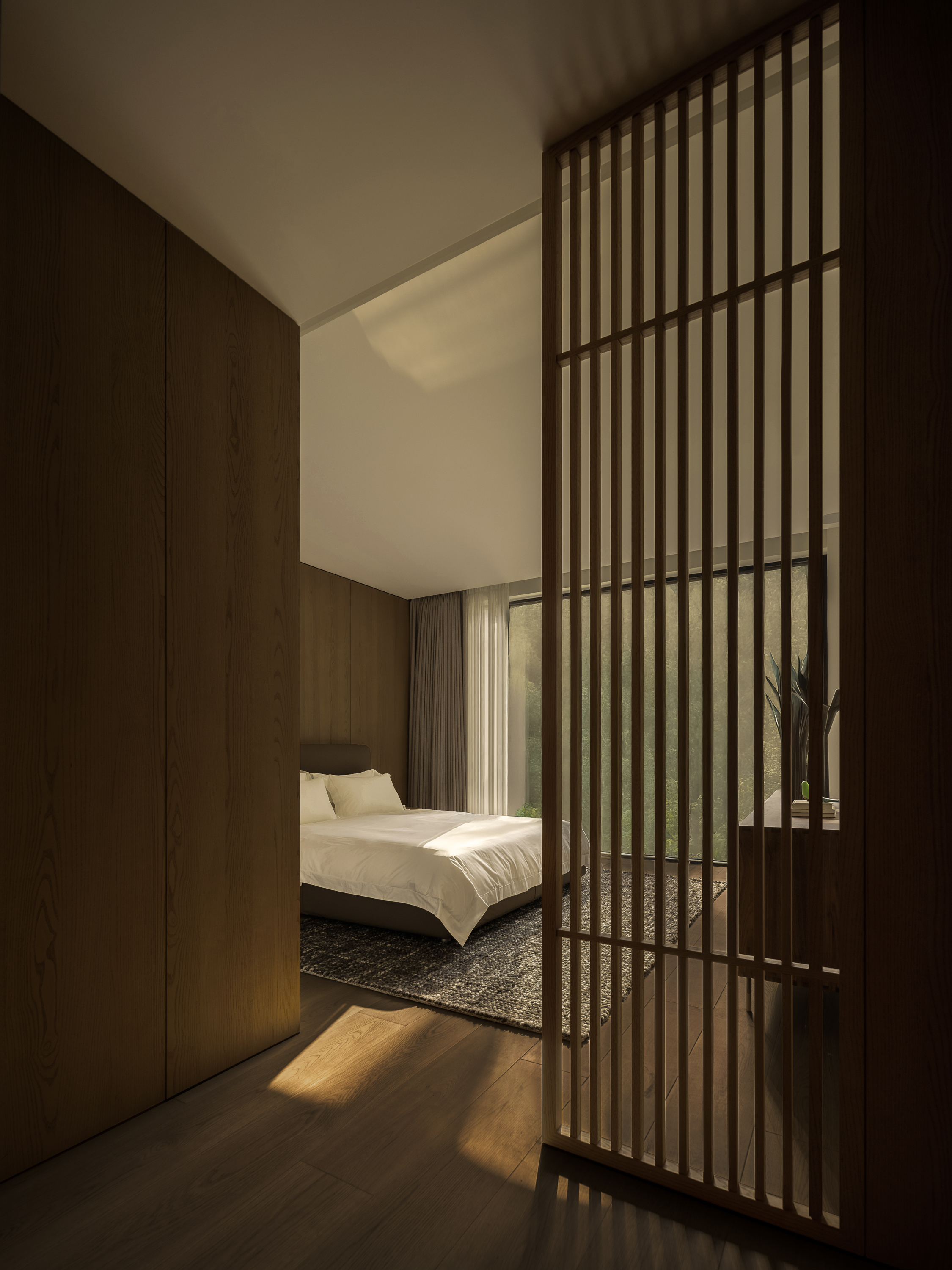 Scholarly Mountain-view Villa는 중국 항저우 외곽의 산자락 아래 자리한 3층, 약 700㎡ 규모의 주거 프로젝트다. 울창한 숲과 산세가 둘러싼 대지 조건은 건축가에게 ‘자연과 맞닿은 사유의 공간’이라는 방향성을 선명하게 제시했다. 건축가 딩린지(지상스페이스디자인 대표)는 이 집을 보편적 주거 규범이 아닌, 거주자의 삶과 감각에 반응하는 공간으로 정의했다. 기능을 먼저 정해두지 않고, 사용자의 일상적 습관과 사유 방식, 머무름의 패턴을 중심에 둔 접근이다.