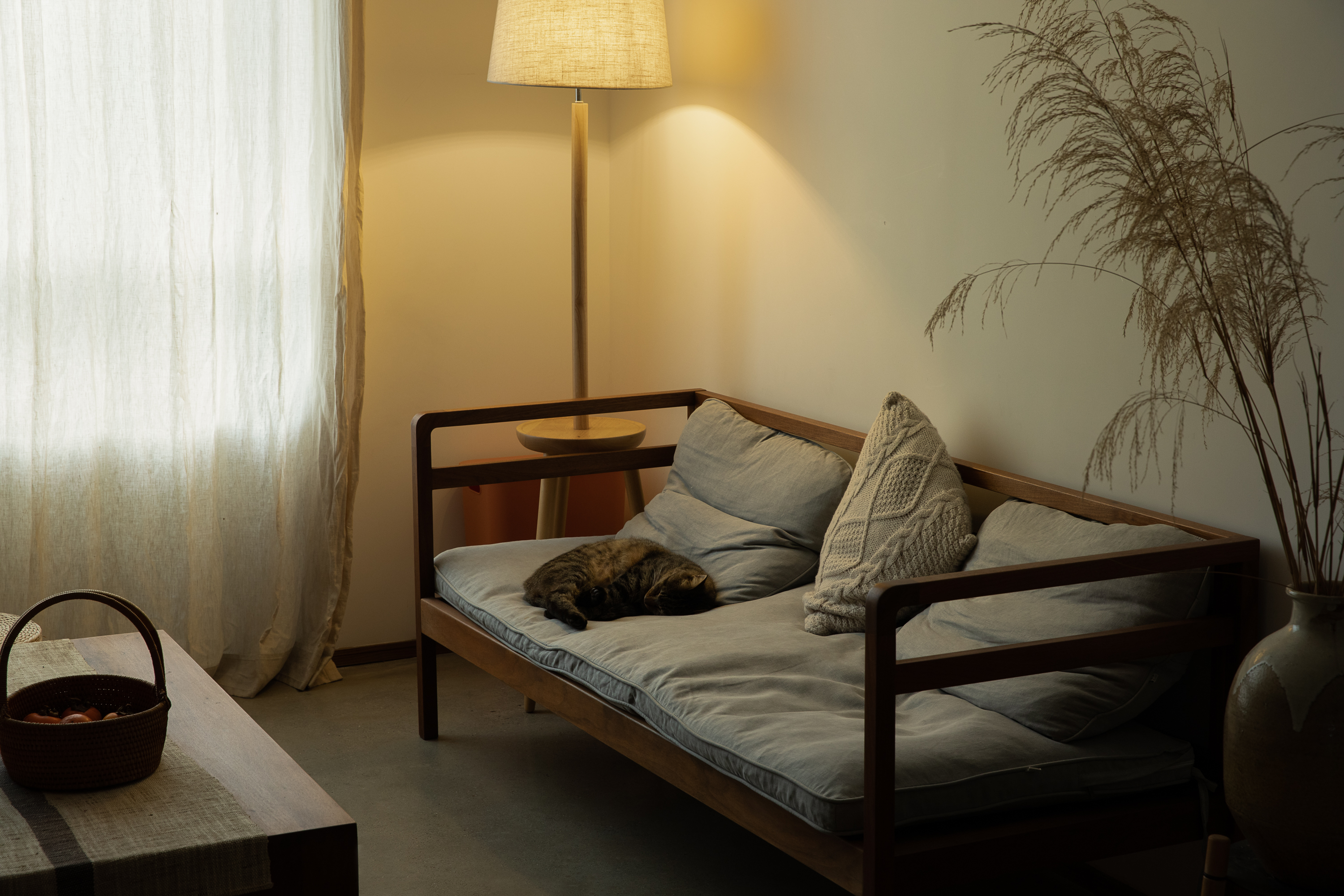이 집에서 재료는 단순한 마감이 아니라 ‘시간을 담는 장치’다. 흰 회벽, 자연 섬유, 목재 패널과 계단, 천장은 세월에 따라 질감이 깊어지는 재료들로 선택됐다. 사용의 흔적이 켜켜이 쌓이며 거주자의 삶이 공간에 스며드는 방식이다. 상부의 대형 스카이라이트는 자연광을 드라마틱하게 받아들이며 태양과 달의 움직임, 하루의 흐름을 실내 경험으로 전환한다.