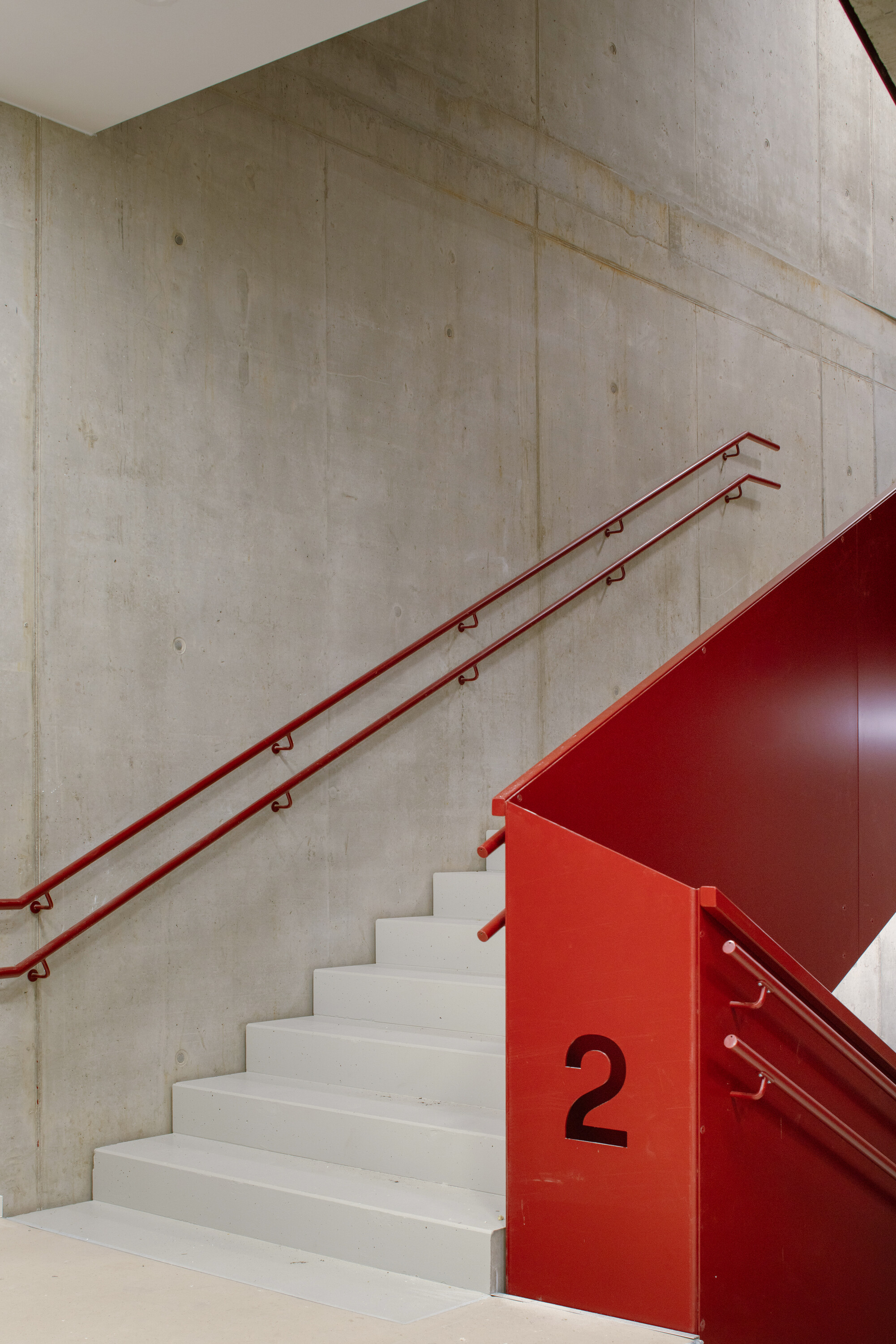 건물 구성은 두 개의 안뜰과 정확히 대응한다. 북측 동에는 교실과 공용 학습 공간이 배치되고, 남측 동에는 체육 공간, 강당 및 부속 시설이 담긴다. 내부는 세 개의 작은 아트리움을 중심으로 다양한 대안적 학습 공간이 유기적으로 연결되며, 학생들의 이동과 체류 방식에 따라 자연스러운 학습 풍경이 확장된다. 건물은 거의 제로 에너지 스탠더드를 충족하는 환경 성능을 갖는다.