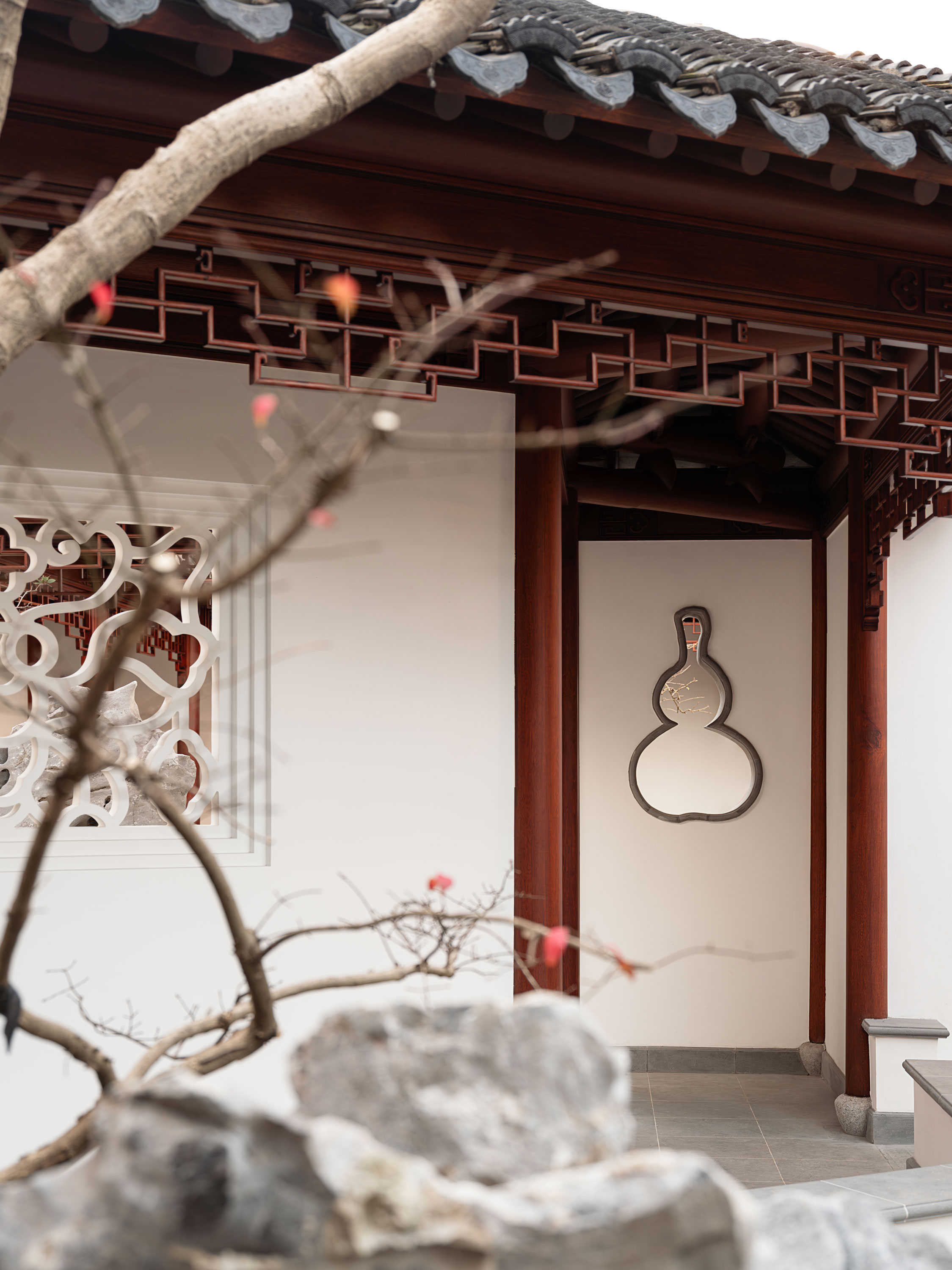 입구에 들어서면 얇은 커튼이 마치 반투명한 선지(宣紙)의 역할을 한다. 햇빛이 화가가 되어 공간을 그려내고, 처마의 그림자가 잉크처럼 번지며 실내는 부드러운 긴장감으로 채워진다. 장하이화는 전통 모티프를 직접적으로 사용하는 대신 선, 재료, 빛의 흐름을 조율해 강남의 미학을 현대적으로 해석한다. 그 결과, 정제되었으나 생동하는, ‘숨 쉬는 집’이 완성된다.