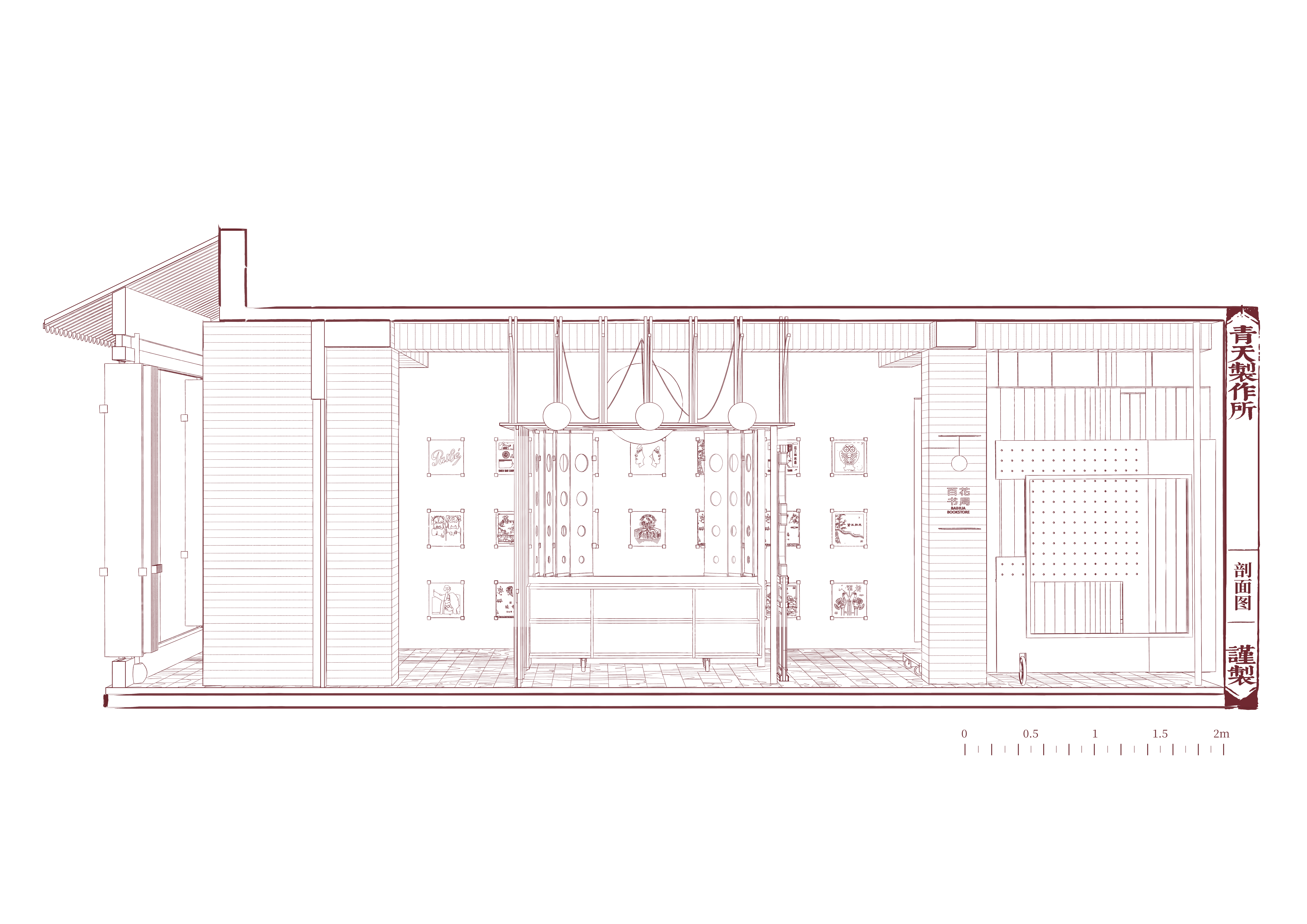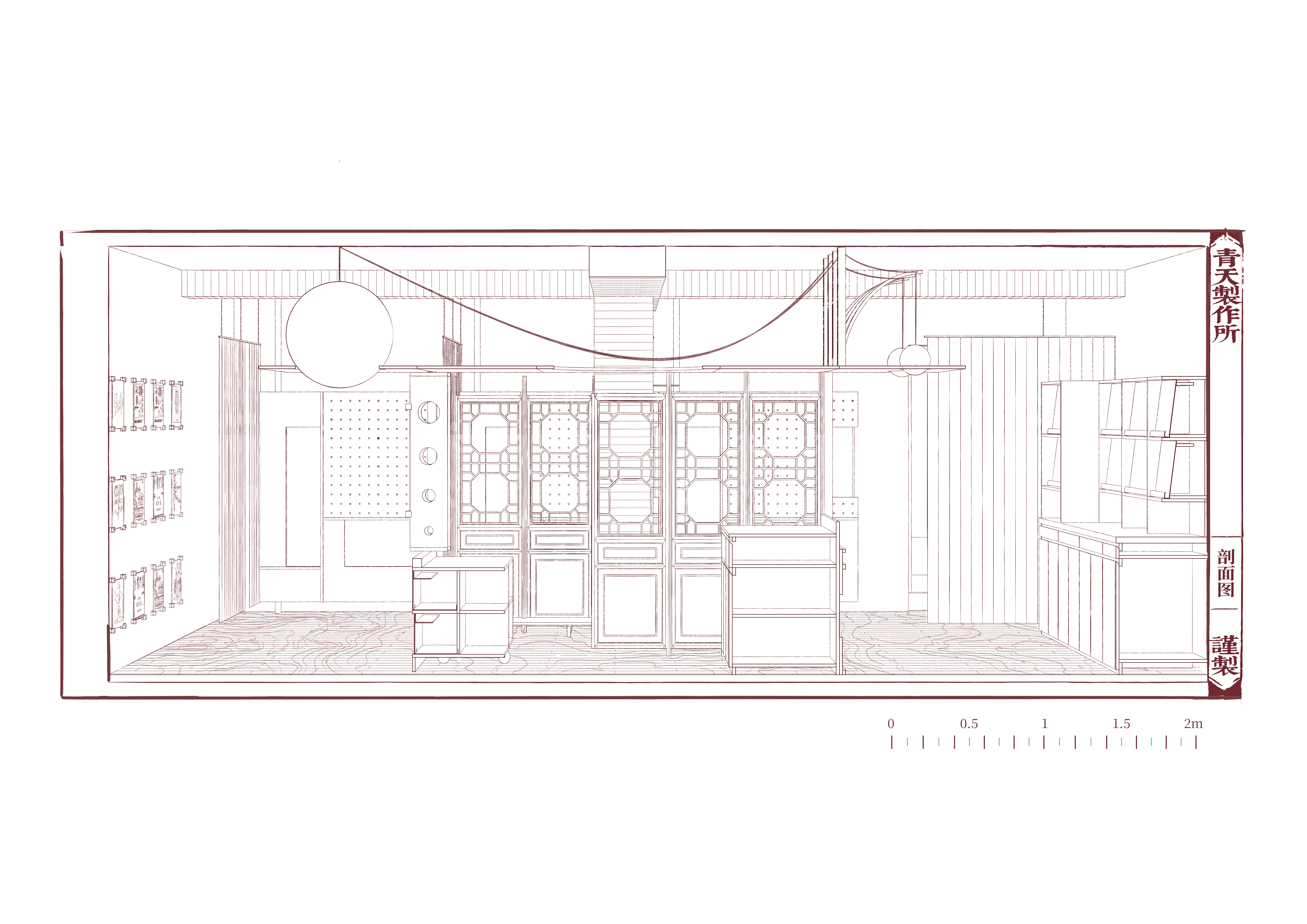 디자인의 출발점은 박물관 소장품 중 하나인 ‘당밍단’—중국 남방 지역의 전통 오페라가 이동공연에 사용하던 휴대식 무대 파사드였다. 이 장치는 가벼운 구조, 조립과 해체가 가능한 구성, 이동을 전제로 한 유연성이 특징이다. 본 프로젝트는 당밍단의 형식을 모방하는 대신, 그 구조적 사고방식을 현대적 공간 장치로 번역한다. 서점의 중심에는 약 7㎡ 규모의 새로운 당밍단을 배치했다. 네 개의 서로 다른 재료를 사용한 파사드가 상징적 경계를 형성하며, 책방 내 다양한 프로그램(전시, 낭독회, 소규모 공연)을 유연하게 수용하는 핵심 장치로 작동한다.