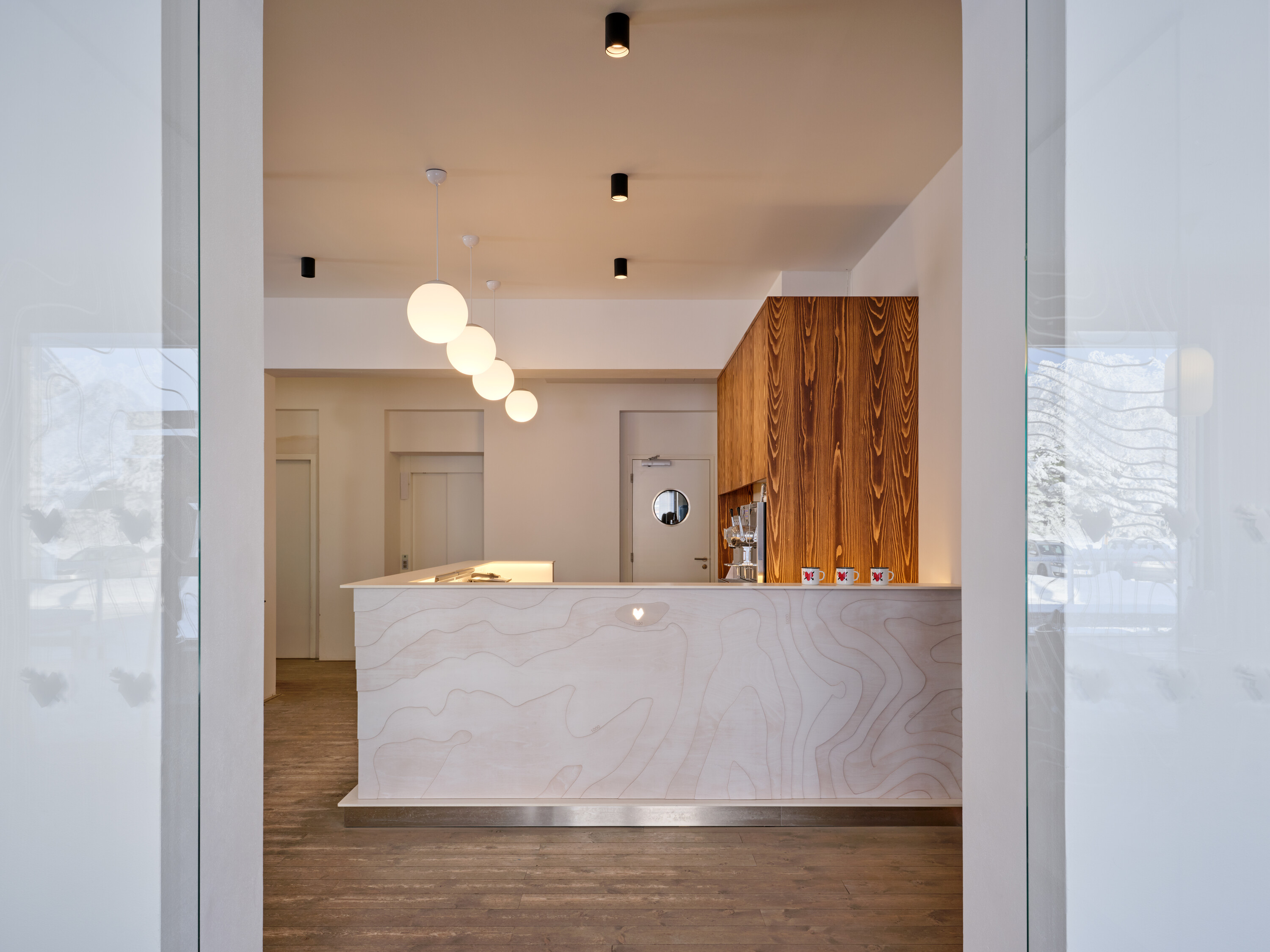 외장 재료로 선택된 무처리 낙엽송(larch)은 지역 전통에서 비롯되었으며, 장기간 풍화되며 자연스럽게 짙어지는 특성 덕분에 시간이 지날수록 주변 산악 풍경과 조화를 이루게 된다. 이는 과거의 호르엑 호텔이 마을 경관에 스며들었던 방식과도 맞닿아 있다.