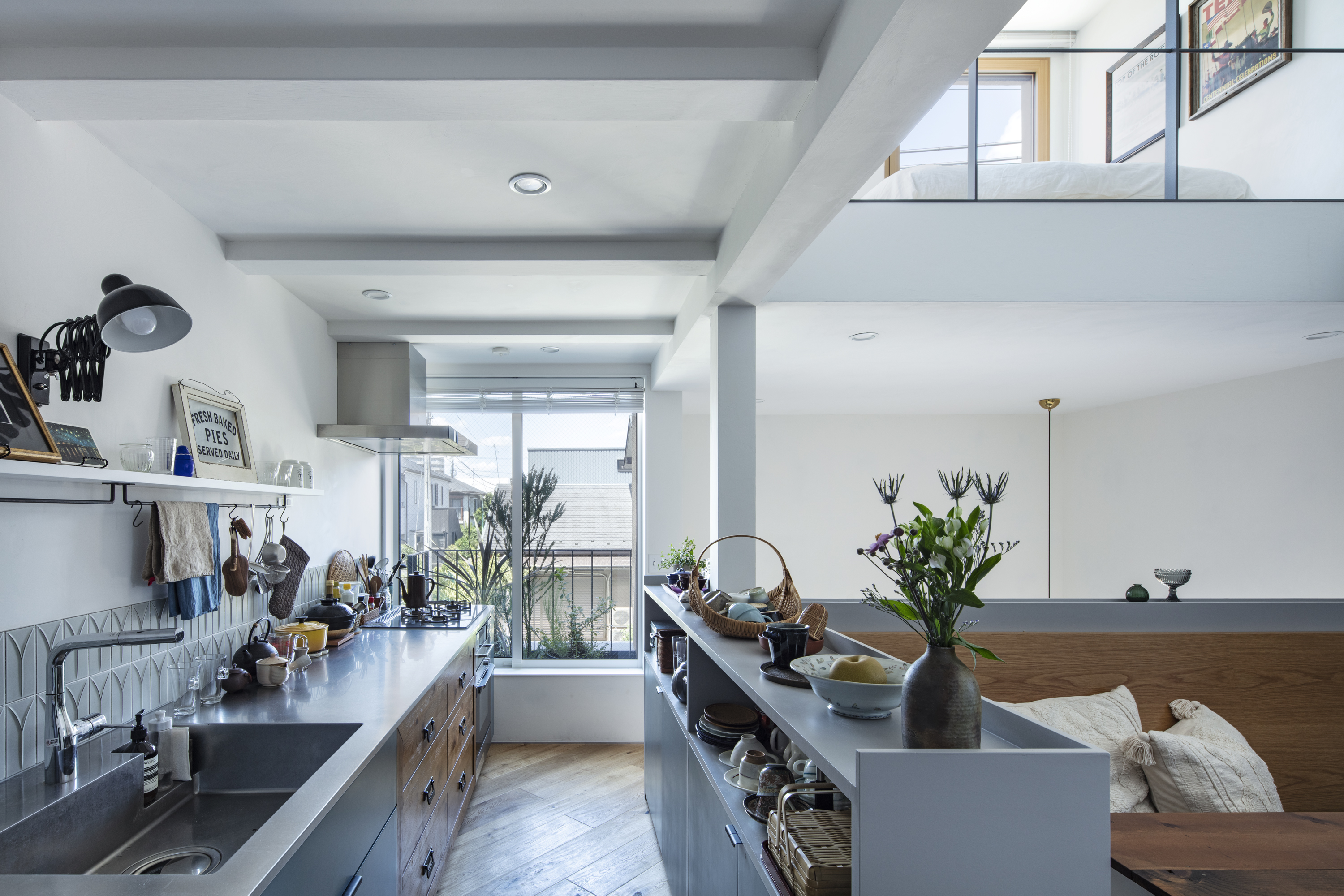 이 집에는 부부의 시간이 고스란히 스며 있다. 미국에서 사용하던 빈티지 가구를 새로운 공간에 맞게 재해석해, 대형 선반은 주방 카운터의 일부로, 콘솔 테이블은 세면대 하부장으로 다시 사용했다. 오래된 목재의 질감은 공간에 깊이를 더하고, 예술 작품과 책, 소장품들은 장식이 아닌 생활의 일부로 자연스럽게 배치되었다.