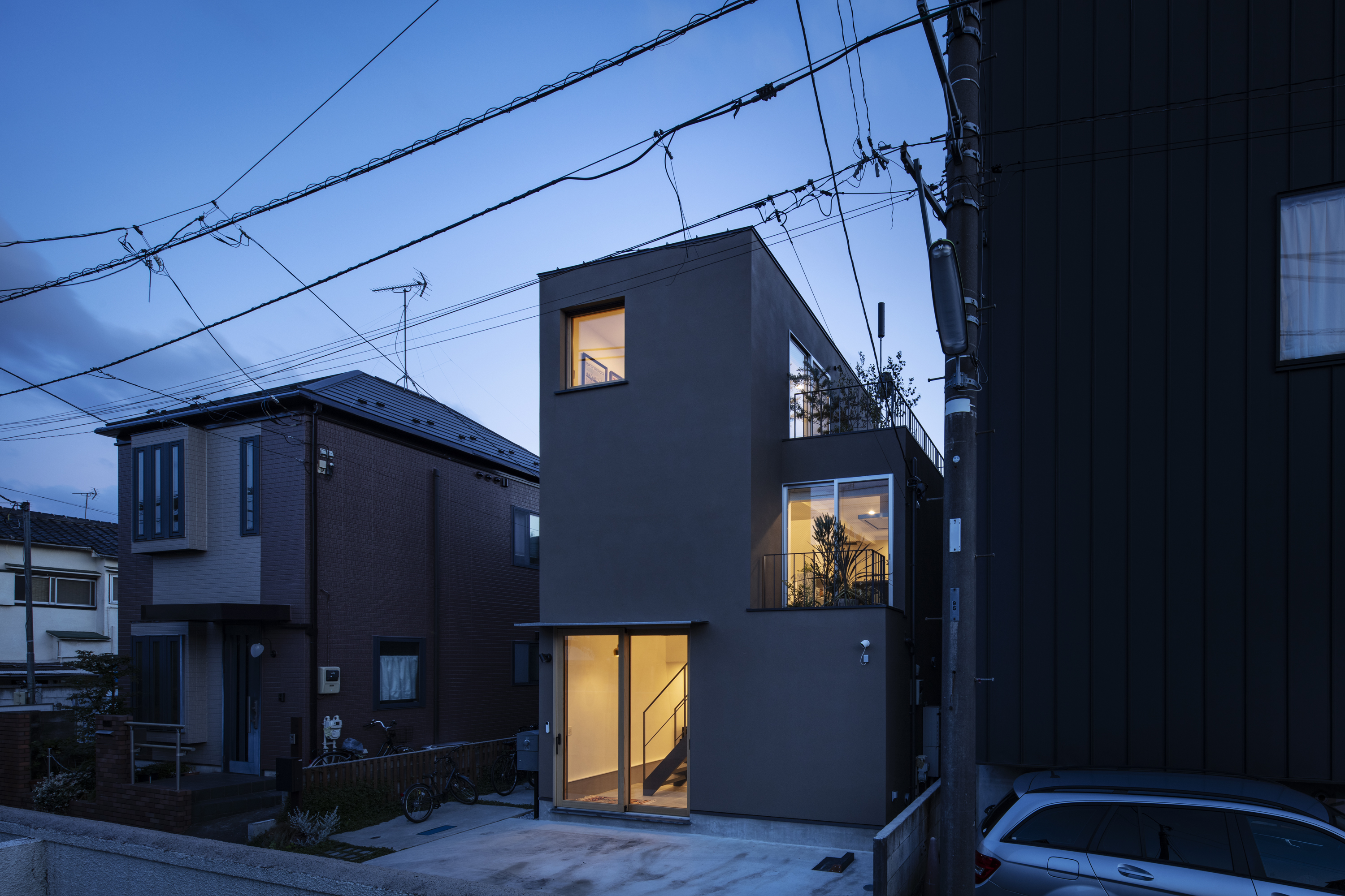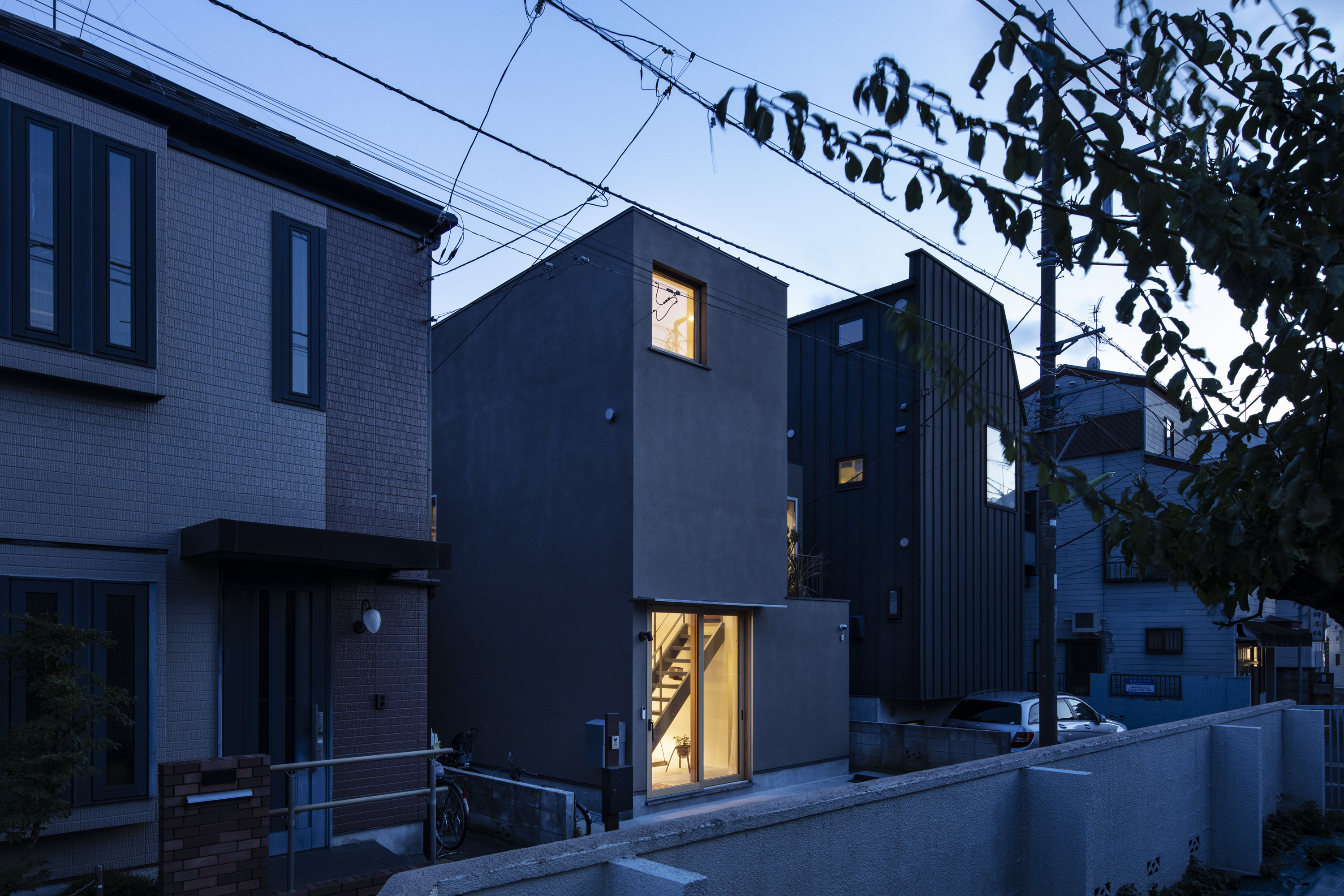 도심 한가운데, 조밀한 주거지 사이에 자리한 이 집은 한 쌍의 부부를 위한 주거 공간이다. 대지는 삼면이 인접 건물로 둘러싸인 북향의 조건을 지니고 있으며, 평면과 단면 모두에서 공간적 제약이 분명한 상황이었다. 이 주택은 이러한 한계를 수평적 확장이 아닌 수직적 연속성으로 풀어내며, 도심 속에서도 여유롭고 흐름 있는 생활 공간을 만들어냈다.