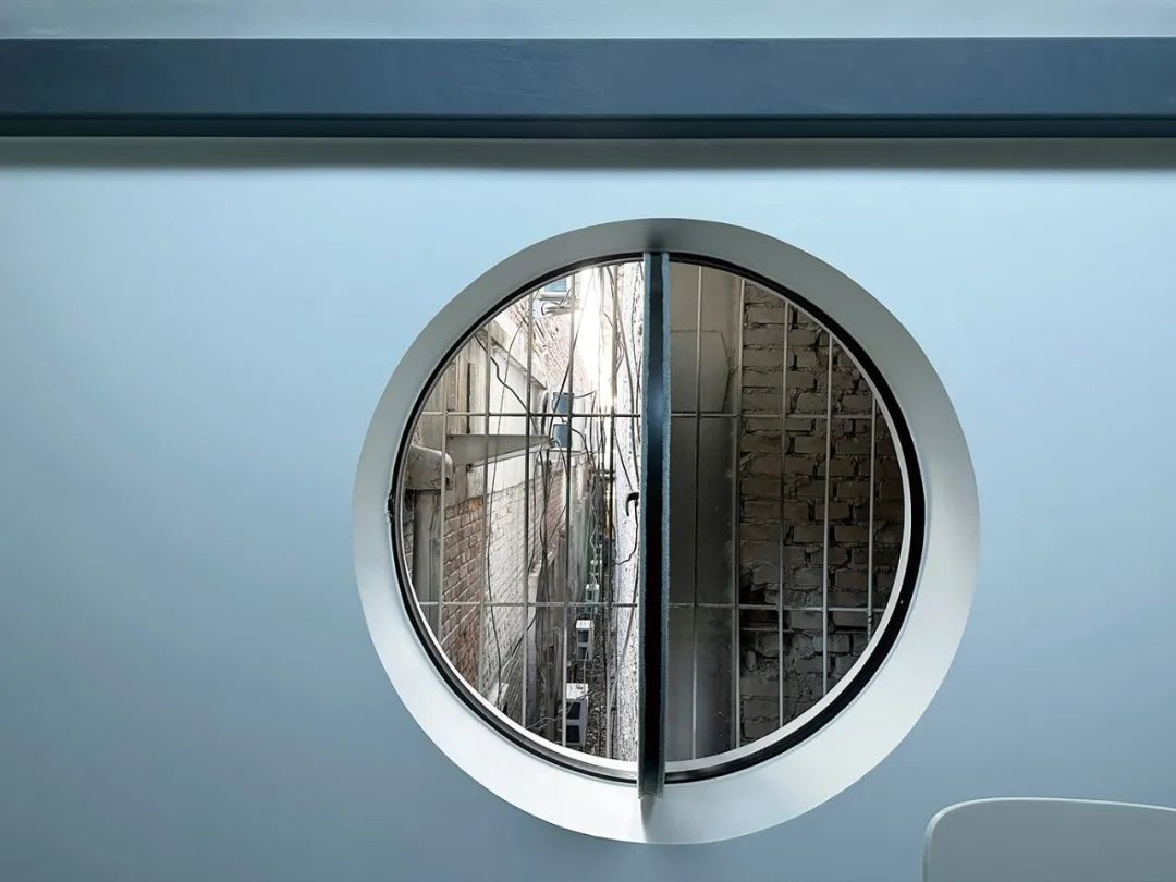 리노베이션 과정에서는 기존 구조의 물성을 최대한 유지하려는 태도가 일관되게 적용되었다. 접힌 콘크리트 지붕의 내부 면, 노후된 기둥, 중정을 향한 벽돌 외벽 등이 그대로 노출되었다. 반면 일부 벽면은 철거 과정에서 손상되어 마감이 불가피했고, 완전한 정밀함보다는 재료가 가진 흔적과 불완전함을 수용하는 방향이 선택되었다. 콘크리트의 거친 표면은 손으로 연마되었고, 철재는 일부러 녹을 낸 뒤 흑색 처리되었다.