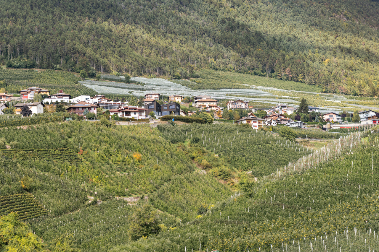 발 디 논은 사과 재배지로 잘 알려진 지역으로, 산타 주스티나 호수 주변에 펼쳐진 완만한 과수원 지형과 브렌타 돌로미티 산맥을 배경으로 한 풍경이 특징적이다. 유네스코 세계유산으로 등재된 이 산악 경관 속에서 주택은 완만한 경사지 위에 자리 잡고 있으며, 주변에는 목조 지붕과 흰 회벽 마감의 전통 주택들이 점점이 흩어져 있다.