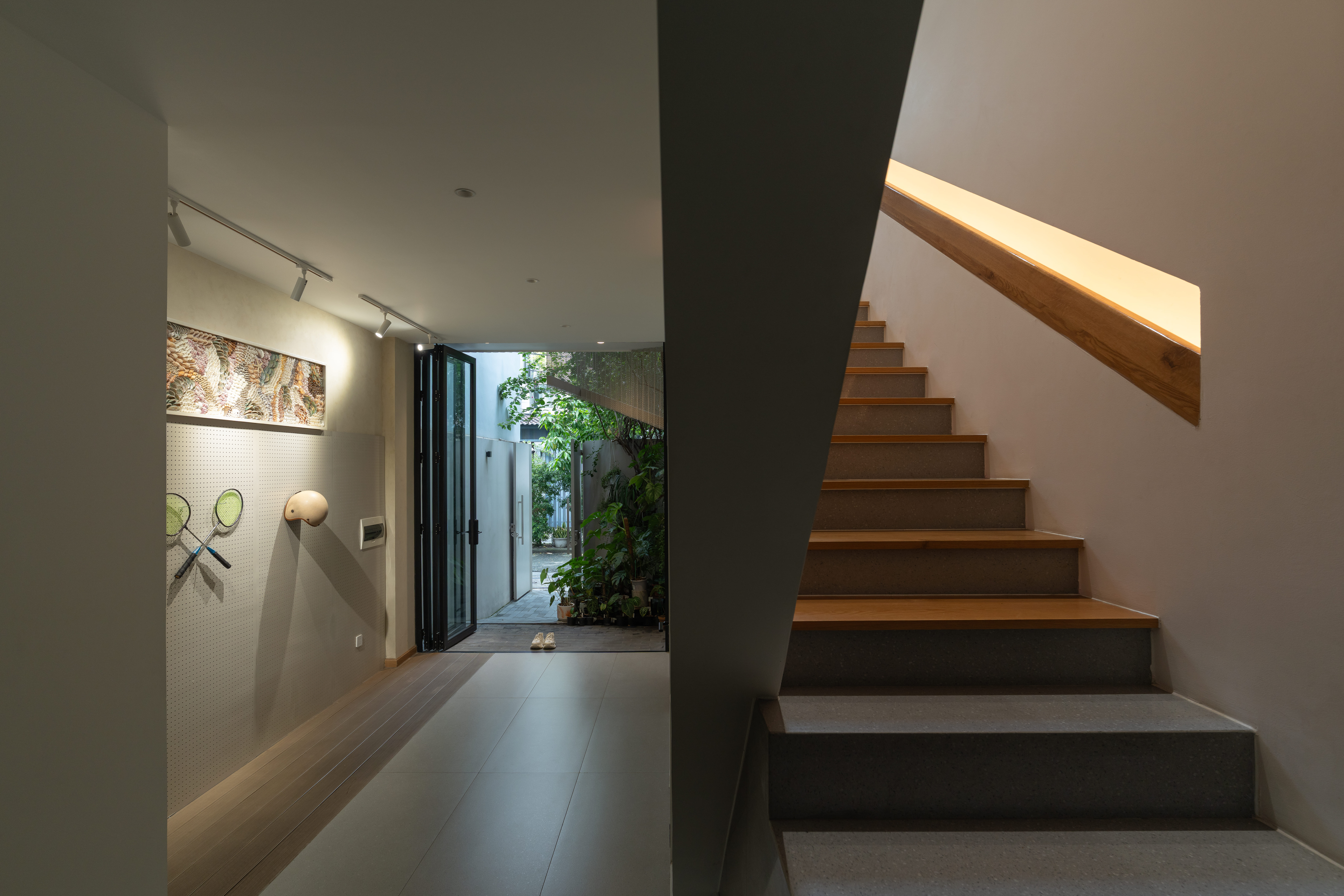 주택은 스플릿 레벨 구조를 기반으로 하여 공간의 연속성과 자연 환기·채광을 강화했다.