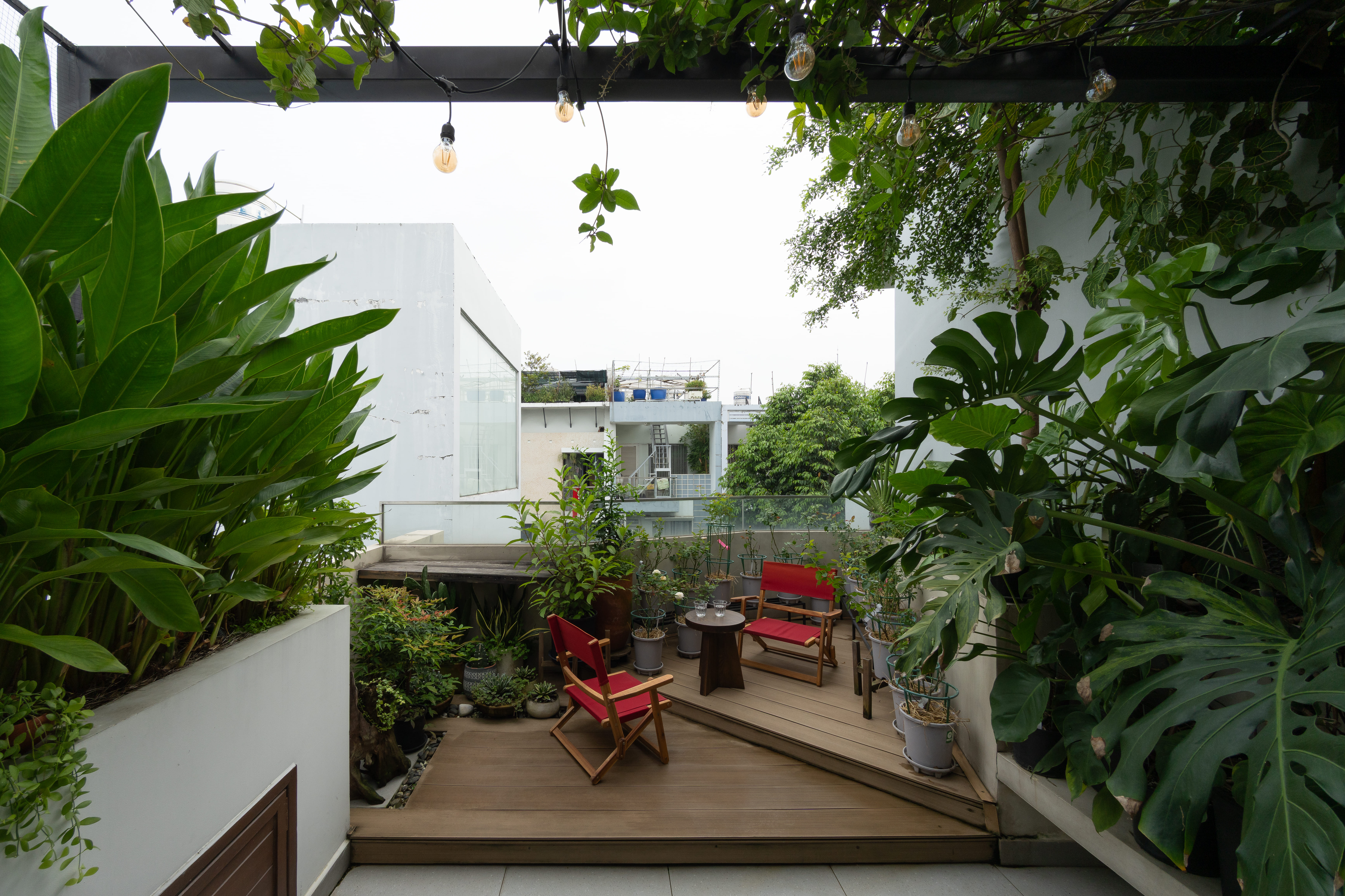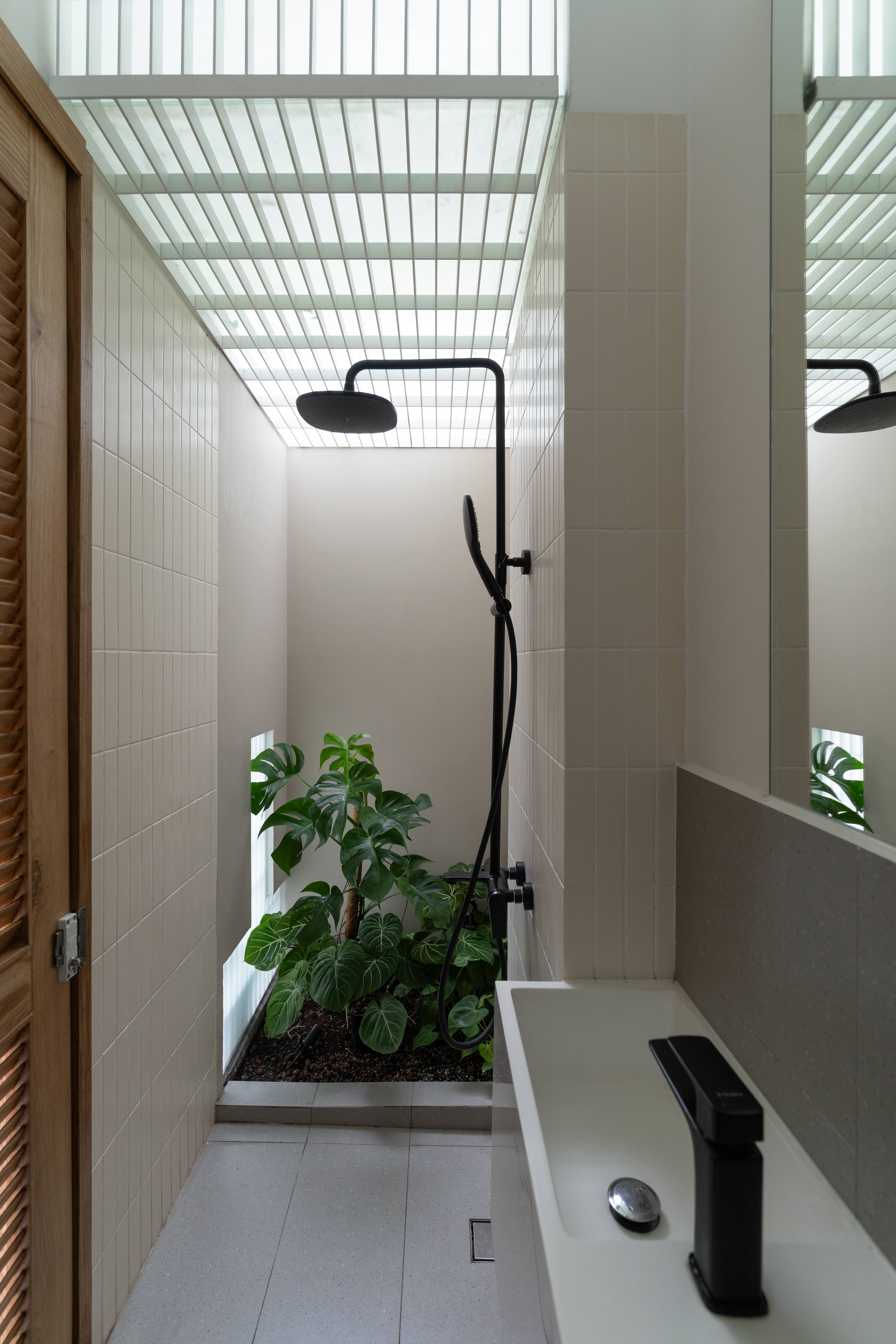 • 옥상은 반외부 욕실과 넉넉한 식재 공간을 갖춘 휴식의 장소로, 식물을 사랑하는 건축주의 취향이 반영된 공간이다.
