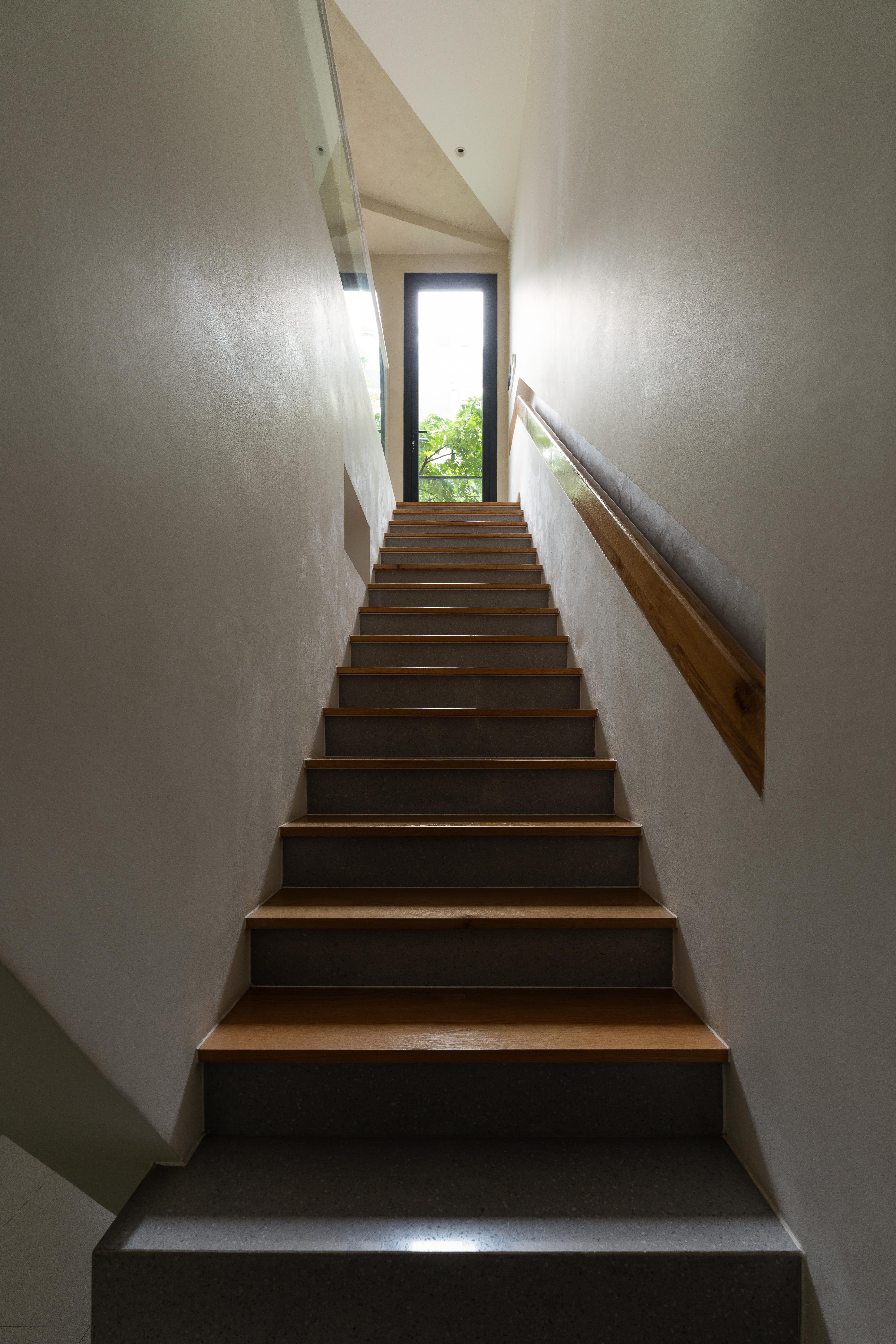 주택은 스플릿 레벨 구조를 기반으로 하여 공간의 연속성과 자연 환기·채광을 강화했다.