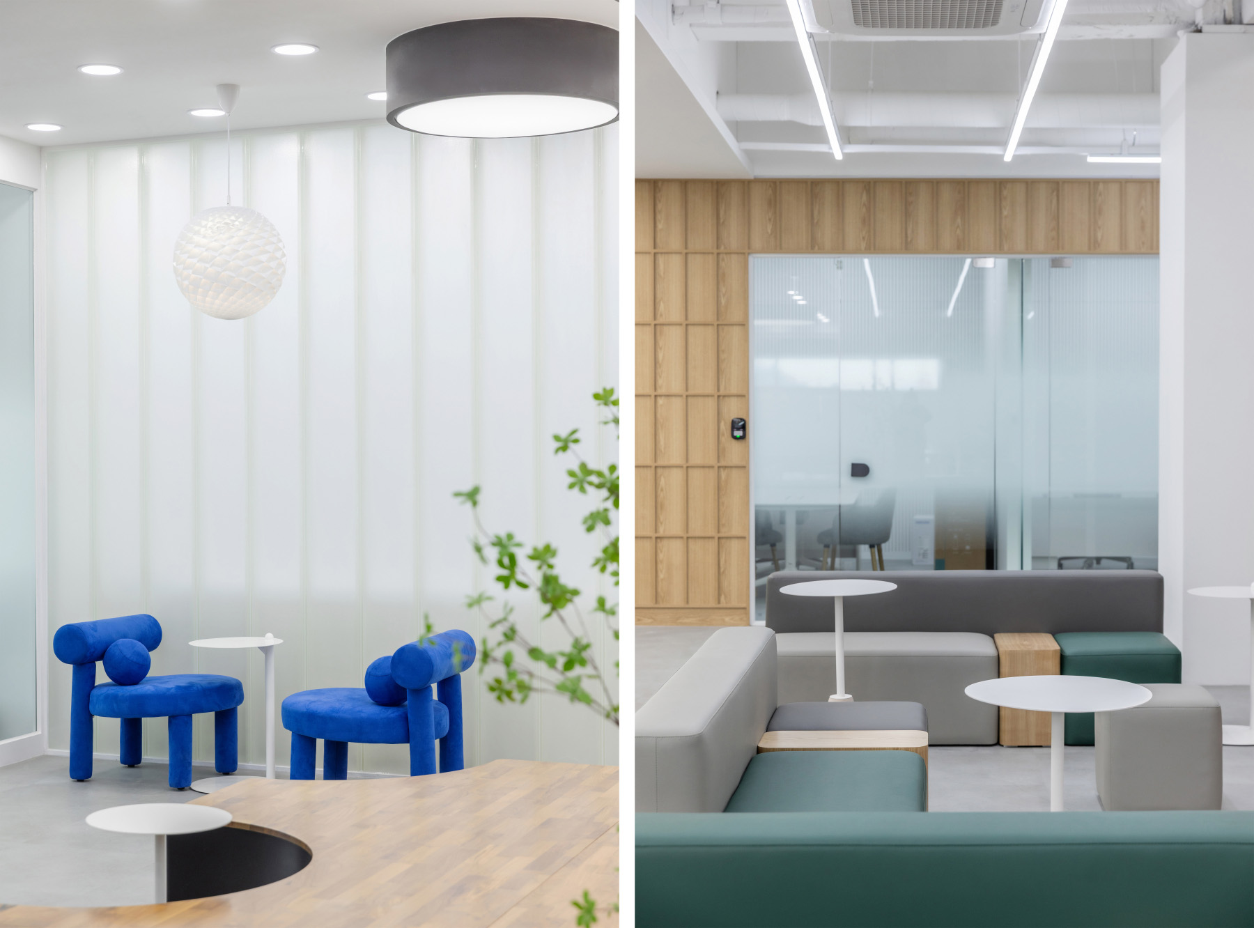 기존에 단순한 통과 공간에 그쳤던 1층 메인 홀은 벽체를 철거하며 하나의 넓은 개방형 라운지로 통합되었다. 이 공간은 성격에 따라 세 가지 라운지로 구성된다.