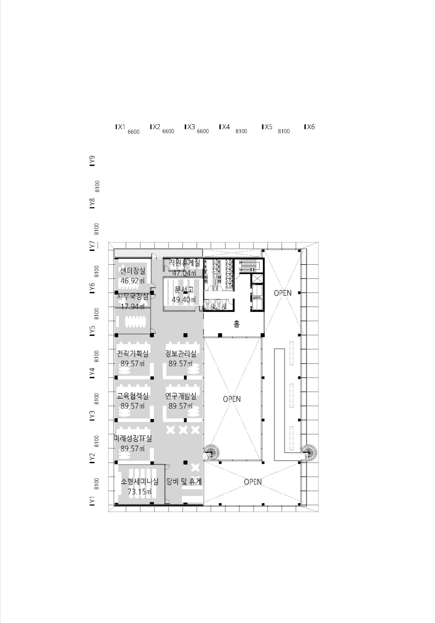 업무와 전시, 두 영역으로 분리된 건물의 중심에 공용공간과 중정을 확보하여 영역별 기능에 맞는 독립적인 평면을 가지면서 유기적인 공간 활용이 가능하도록 계획하였습니다. 2층의 업무영역은 서측의 근린공원과 중정을 마주하며 사용자들에게 쾌적한 업무환경을 제공하고, 1층의 전시영역(라키비움)은 전면의 넓은 광장을 마주하며 높은 층고로 방문객들에게 개방된 공간을 선사합니다.