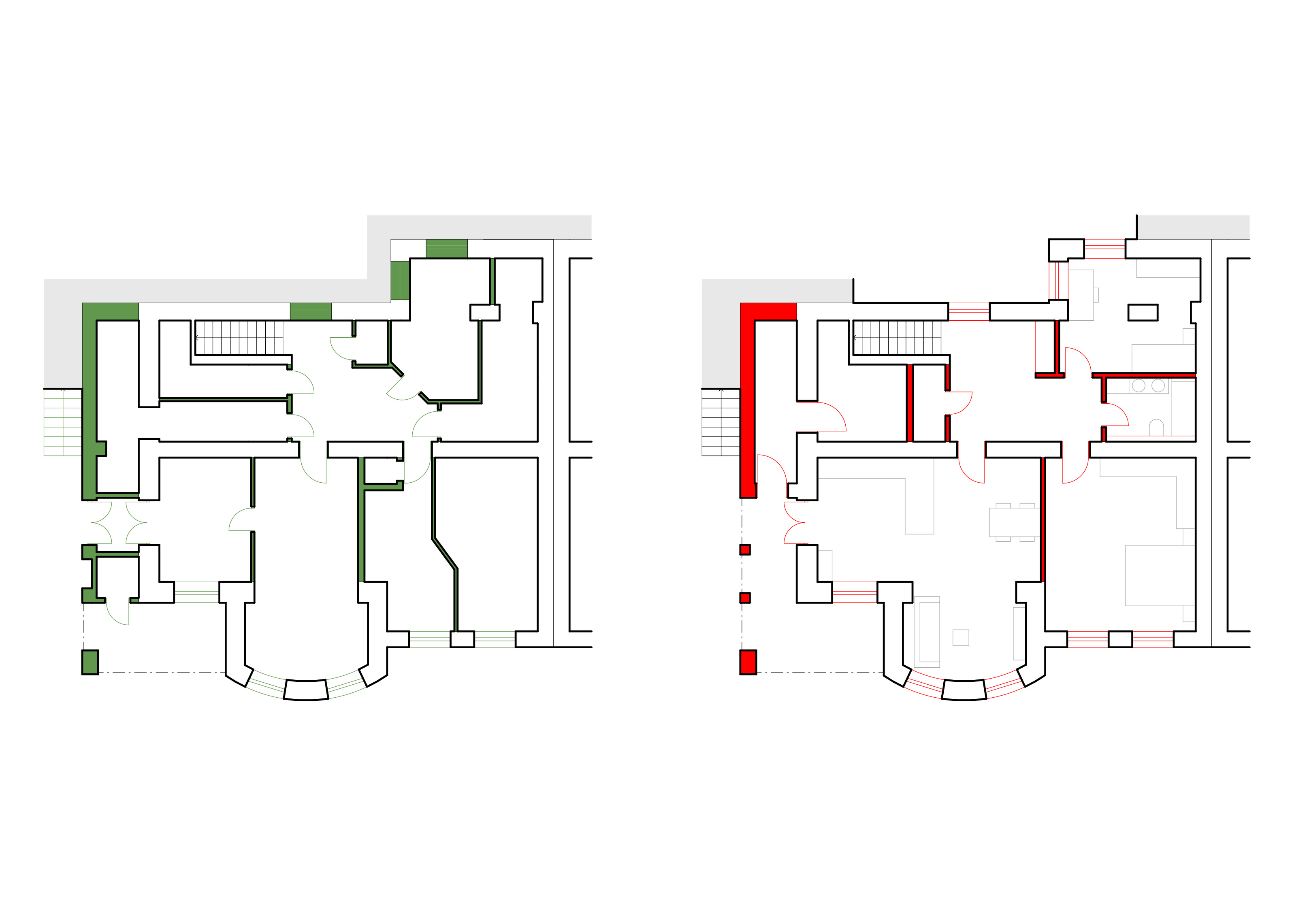 기존 테라스 상부에 증축을 요청한 클라이언트의 요구는 긴 논의 끝에 절제된 방식으로 반영되었다. 증축부는 기존 매스를 해치지 않으면서도, 코니스의 생략이나 다락층에서 후퇴한 옥상 접근부 등 현대적 개입임을 드러내는 요소를 통해 신구의 차이를 분명히 했다.