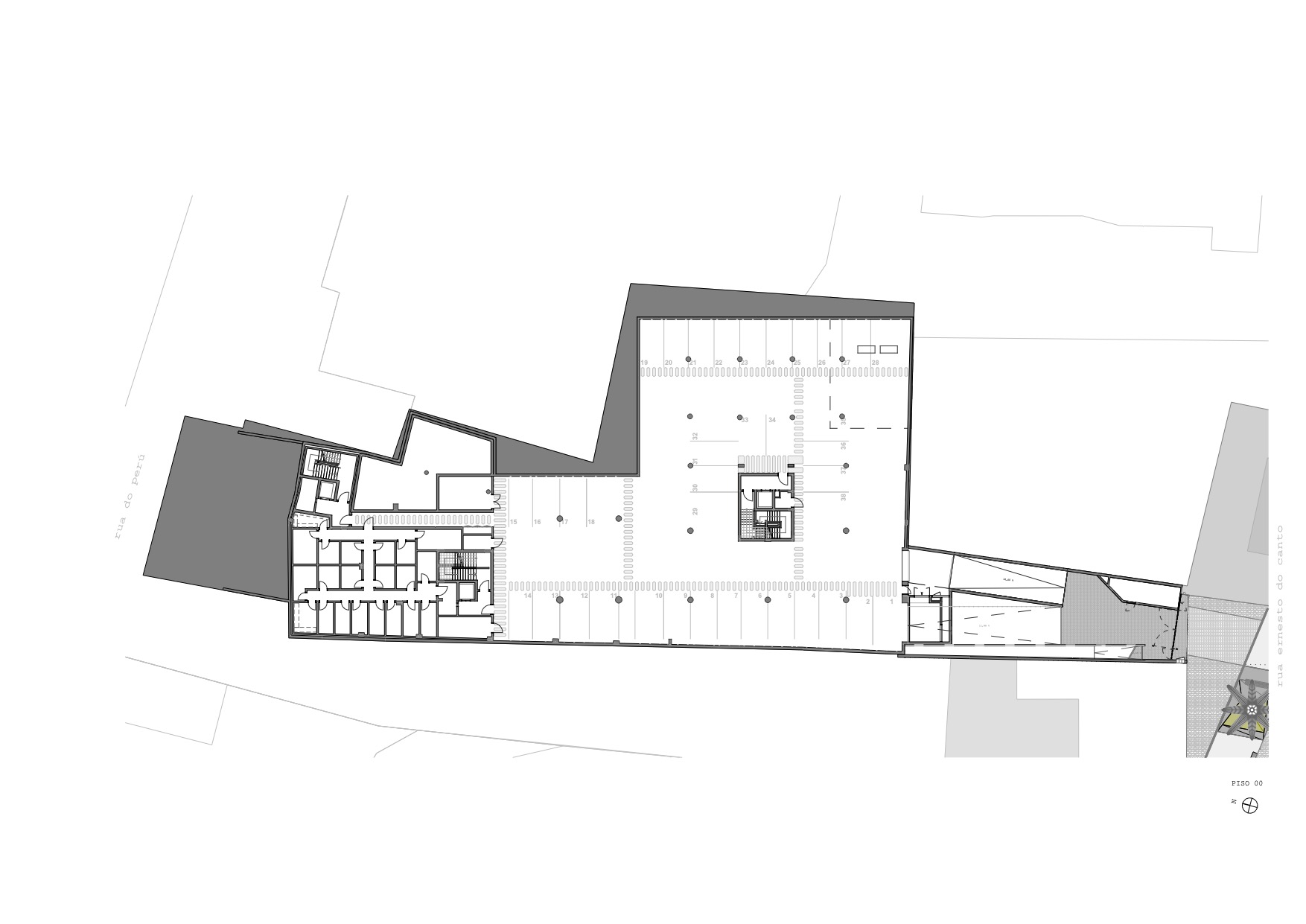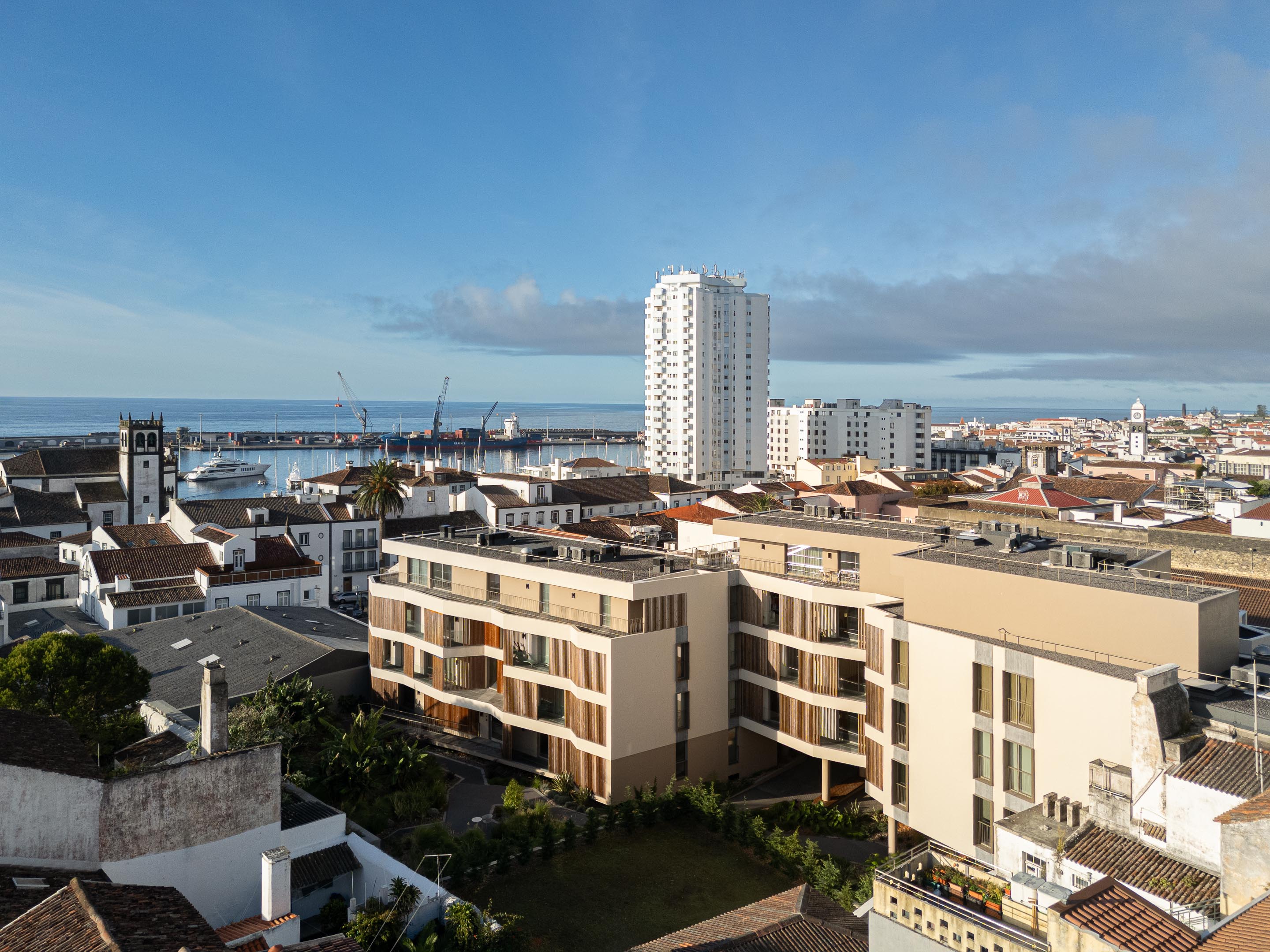 포르투갈 아소르스 제도 폰타델가다의 상 페드루 지역에 위치한 Ernesto do Canto는 밀도 높은 도시 맥락 속에서 주거 블록이 도시와 관계 맺는 방식을 재해석한 공동주택 프로젝트이다. 이 건물은 서로 마주한 두 개의 대지를 점유하며, 각기 다른 도시 경계면을 사이에 두고 배치된다. 설계는 이 두 대지 사이의 뚜렷한 레벨 차이를 적극적으로 활용하는 데서 출발했다.