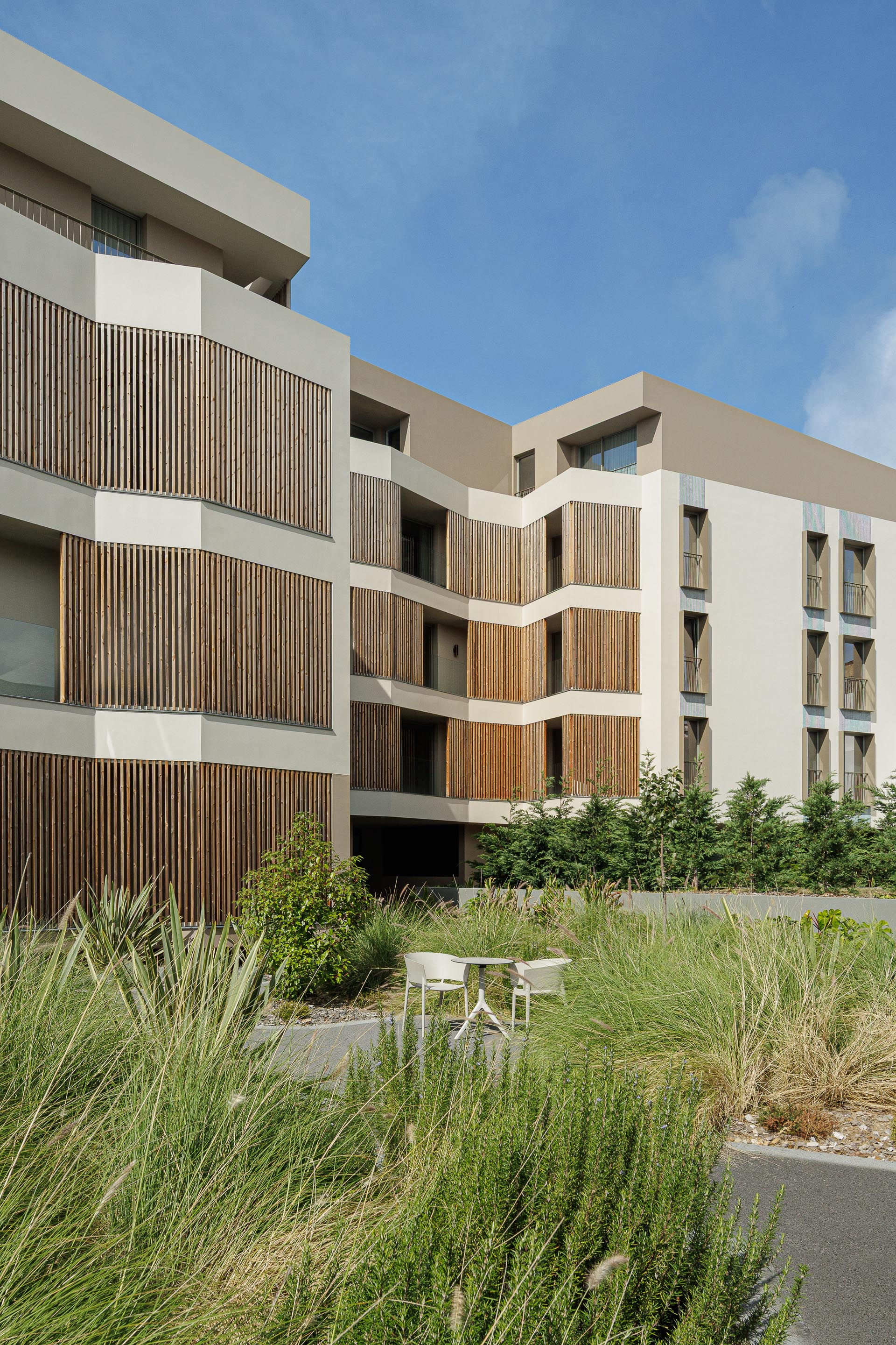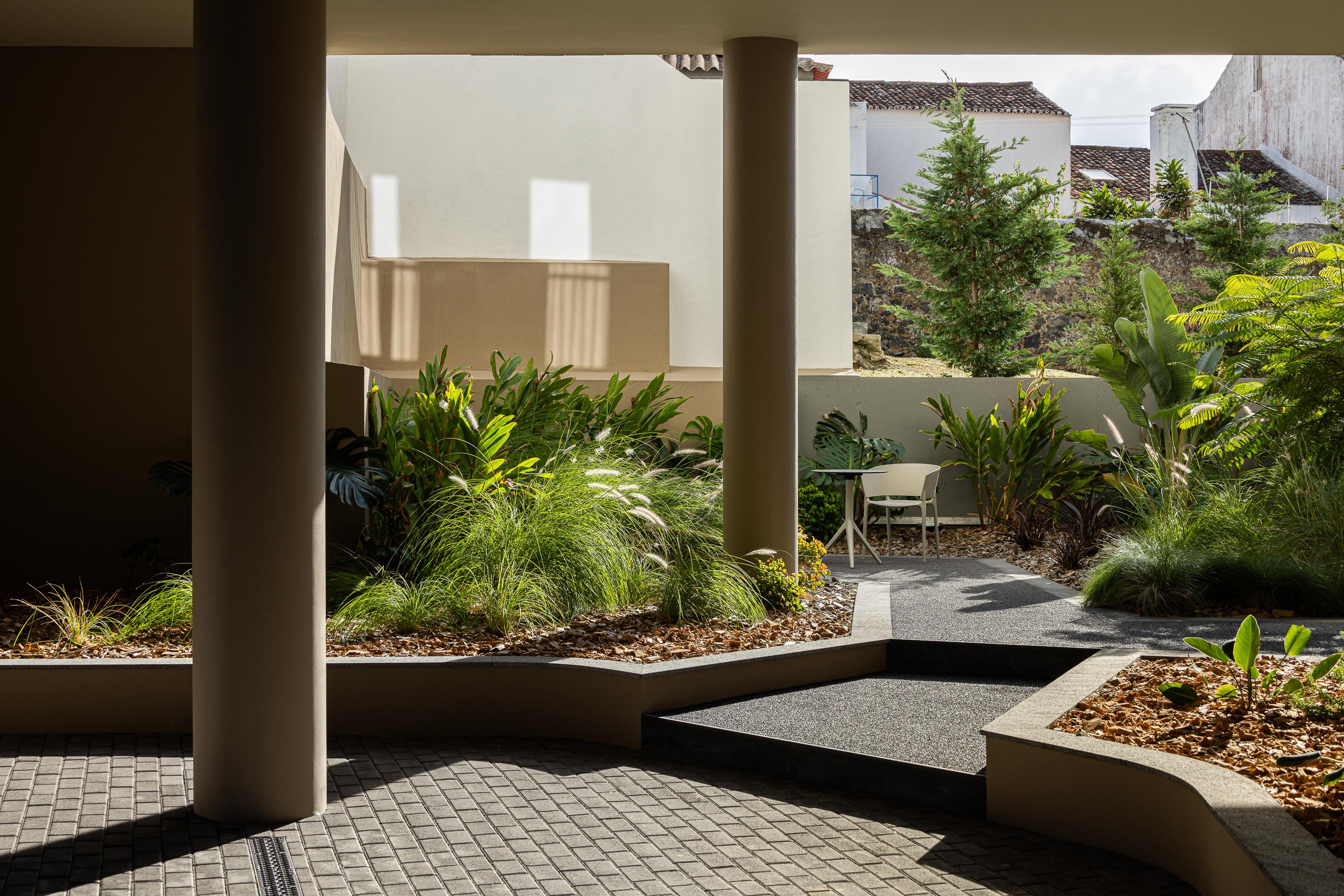 Ernesto do Canto는 외부를 향해 과시적으로 열리기보다, 스스로를 향해 조직된 구조를 취한다. 내부에는 정원과 휴식 공간, 보행 동선이 촘촘히 얽혀 있으며, 이는 ‘외부를 사는 주거’라는 개념을 실질적인 공간으로 구현한다. 건물과 도시 경계면 사이에는 세심하게 조율된 완충 공간이 놓여, 주변 환경에 과도하게 개입하지 않으면서도 명확한 도시적 존재감을 형성한다.