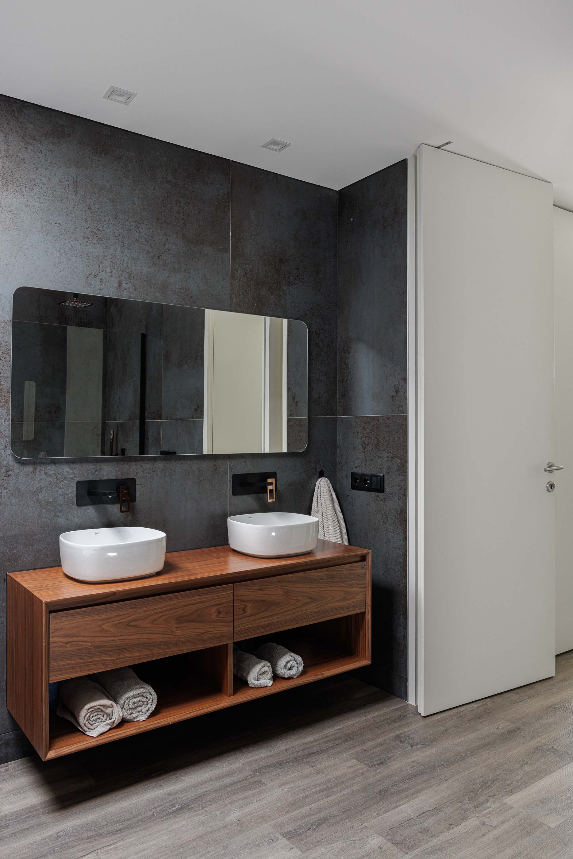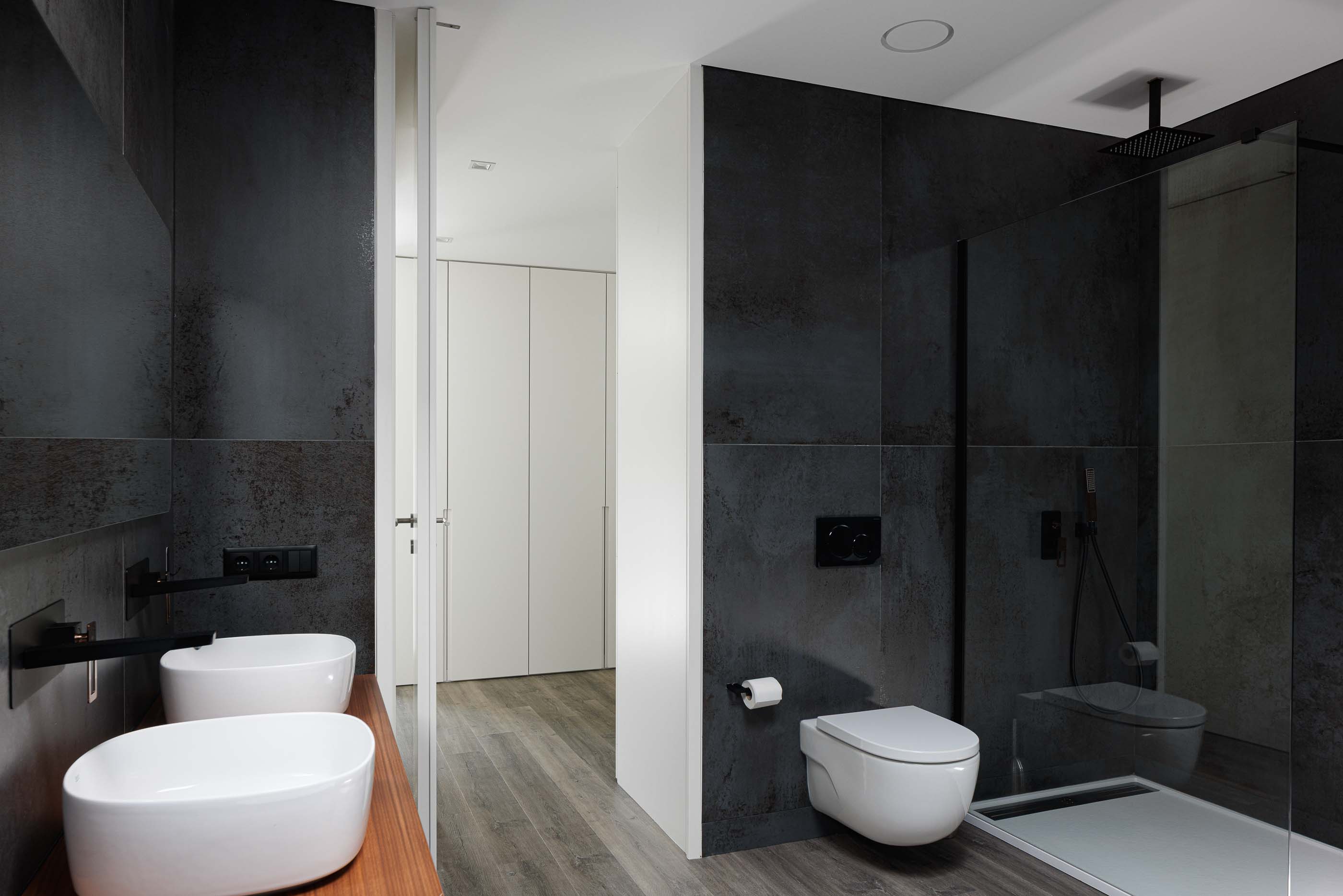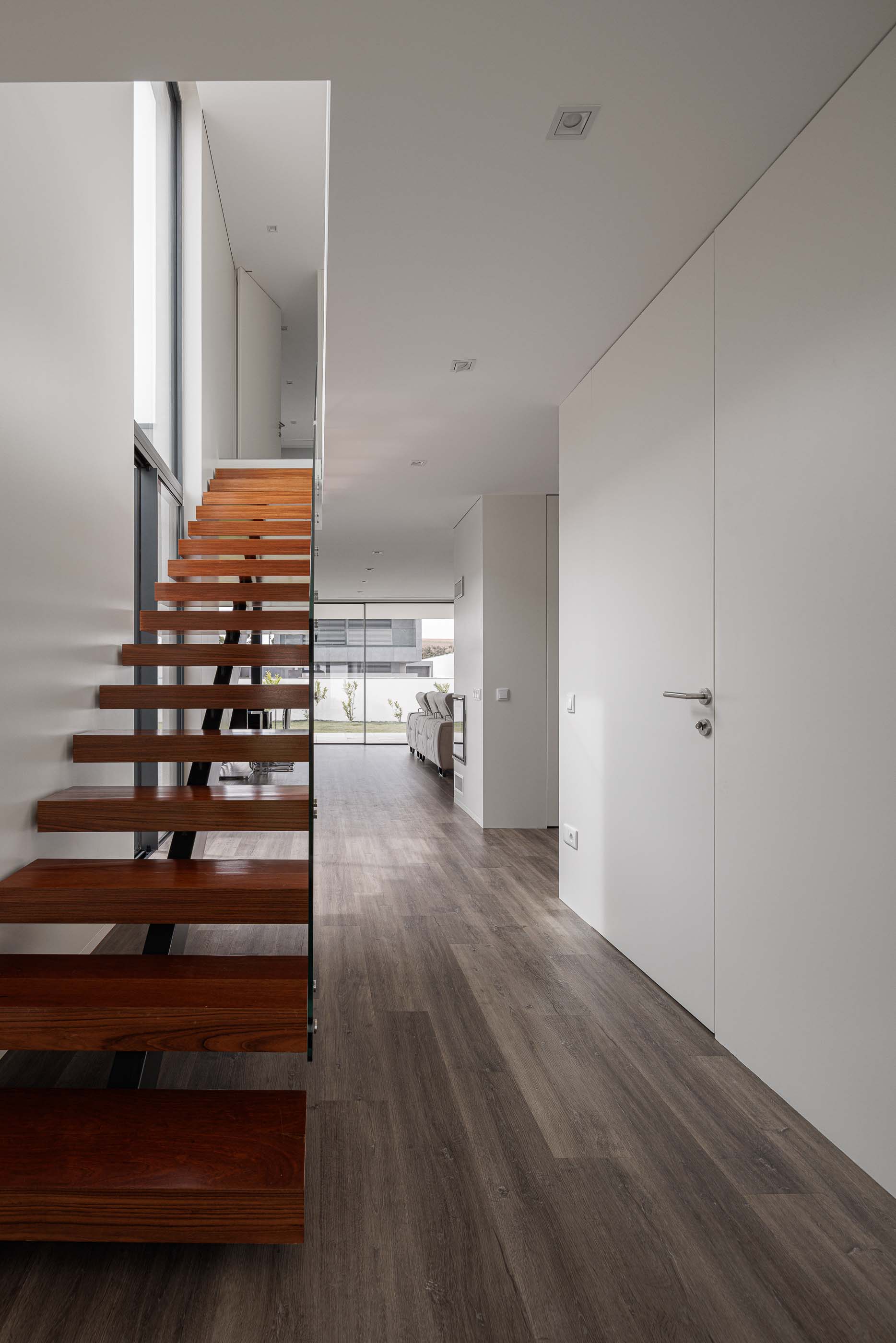 상부층에는 침실을 비롯한 사적 공간이 배치되며, 세로로 열린 개구부를 통해 형성된 종단 갤러리가 두 개의 층을 시각적으로 연결한다. 이 수직적 연결은 공간에 개방감과 밝기를 더하고, 각 실에는 발코니와 후퇴 공간을 두어 사생활을 보호하면서도 자연광을 충분히 끌어들인다.