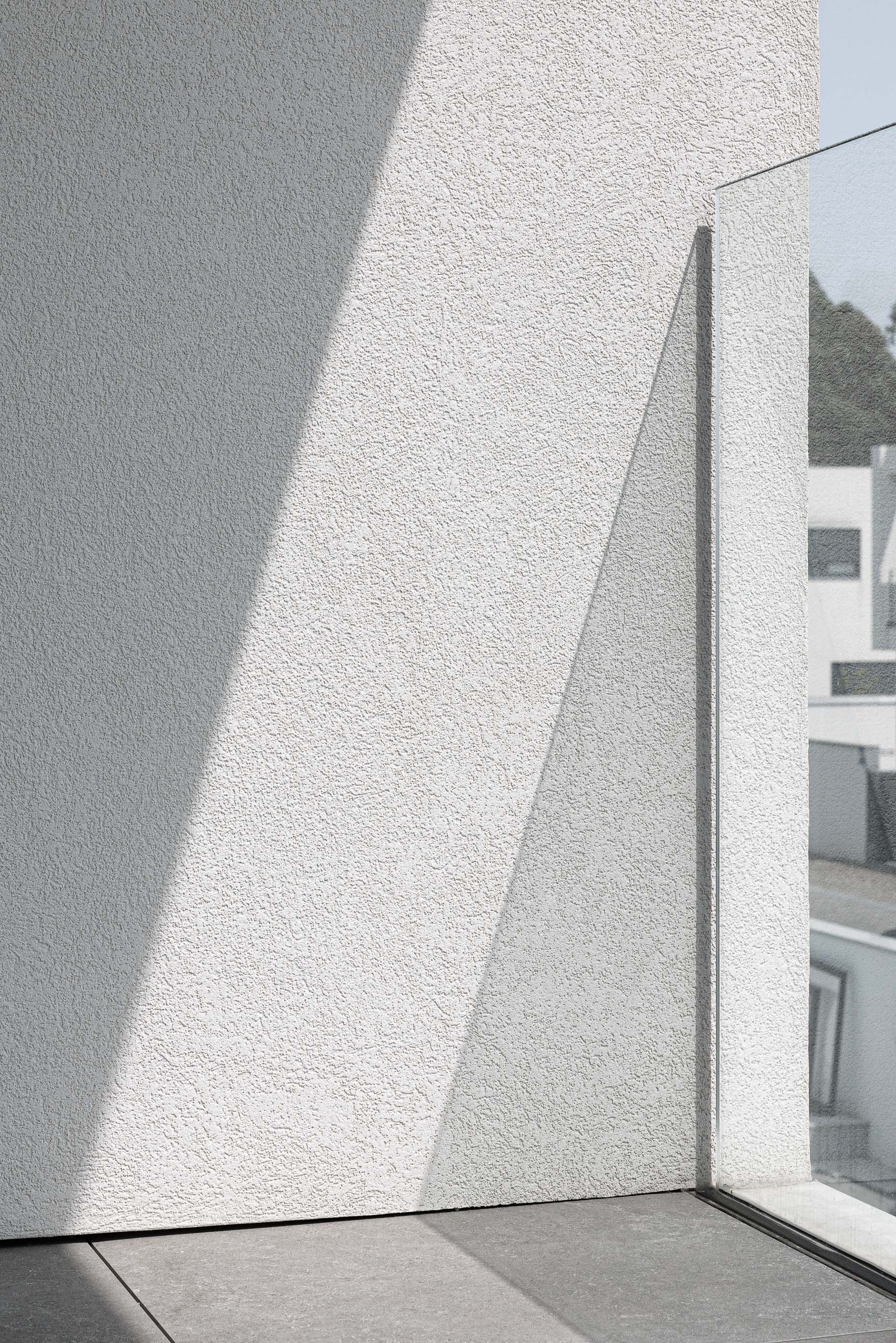 남측 파사드는 이 주택의 정체성을 가장 분명하게 드러낸다. 크게 돌출된 상부 매스는 강한 인상을 남기며, 스위트룸 벽체의 미세한 기울기는 빛을 보다 효과적으로 받아들이는 동시에 파사드에 긴장감을 더한다. 측면 파사드에서는 겹겹이 중첩된 매스와 진입부를 수용하는 절개가 반복되며, 입체적인 볼륨 구성이 강조된다. 반면 북측 파사드는 최소한의 개구만을 가진 거의 닫힌 면으로 처리되어, 내향적인 성격과 형식적 절제를 드러낸다.