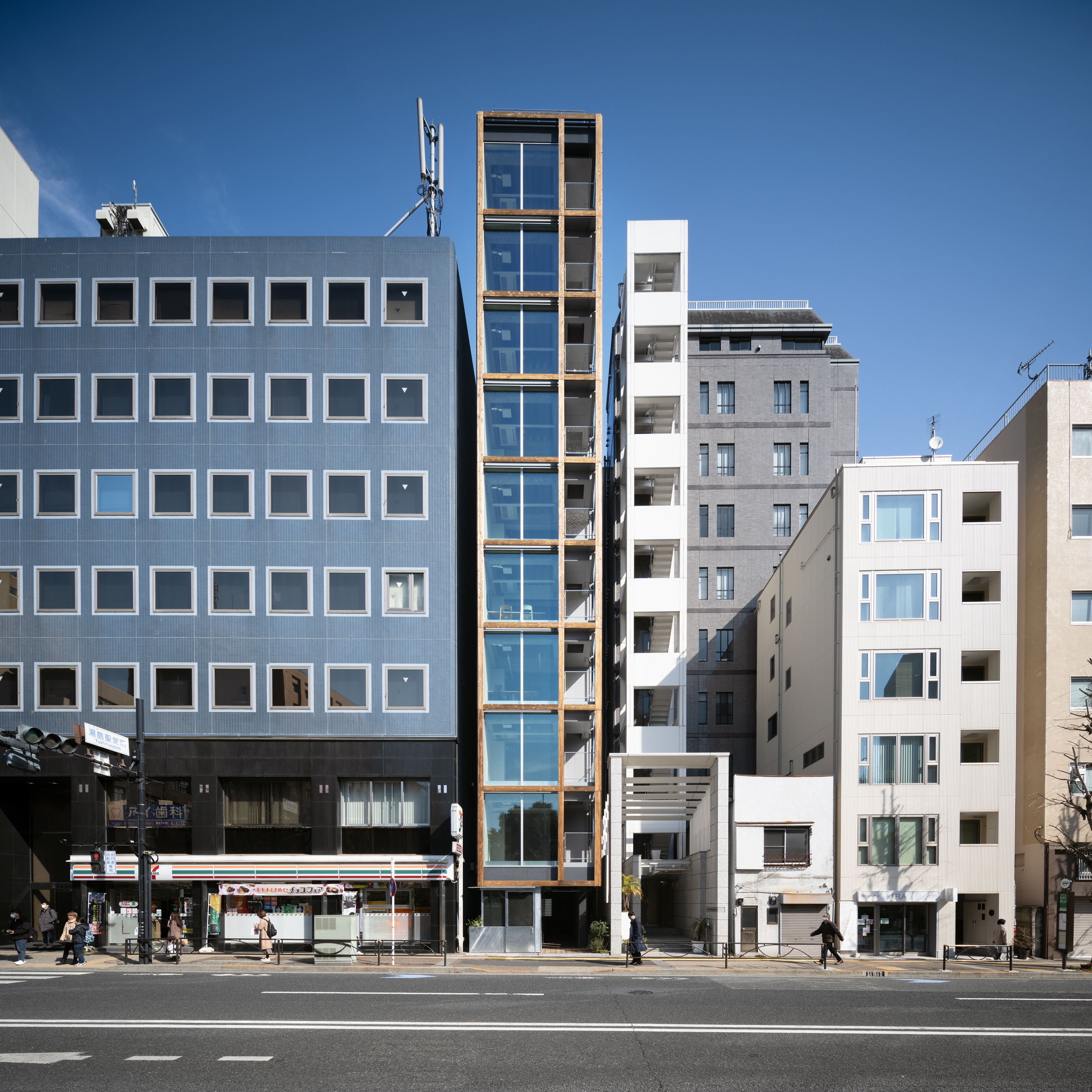 도쿄 도심, 간다묘진 인근이자 나카센도에 면한 이 대지는 정면으로 유시마 세이도를 바라보는 장소에 자리한다. 역사와 문화의 층위가 조용히 교차하는 이곳에 계획된 것은 폭 5.2m, 깊이 14.5m의 협소한 대지 위에 세워진 10층 규모의 펜슬형 오피스 빌딩이다. 밀도 높은 도심 한가운데에서 이 건축이 던진 질문은 명확했다. 주변과 같은 높이의 건물들 사이에서, 어떻게 건물의 윤곽을 부드럽게 흐리며 도시와 관계 맺을 것인가였다.
