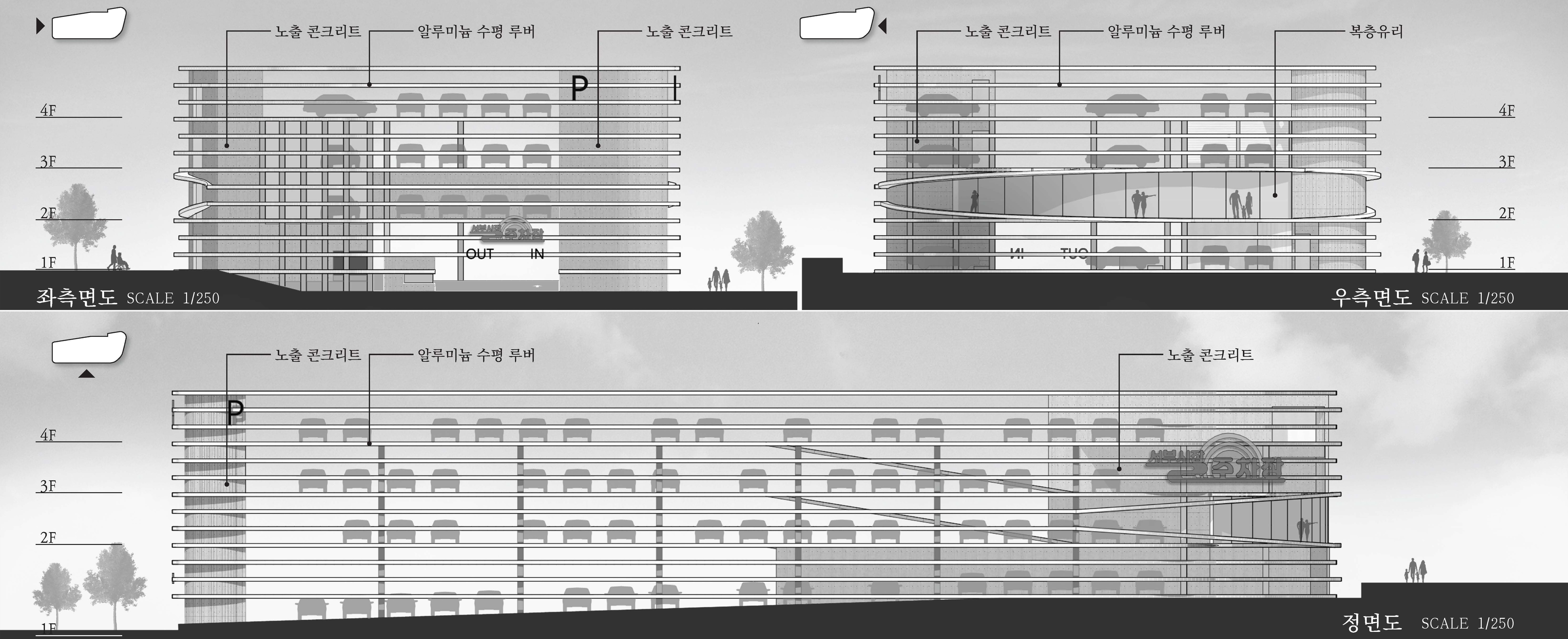 본 계획은 주차장으로서의 기능을 우선하고, 대상지의 높은 주차 수요를 반영하여, 관련 법규에 따른 종류별 법정 주차대수를 충족하는 것을 기본으로 한다. 단순한 주차대수 확보를 넘어, 실제 이용 패턴을 고려한 효율적인 배치와 운영 가능성을 함께 검토하여 주차장의 실효성을 높이고자 했다. 또한 과도한 설계를 지양하고 필로티 등의 면적을 건축면적에 고려하여, 현실적인 설계비와 공사비 산정이 가능하도록 계획하였다.