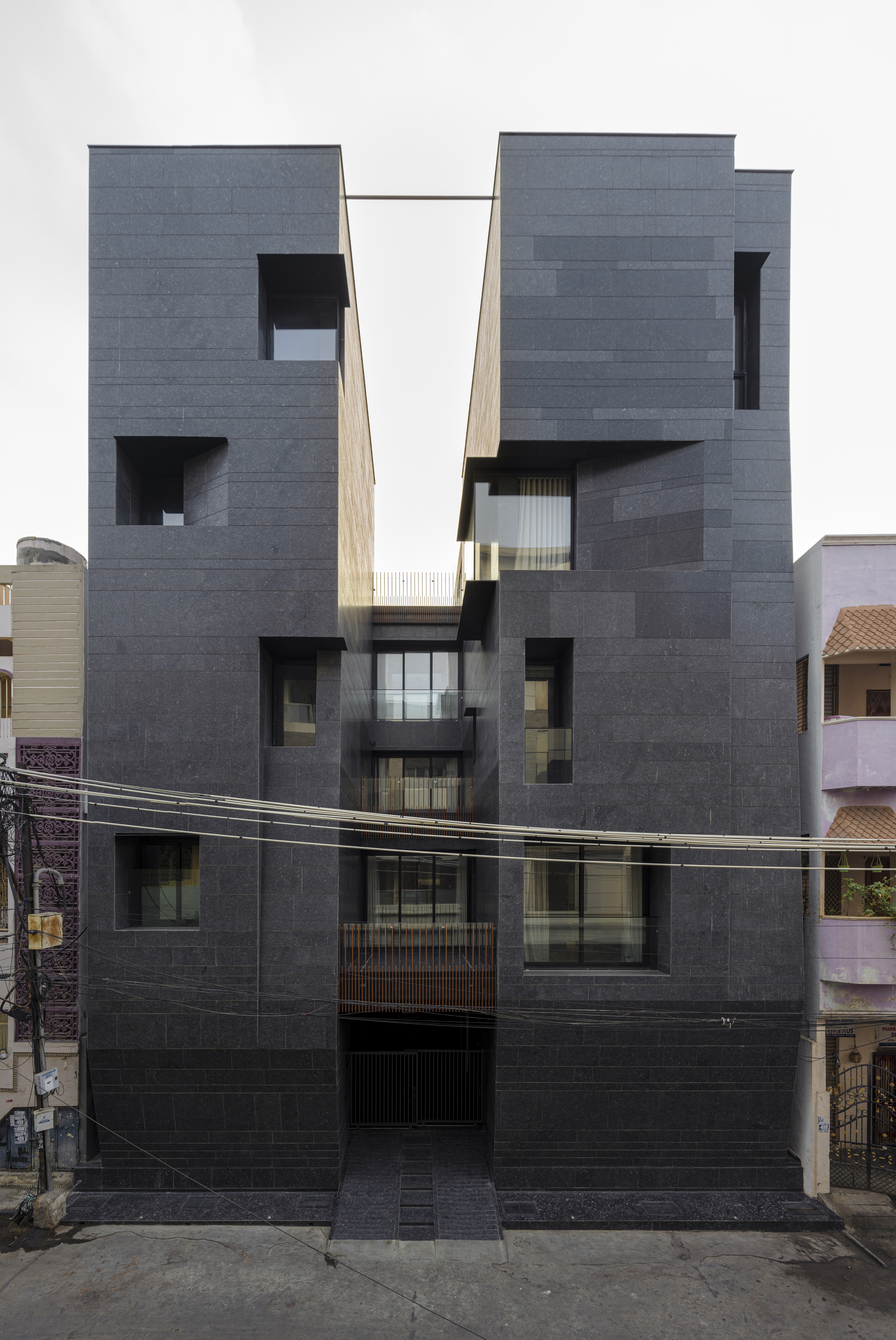 인도 안드라프라데시주 비자야와다의 밀집된 도심에 자리한 House of Voids는 인도 도시 주거의 전형을 근본적으로 재고한 다세대 주택이다. 전면 폭이 좁고 삼면이 인접 건물로 둘러싸인 대지, 그리고 바스투(Vaastu) 원칙이라는 강한 규범 속에서 이 주택은 ‘얼마나 채울 것인가’가 아니라 ‘무엇을 비울 것인가’라는 질문에서 출발했다.