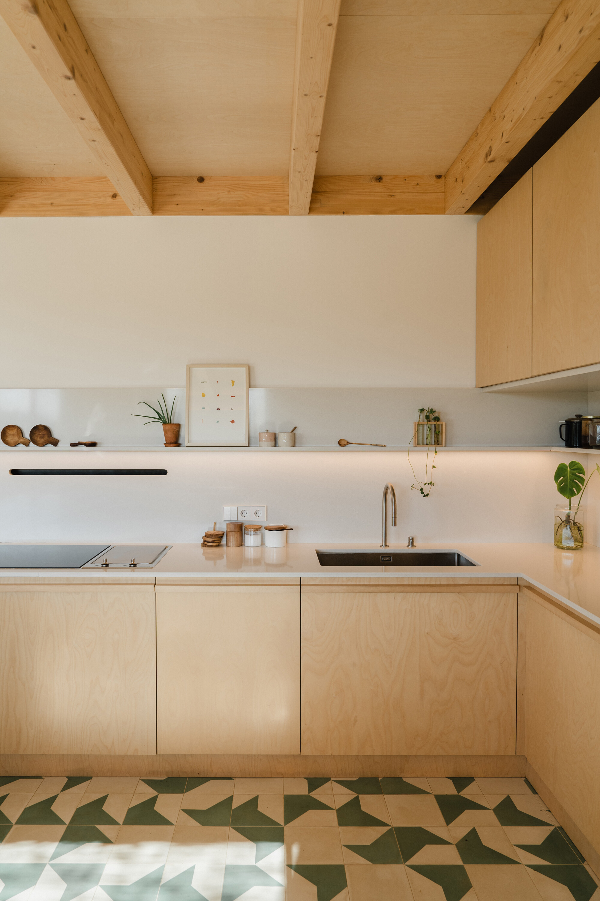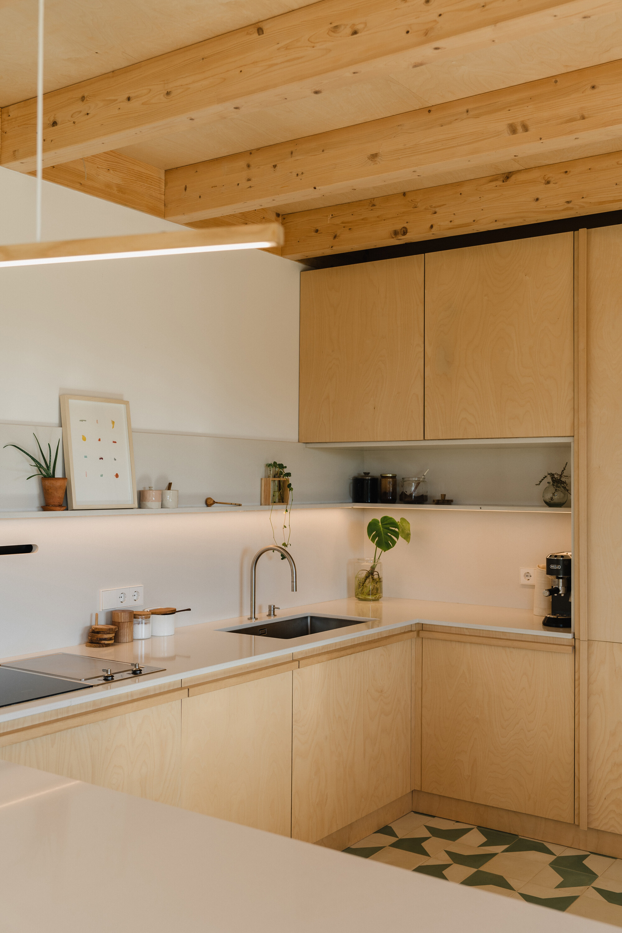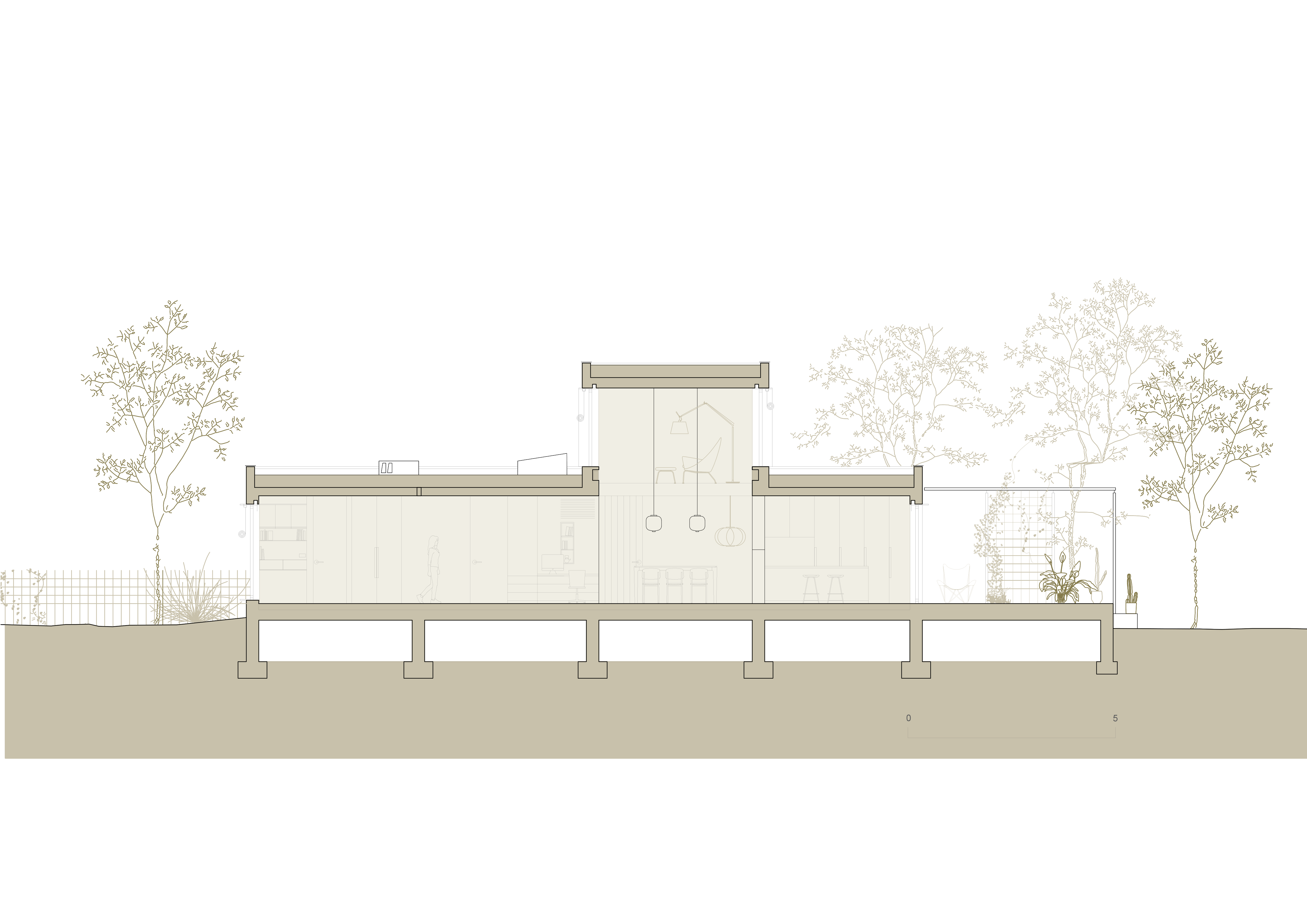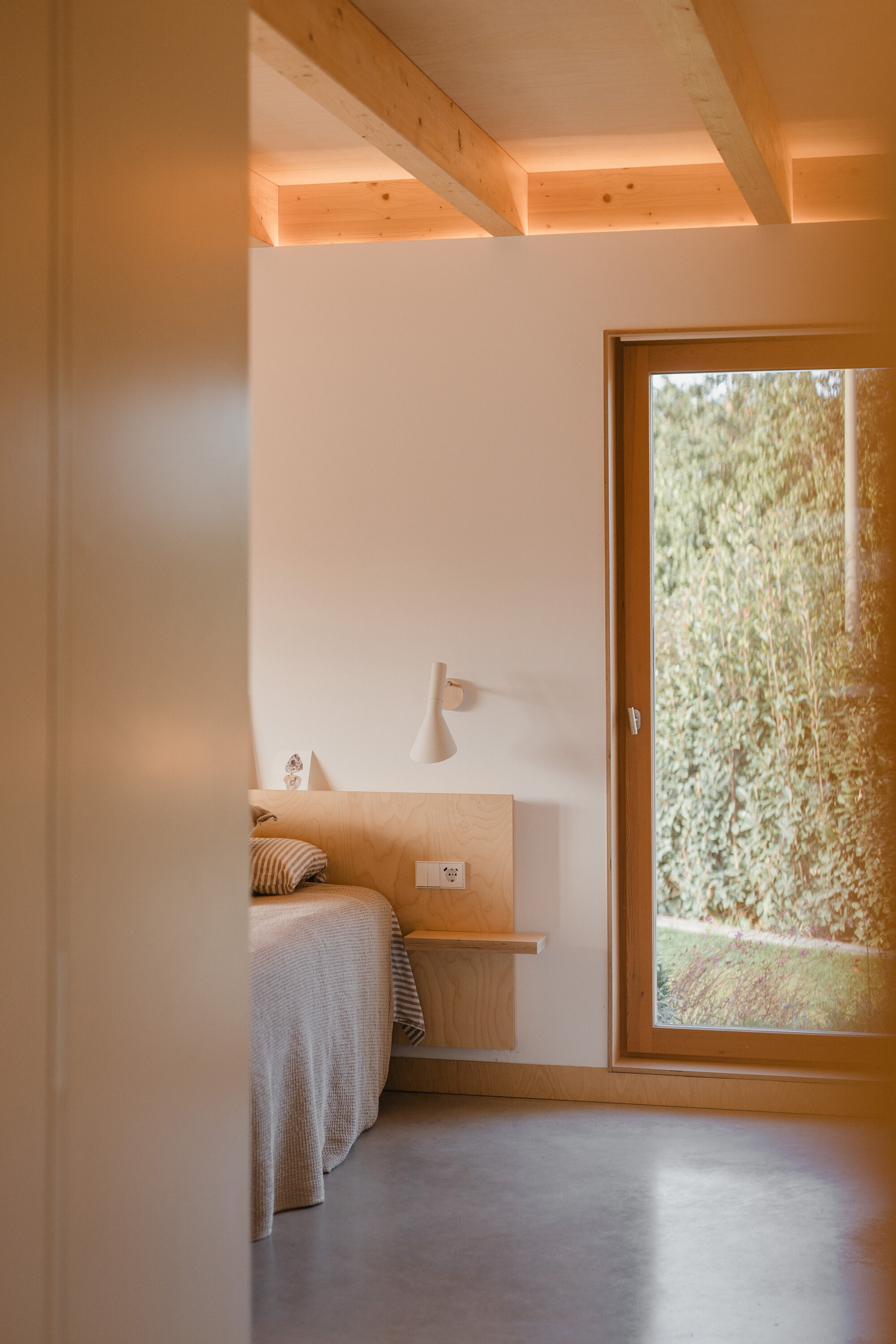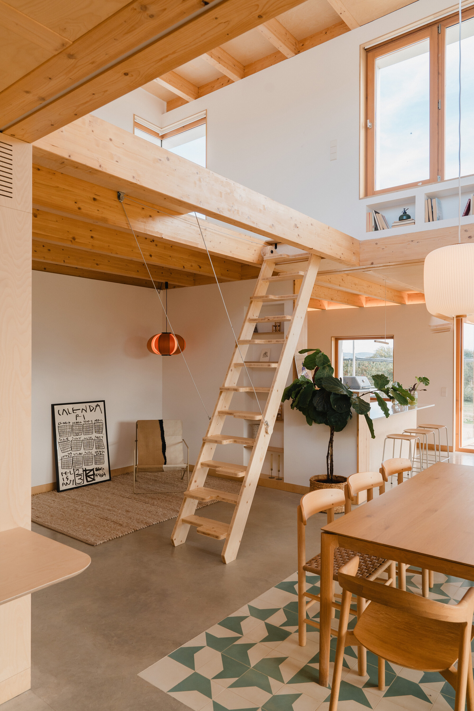 주택은 가벼운 목구조 프레임을 중심으로 구성되었다. 이 구조체는 작업장에서 프리패브 방식으로 제작되어 시공 시간과 노동을 효율적으로 줄였다. 이 틀을 바탕으로 집은 서로 다른 형태와 높이를 가진 여러 개의 모듈로 확장되며, 가족의 성장에 따라 증축되던 전통적인 카탈루냐 농가의 부속 건물에서 영감을 받은 공간 구성을 보여준다.